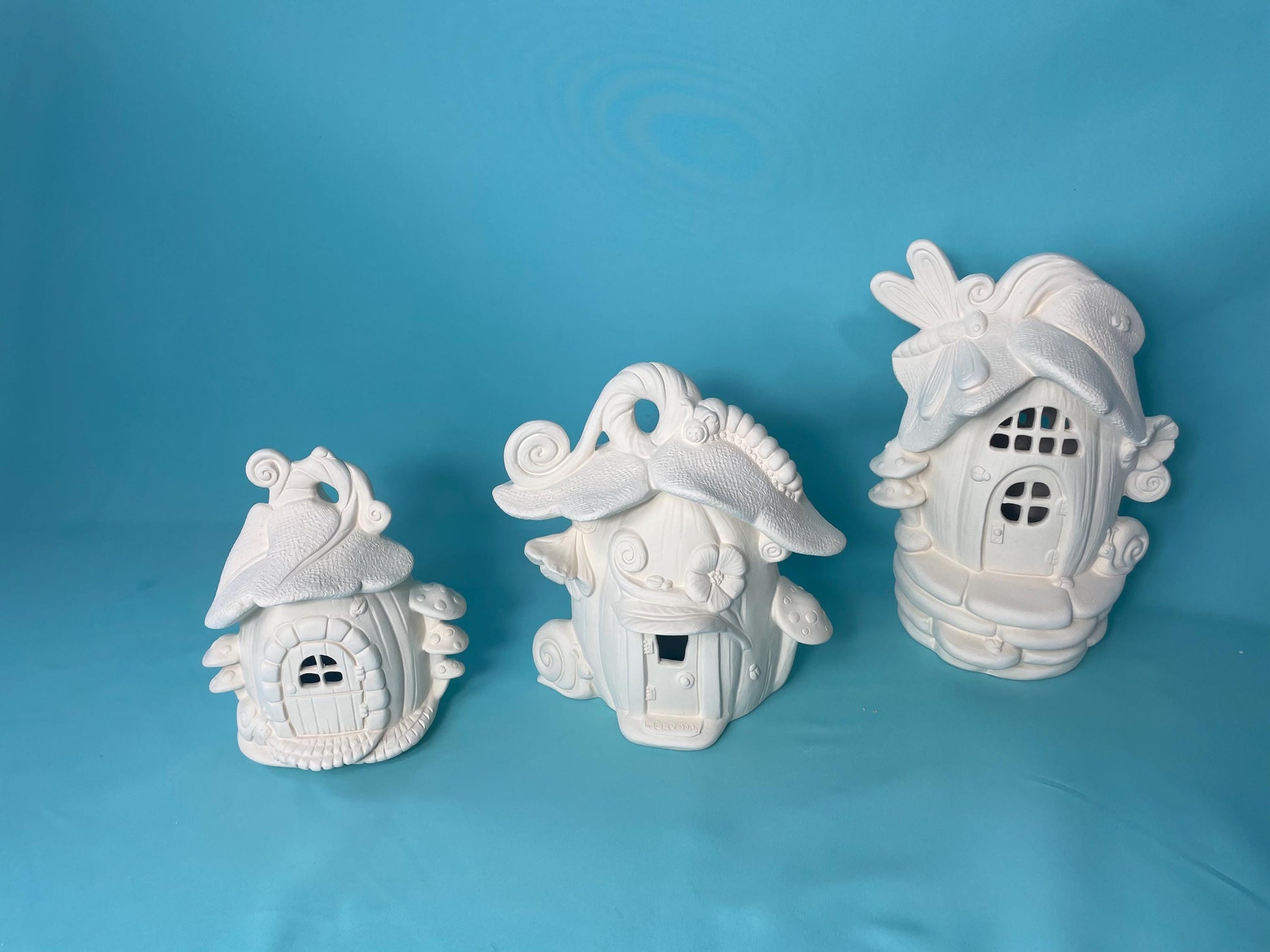 5 Ceramic Bisque Fairy Houses | Do It Yourself Ceramics - Painting Project - Unfinished Ceramics | Paint Party | Bisque Finish Yourself