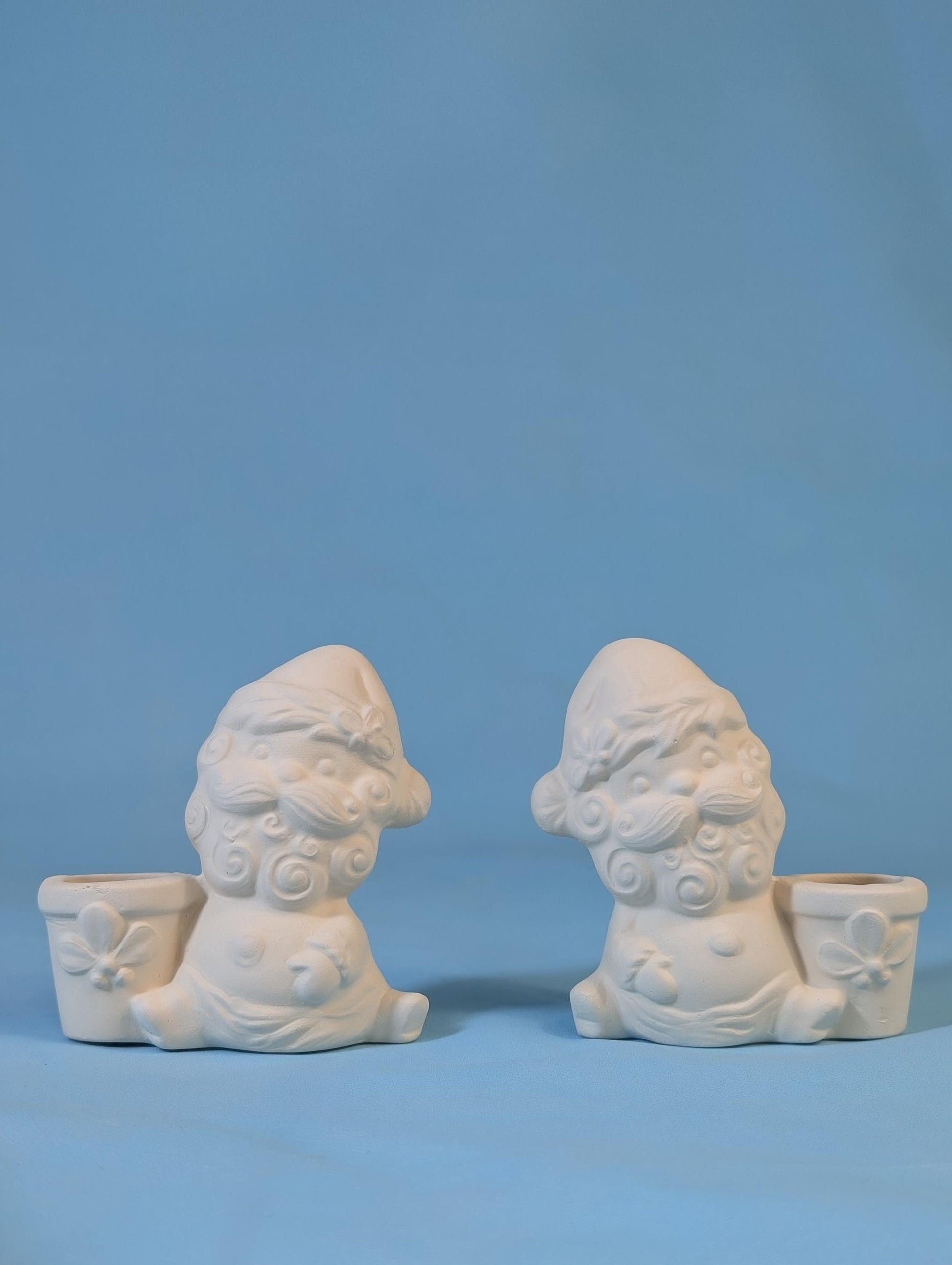 A Grand Classic: Vintage Ceramic Bisque Santa Claus Candleholders (Pair) 🕯️✨