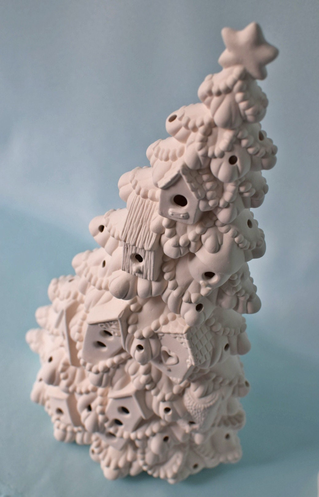 Birdhouse Ceramic Christmas Tree | Bisque | Ready To Paint | DIY