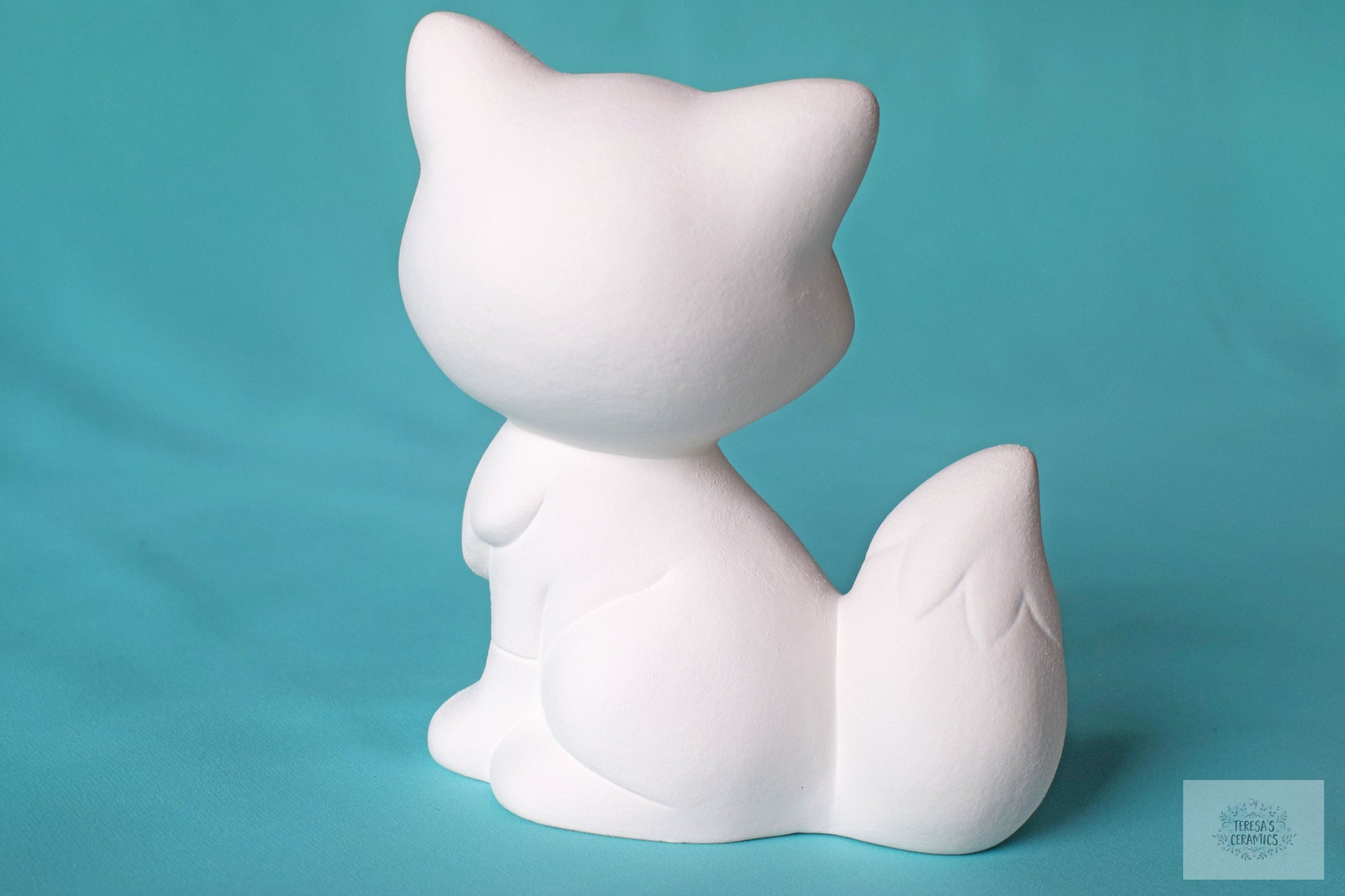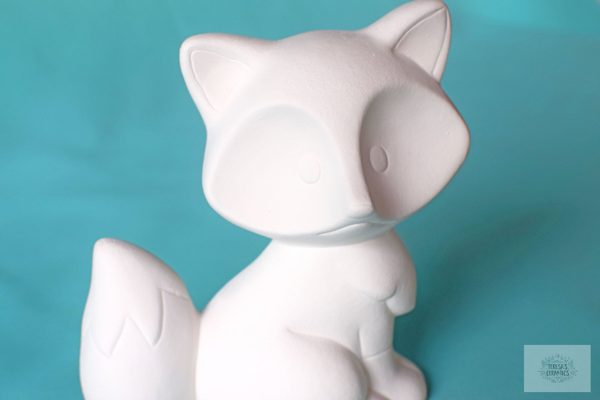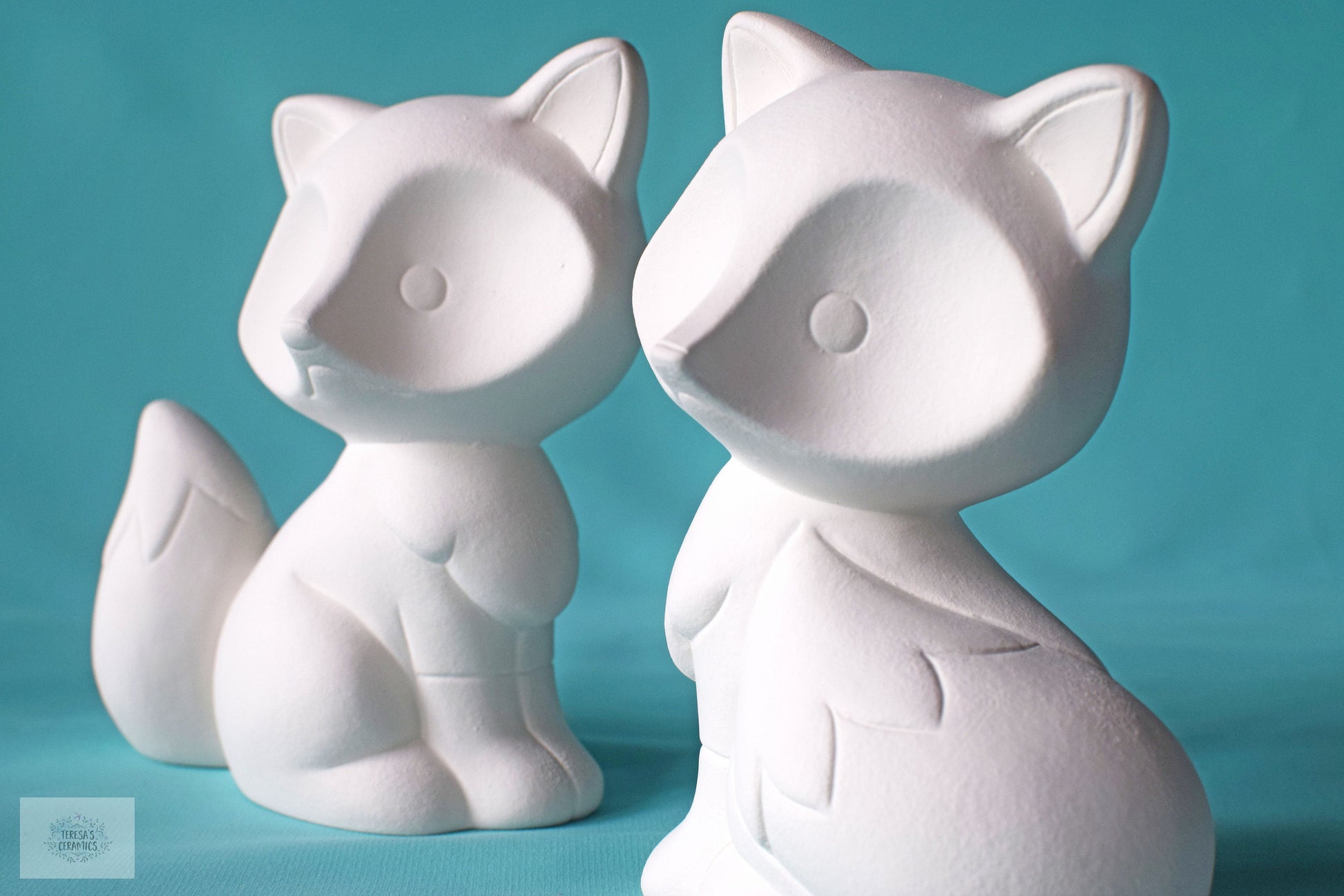 This fox is handmade in my home studio using premium ceramic slip and a ceramic mold. Once the ceramic is ready to be taken out of the mold, it is removed and cleaned as greenware. The greenware is then fired in my kiln and comes out as bisque.