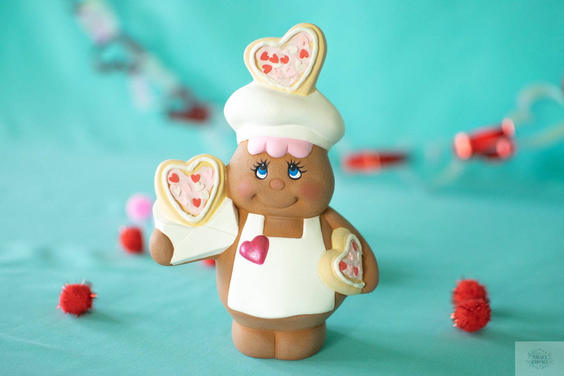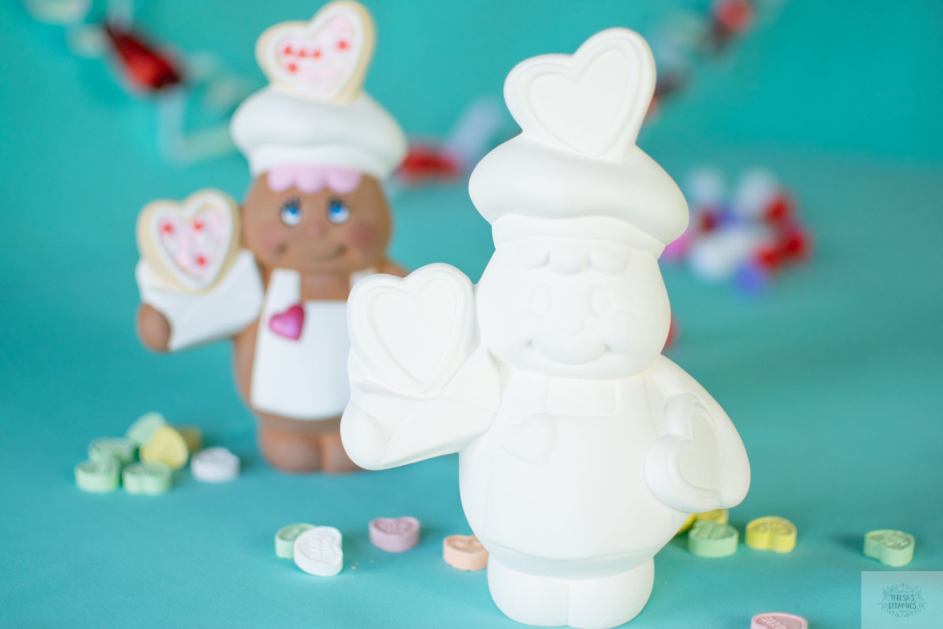 This cute bisque gingerbread baker is perfect to paint and pair with other valentine decor!