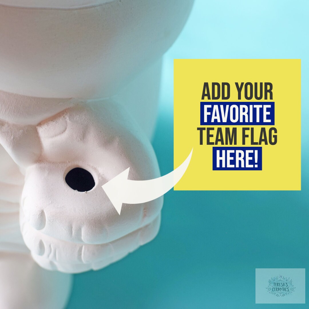 This Bisque Football Gnome is handmade in my home studio. Football Gnome is made with premium ceramic slip that is poured into a ceramic mold, dried, cleaned and fired in the kiln.