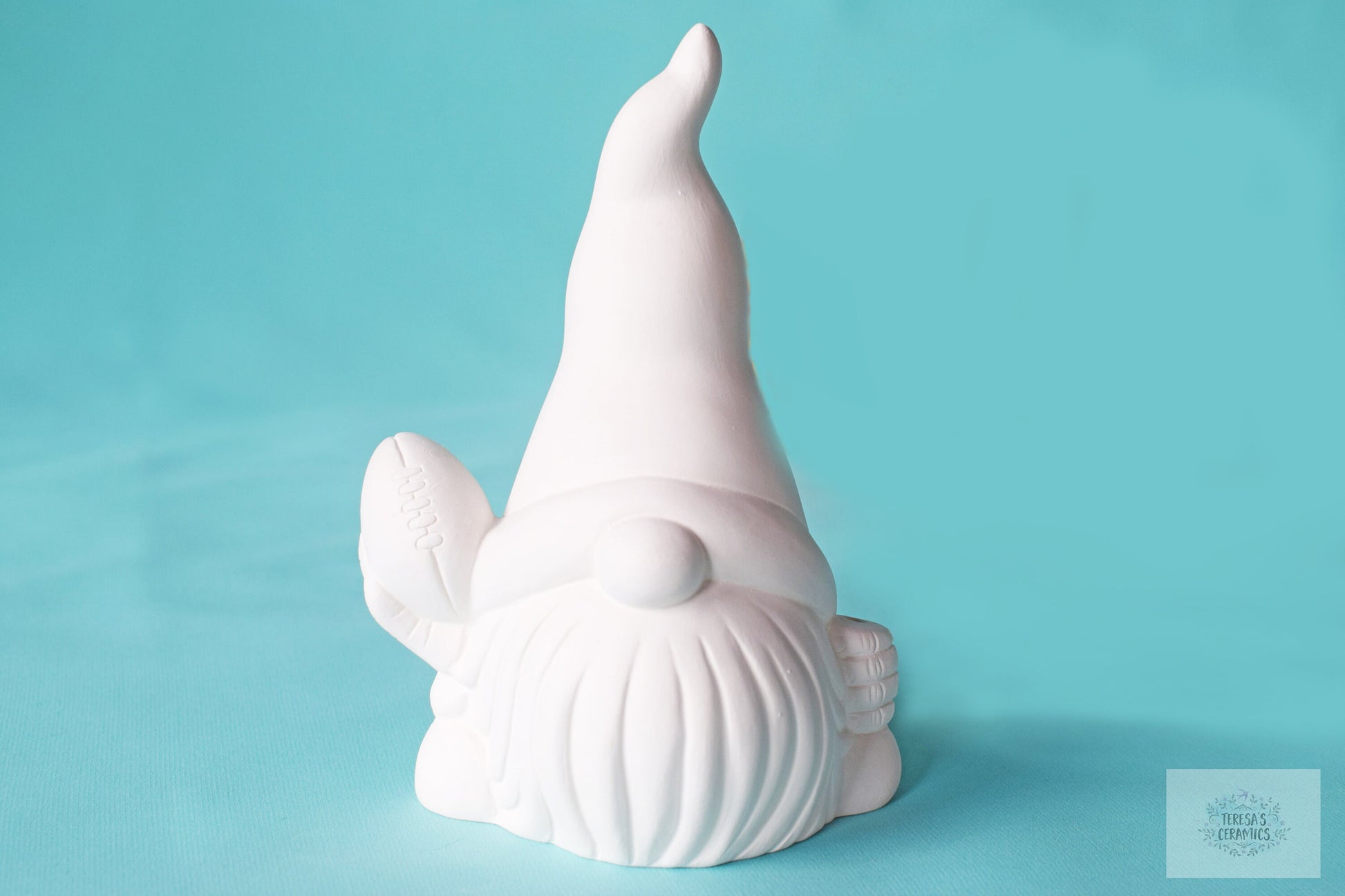This Bisque Football Gnome is handmade in my home studio. Football Gnome is made with premium ceramic slip that is poured into a ceramic mold, dried, cleaned and fired in the kiln.