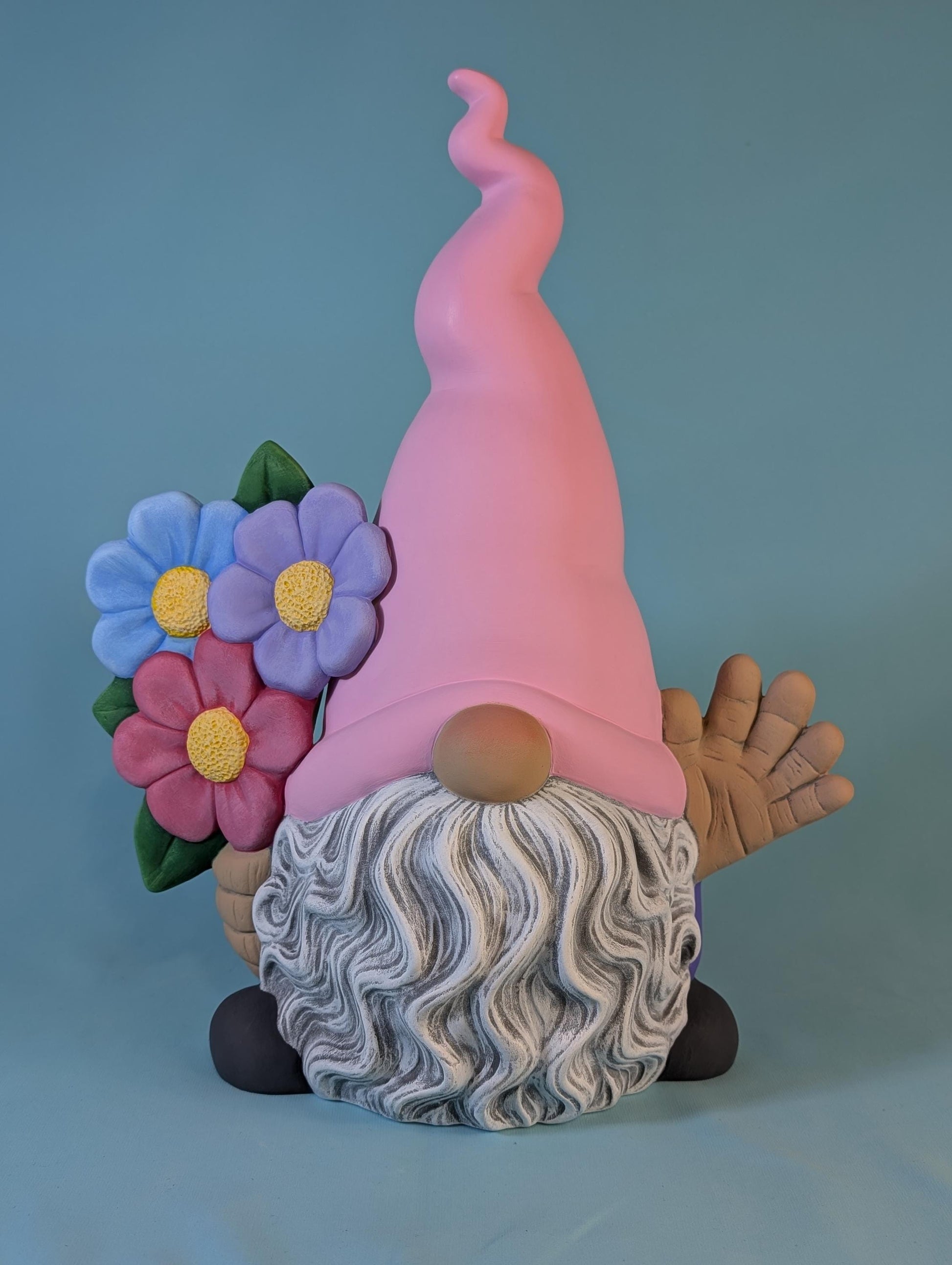 Bisque Large Garden Gnome Yard Art - Unfinished - READY to Paint Gnome with flowers