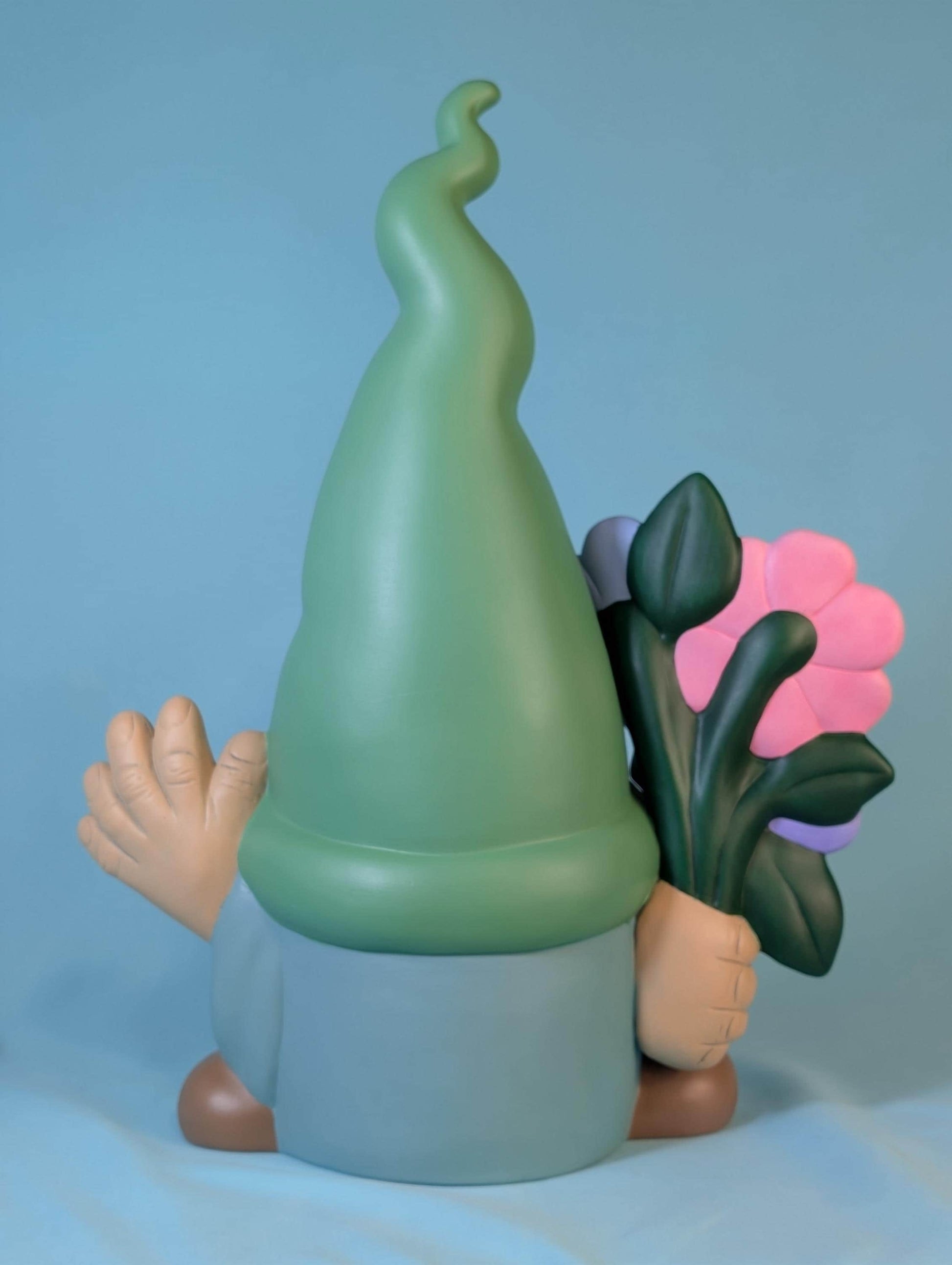 *This Garden Gnome holds flowers in his hand and is waving hello 👋🏻 with the other!