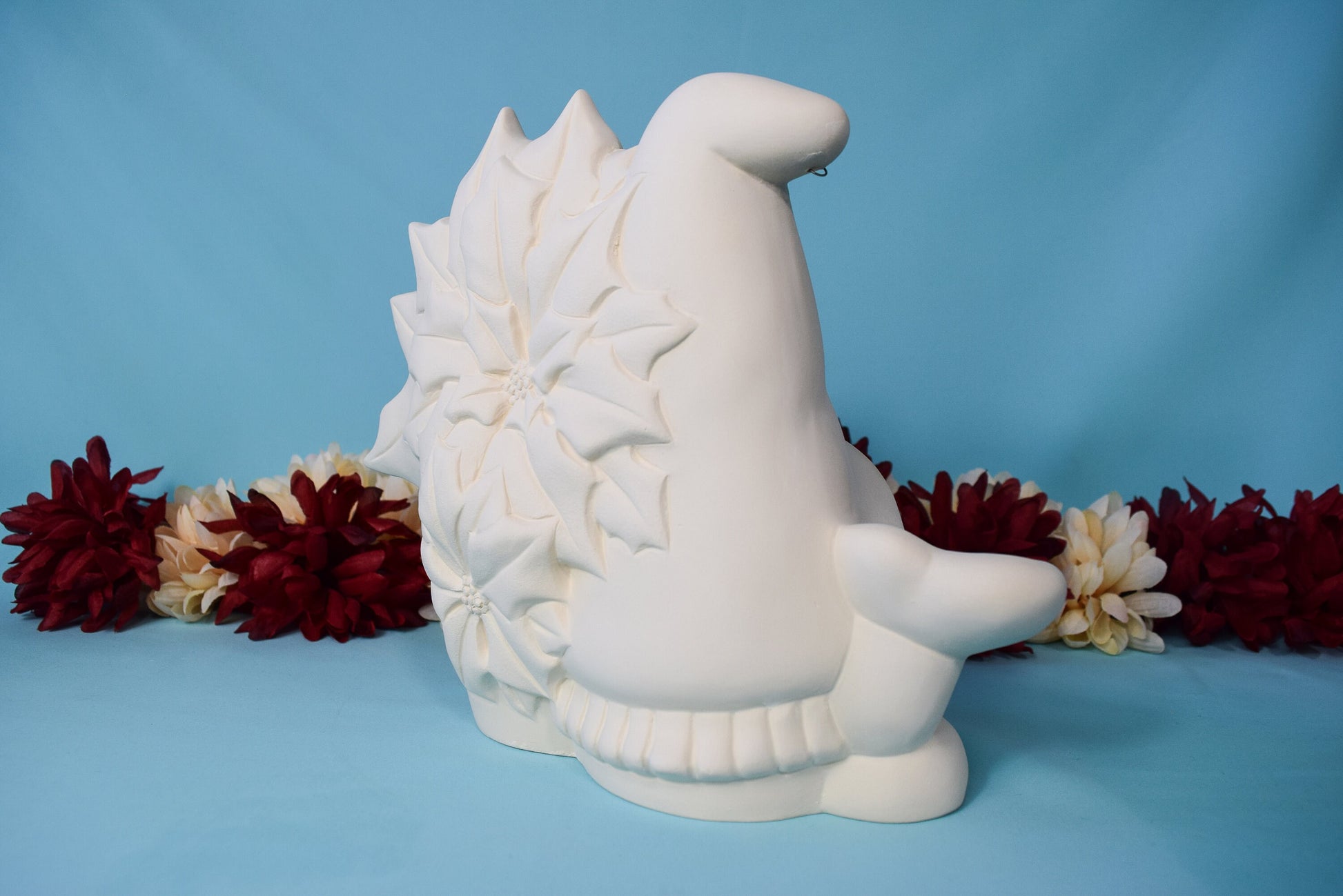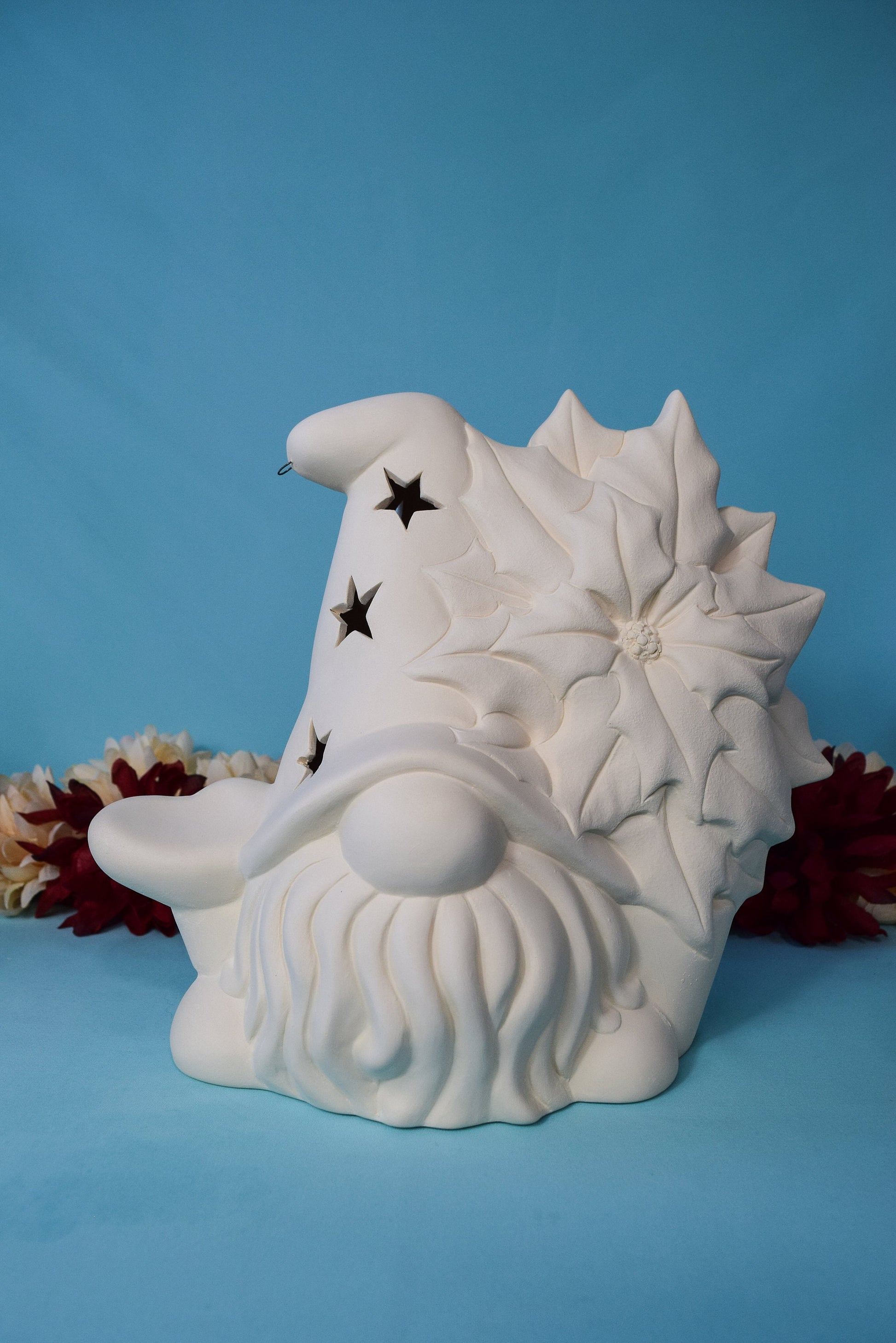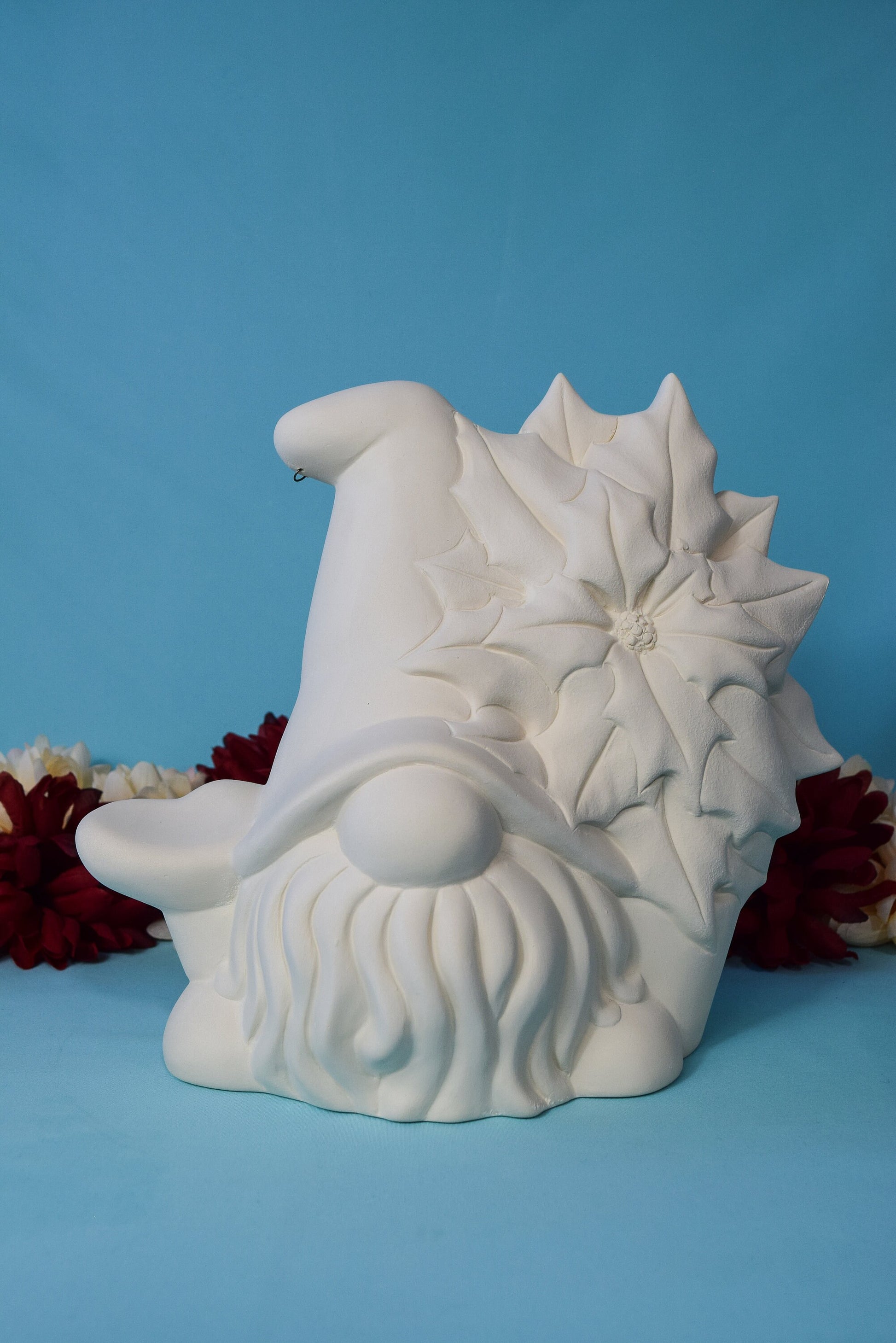 Bisque Poinsettia Gnome 8in | Vintage Ceramic Gnome | Vintage Christmas Gnome | Ready To Paint | DIY