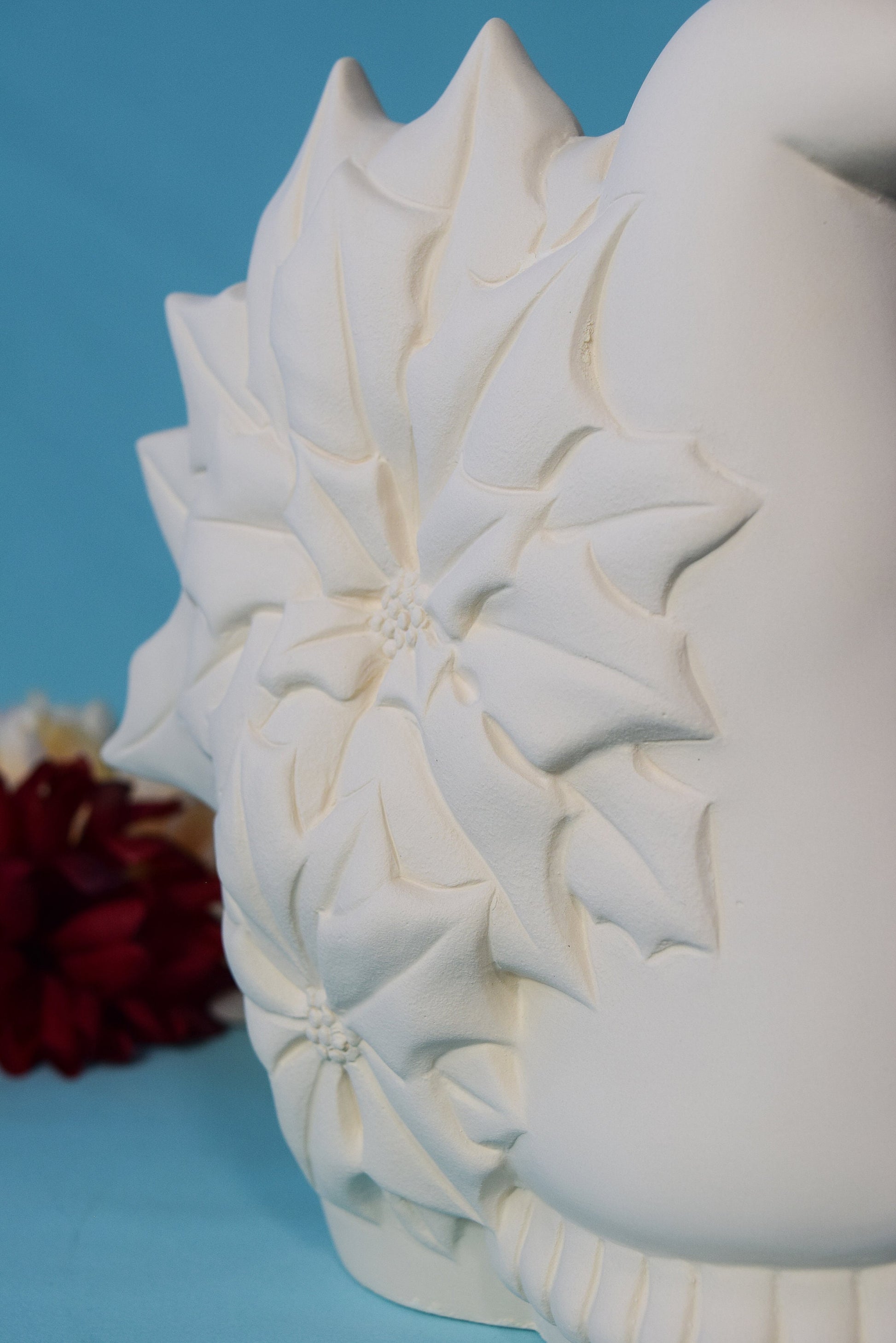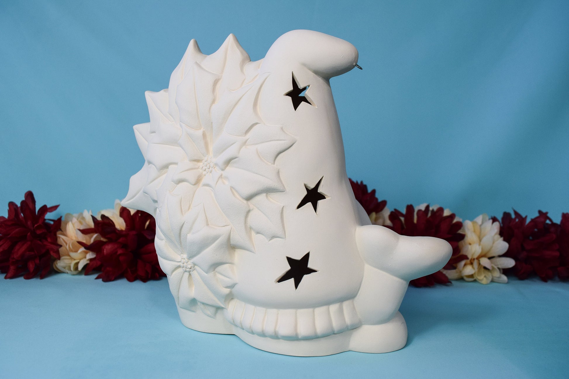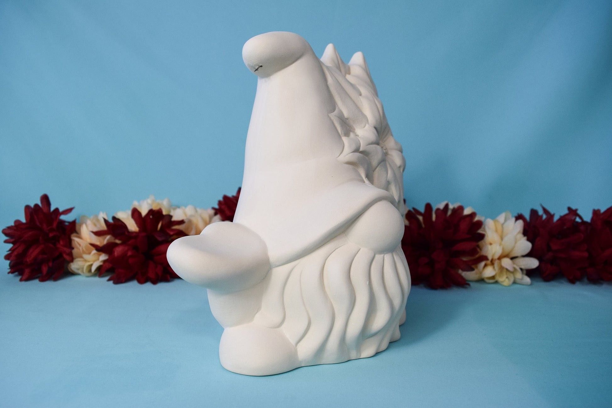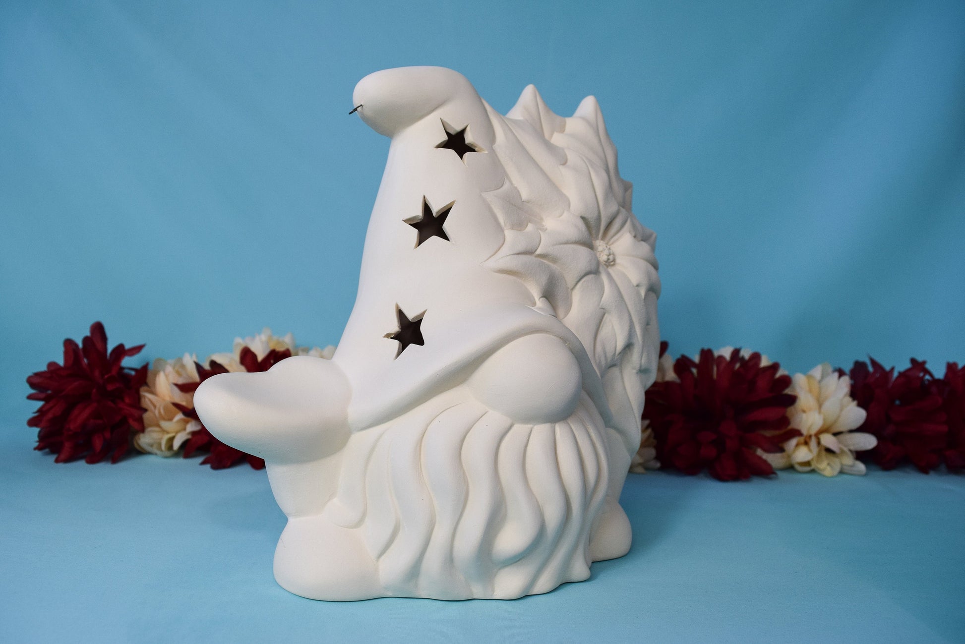 Bisque Poinsettia Gnome 8in | Vintage Ceramic Gnome | Vintage Christmas Gnome | Ready To Paint | DIY