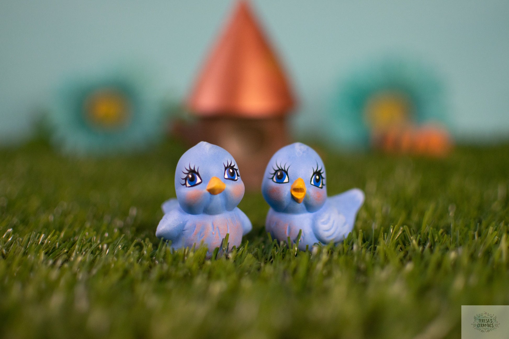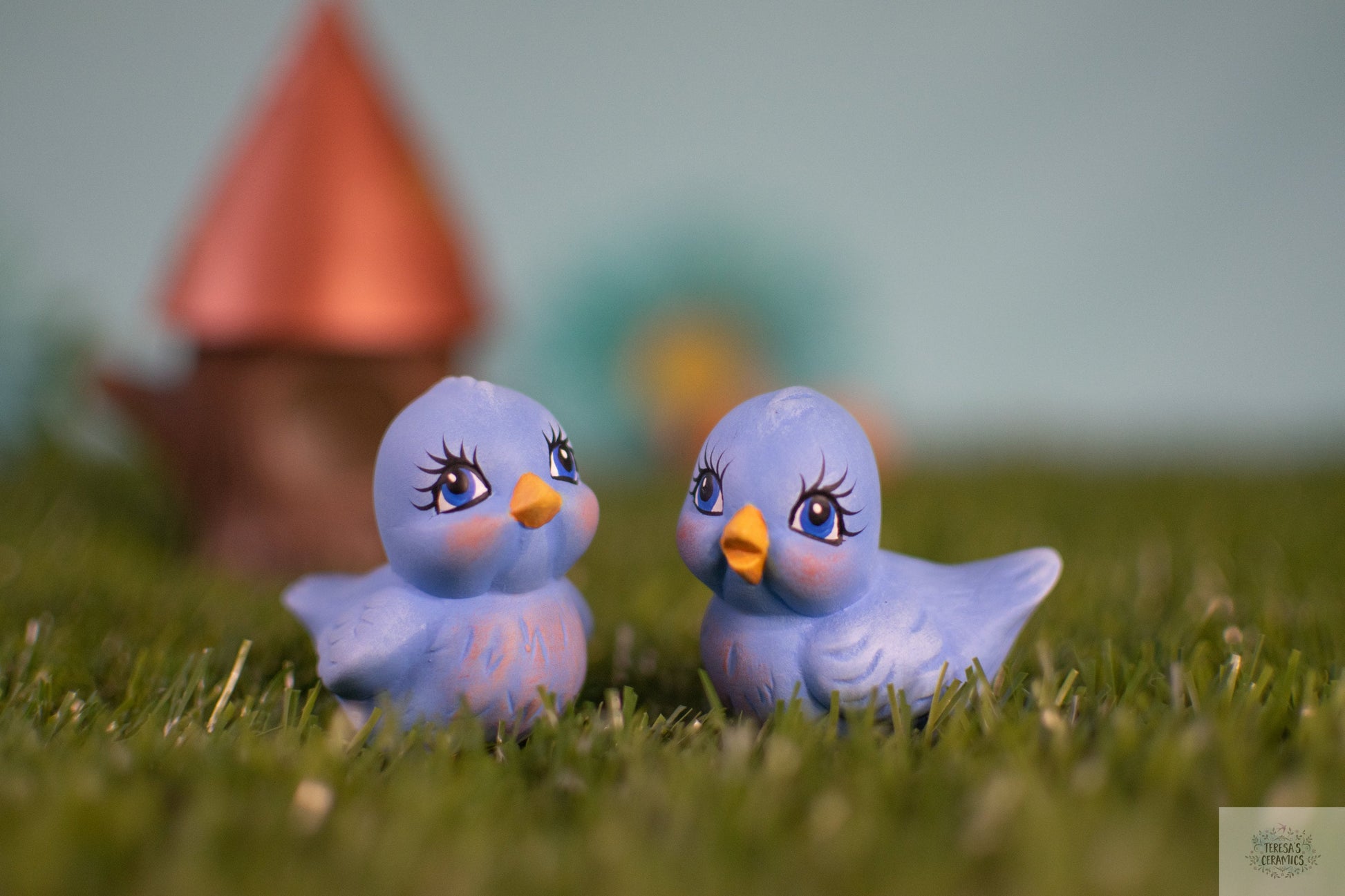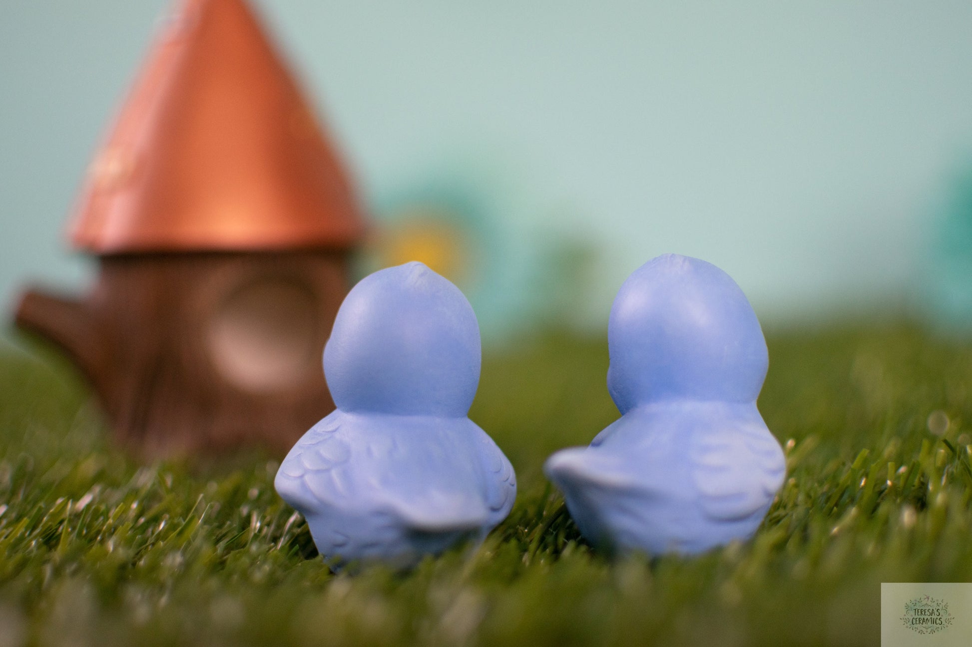 Adorable Blue Bird Couple: Woodland Nursery Decor, Baby Shower Gift, Miniature Cake Topper, Handmade Art