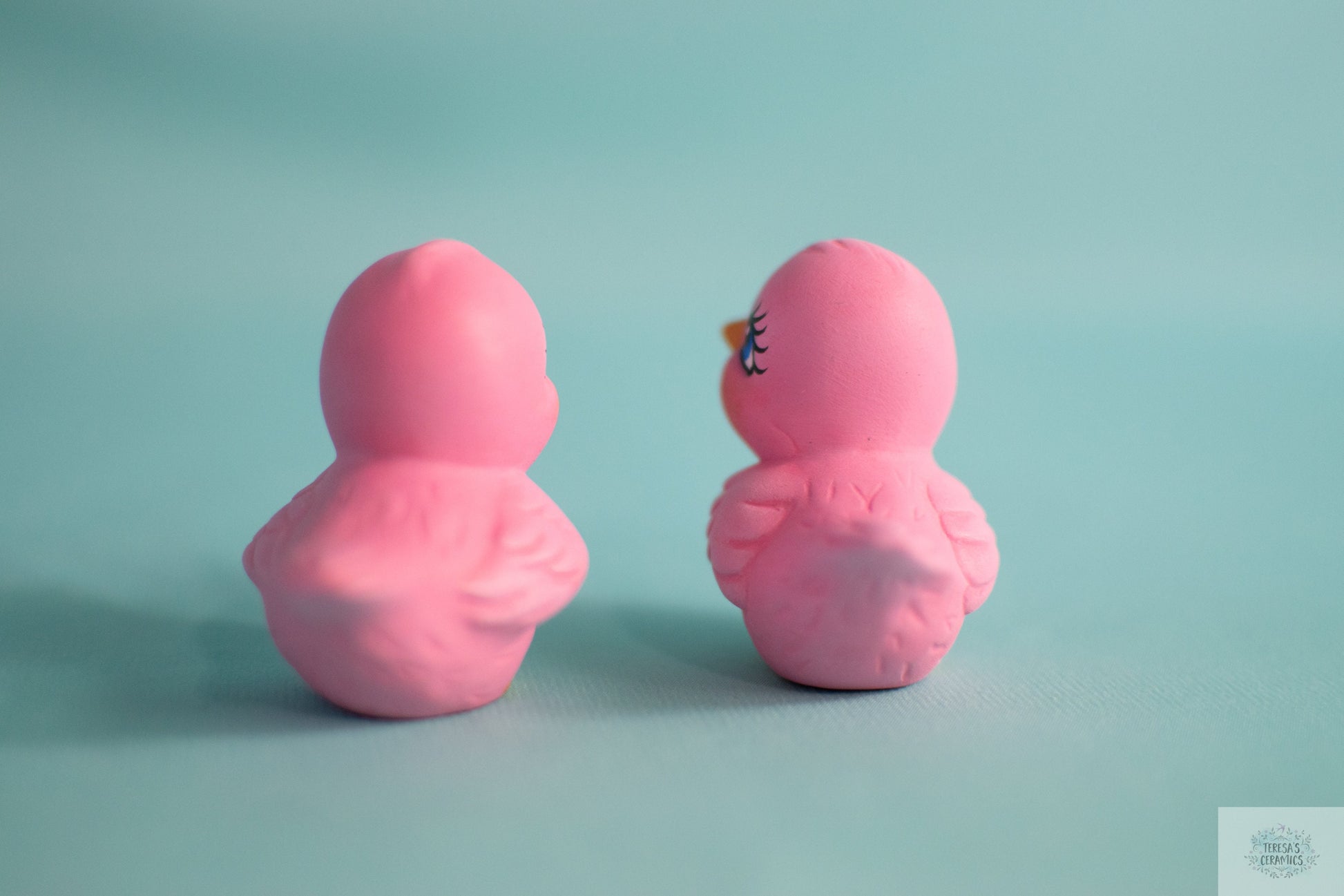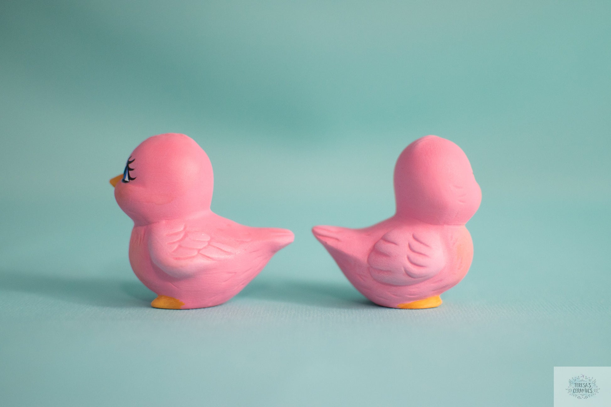 They remind me of cartoon birds (something you'd see in Cinderella) They are just adorable. They measure about 1 1/2" tall and about 2" long, just perfect for that special spot on your shelf.