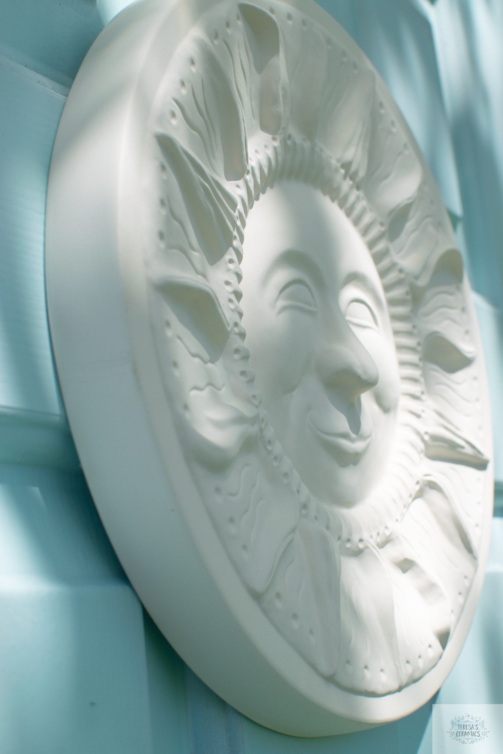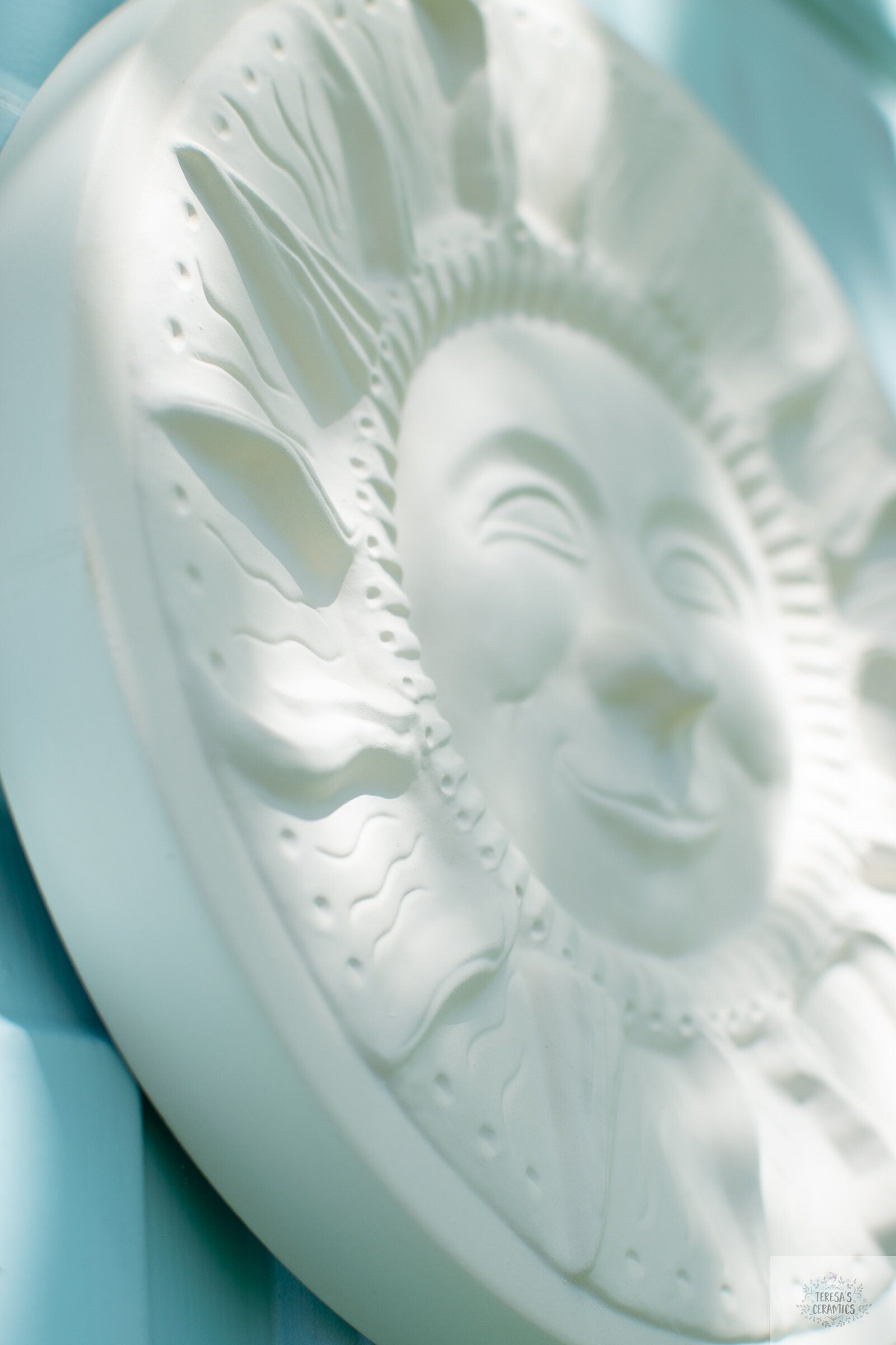 Each piece is handmade in my studio. The sun is slipcast using a vintage mold and premium ceramic slip. Once this is poured, it is removed from the mold, cleaned and fired in the kiln. Once cooled, the piece is removed from the kiln, cleaned once more and shipped off to you!