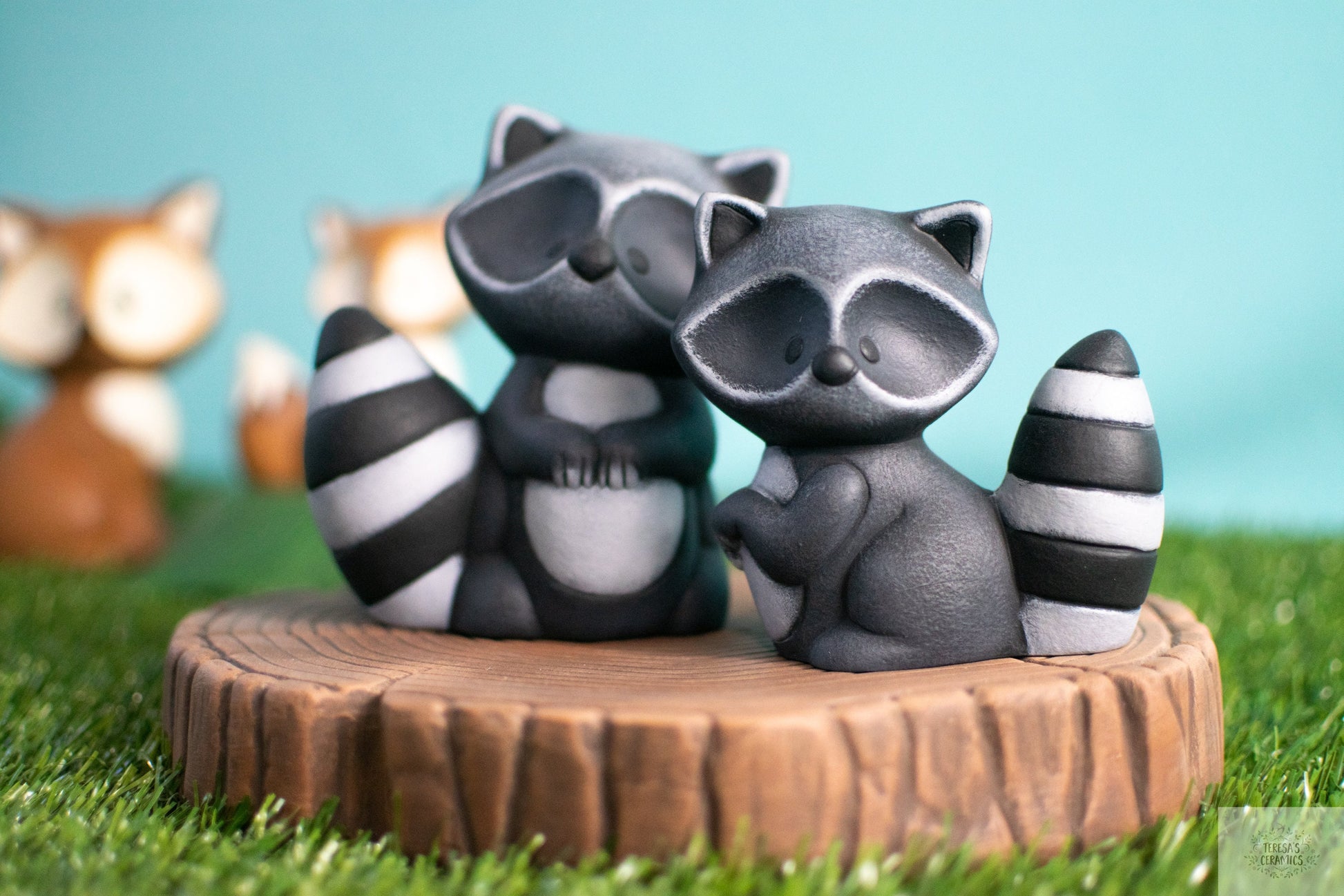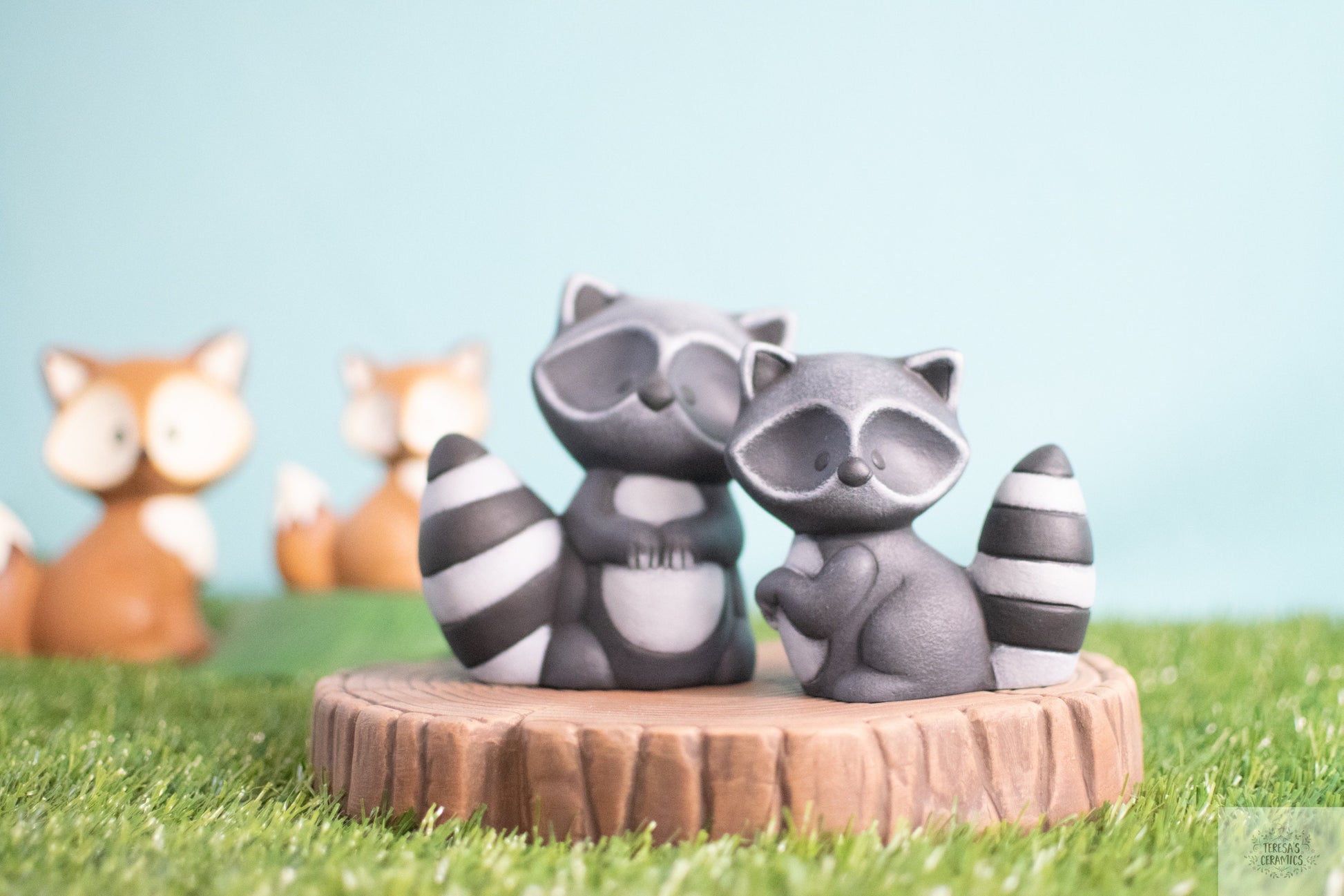 Ceramic Baby Raccoon | Mini Coon Statue | Woodland Animal Baby | Baby Shower Cake Topper | Nursery Decor | Baby Shower Gift