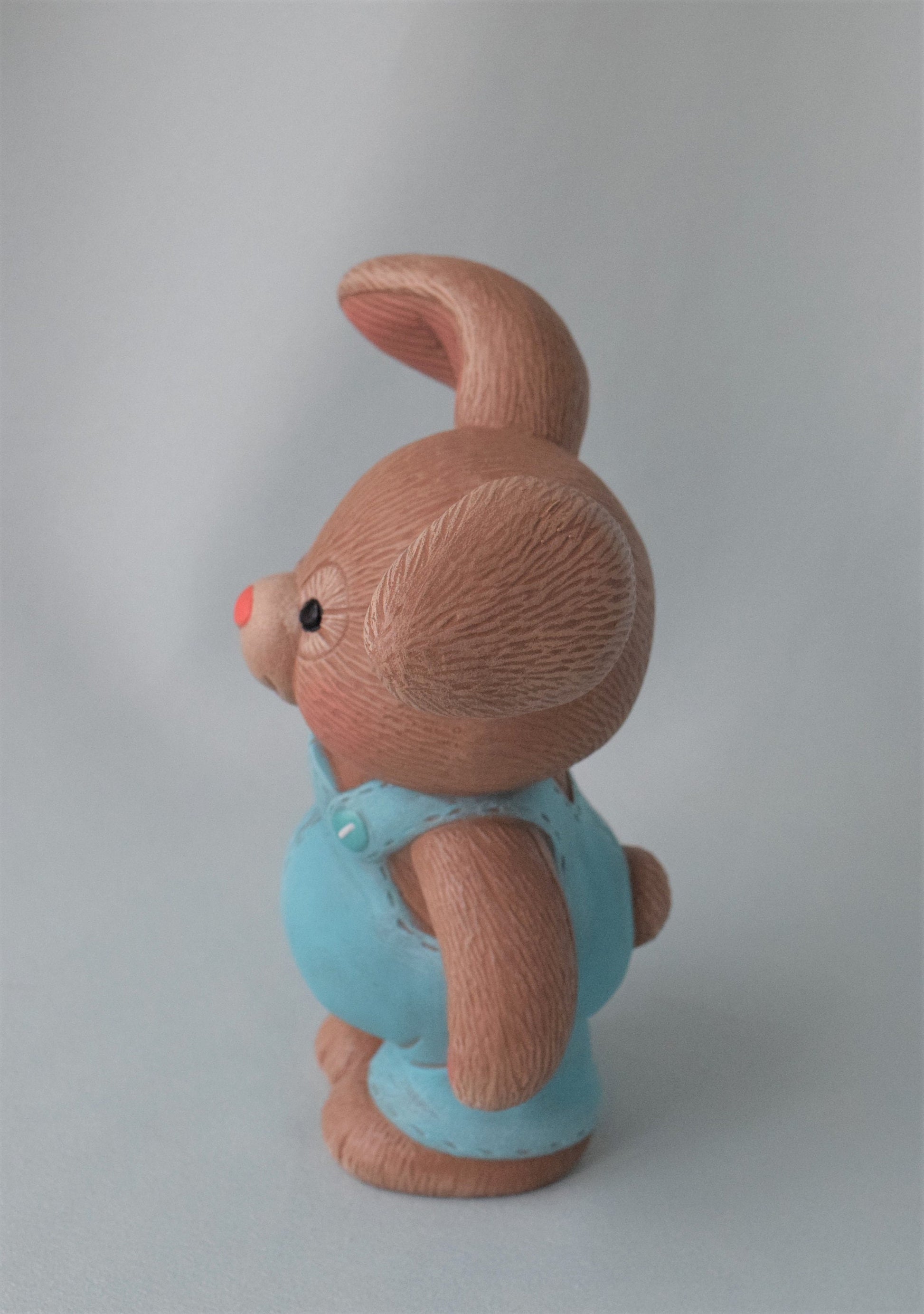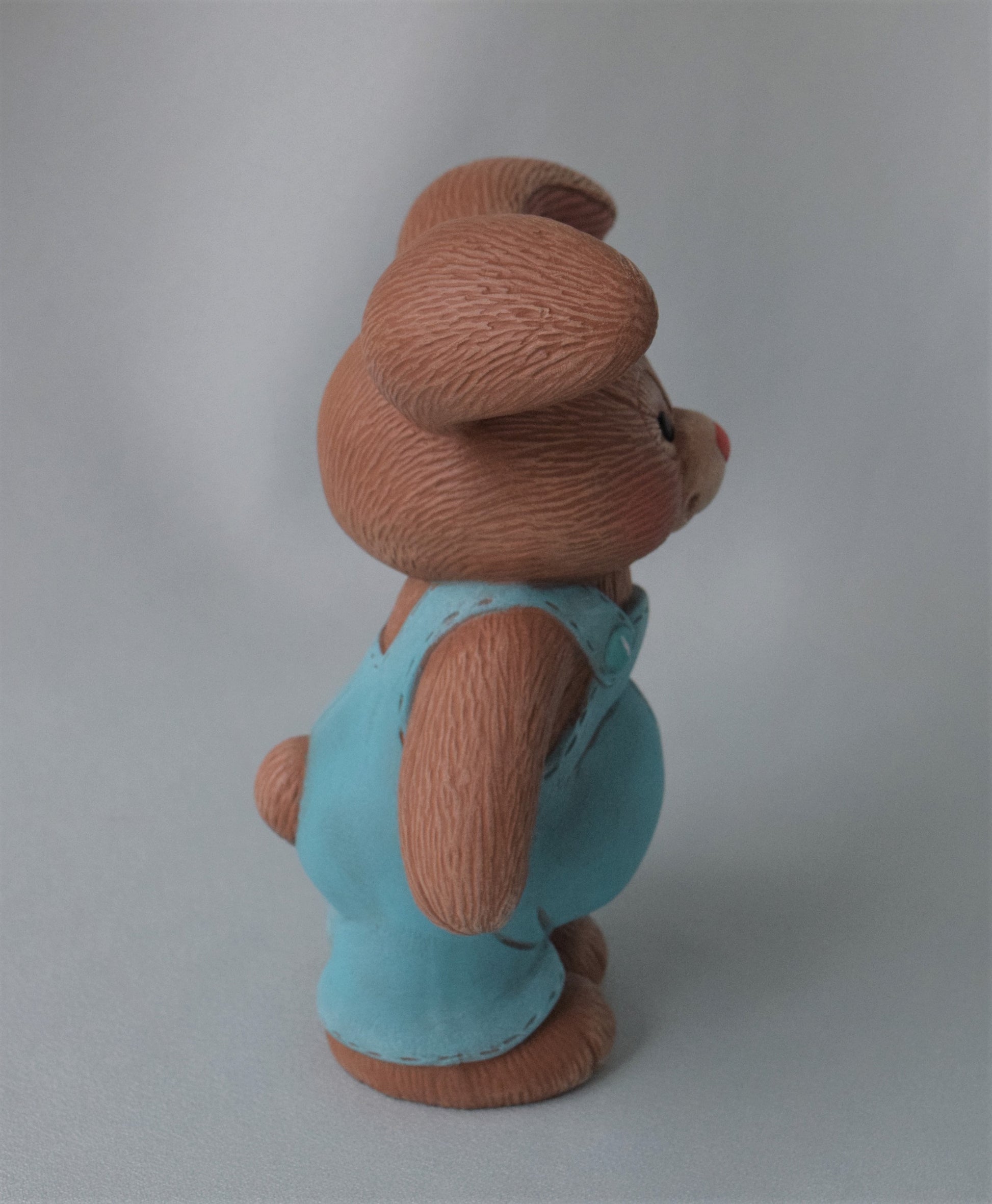 Ceramic Bunny Wearing Blue Bib Overalls - Easter Bunny