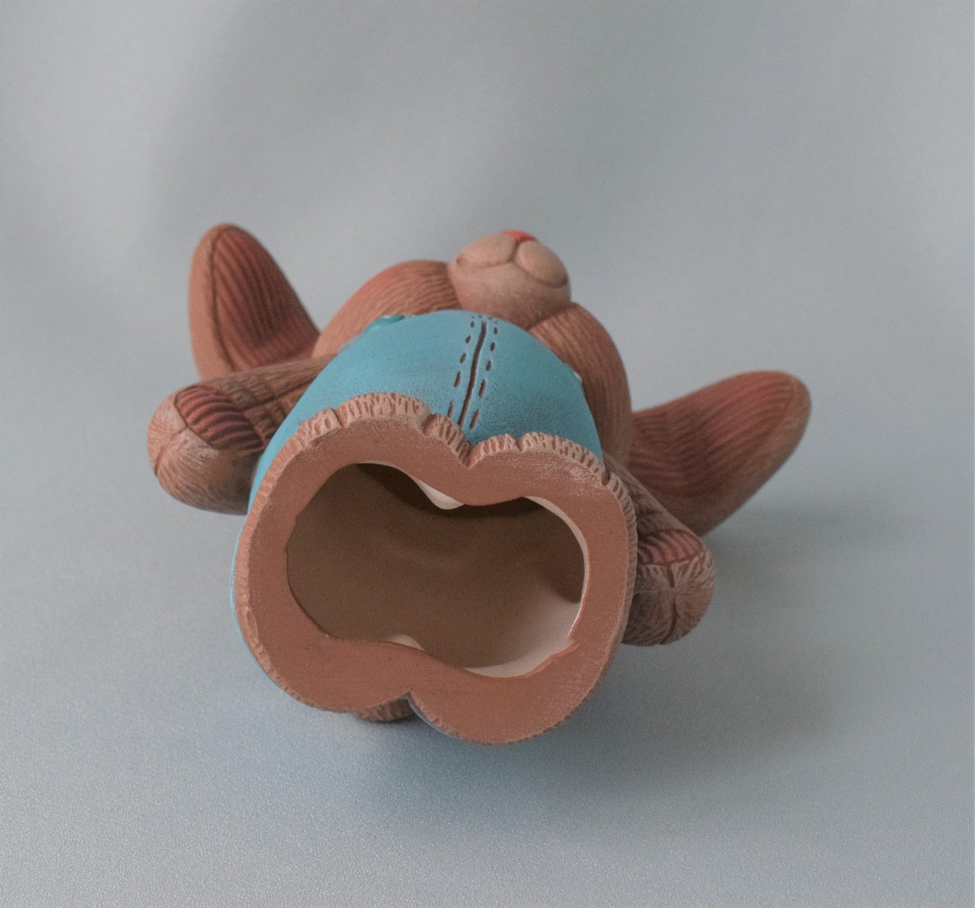 Fresh out of the kiln, I decided to finish this one with bright blue trousers to brighten up your mood.
