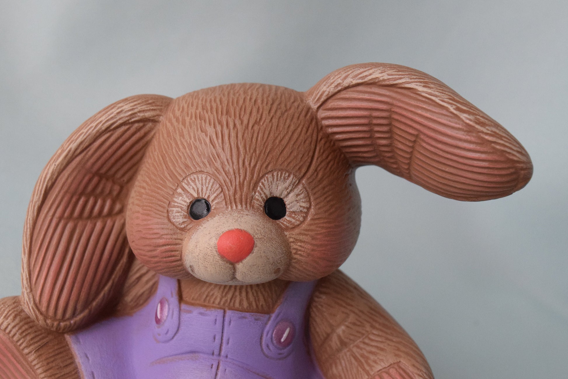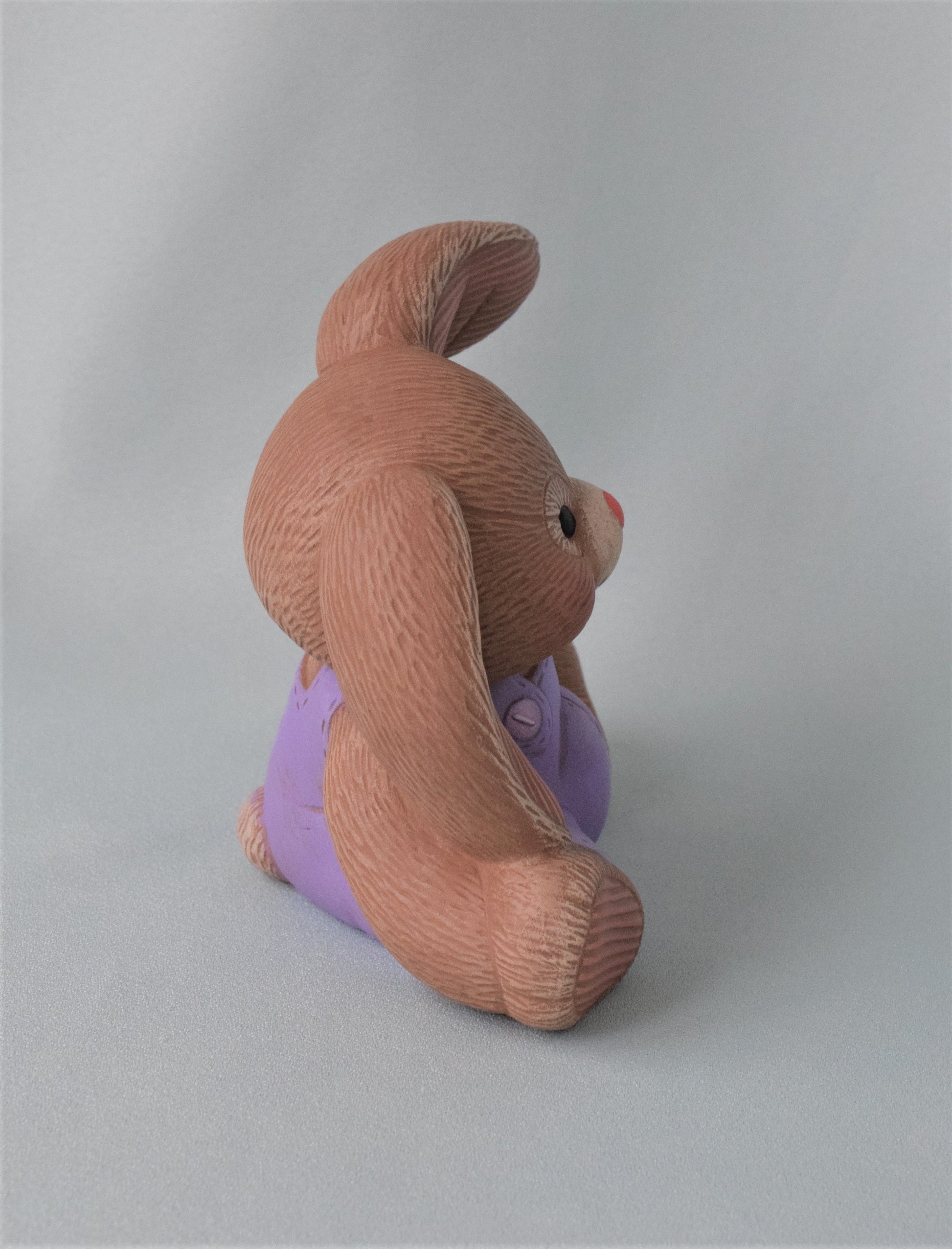 Ceramic Bunny Wearing Purple Bib Overalls - Easter Bunny