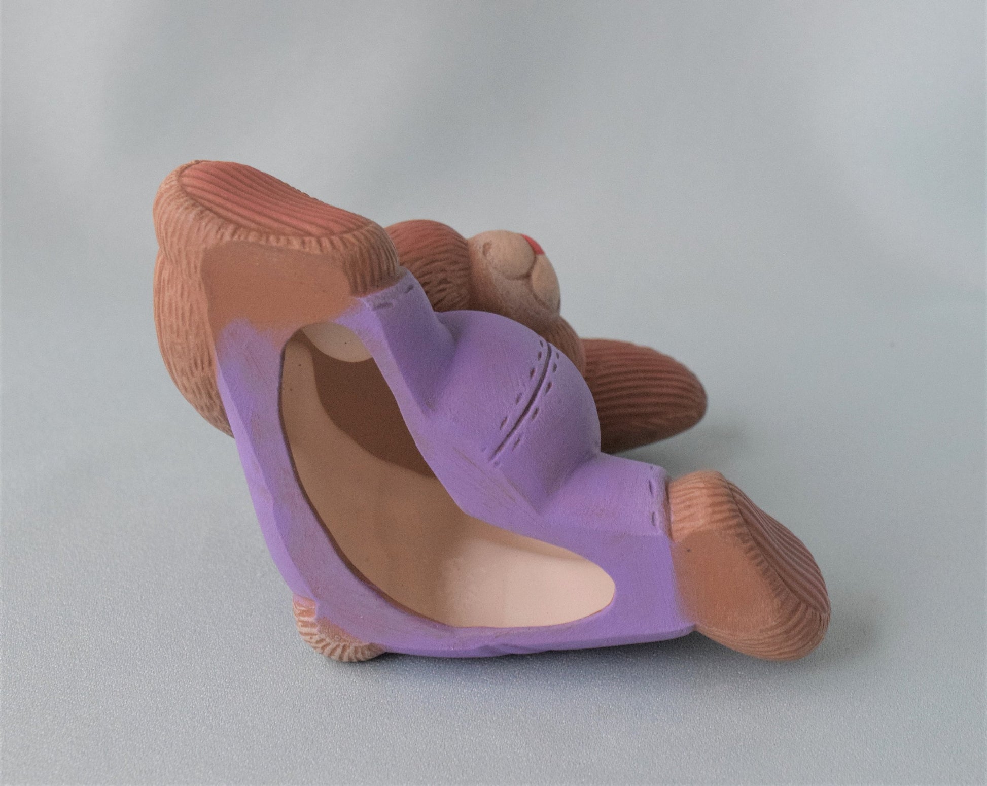 Fresh out of the kiln, I decided to finish this one with a bright purple trousers to brighten up your mood.