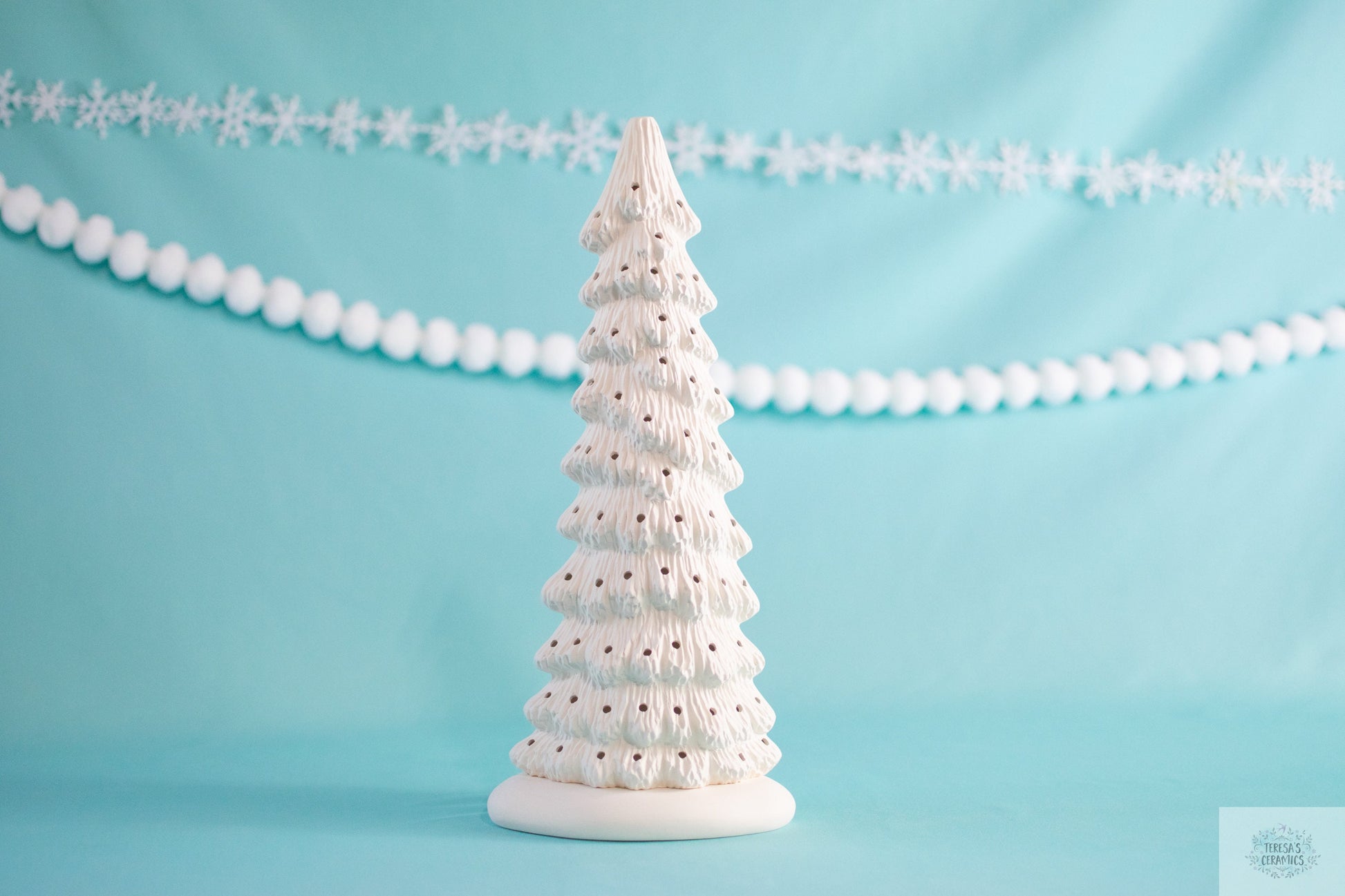 This listing is for a 13" Christmas tree in bisque. The tree has been poured, cleaned and fired to cone 04.