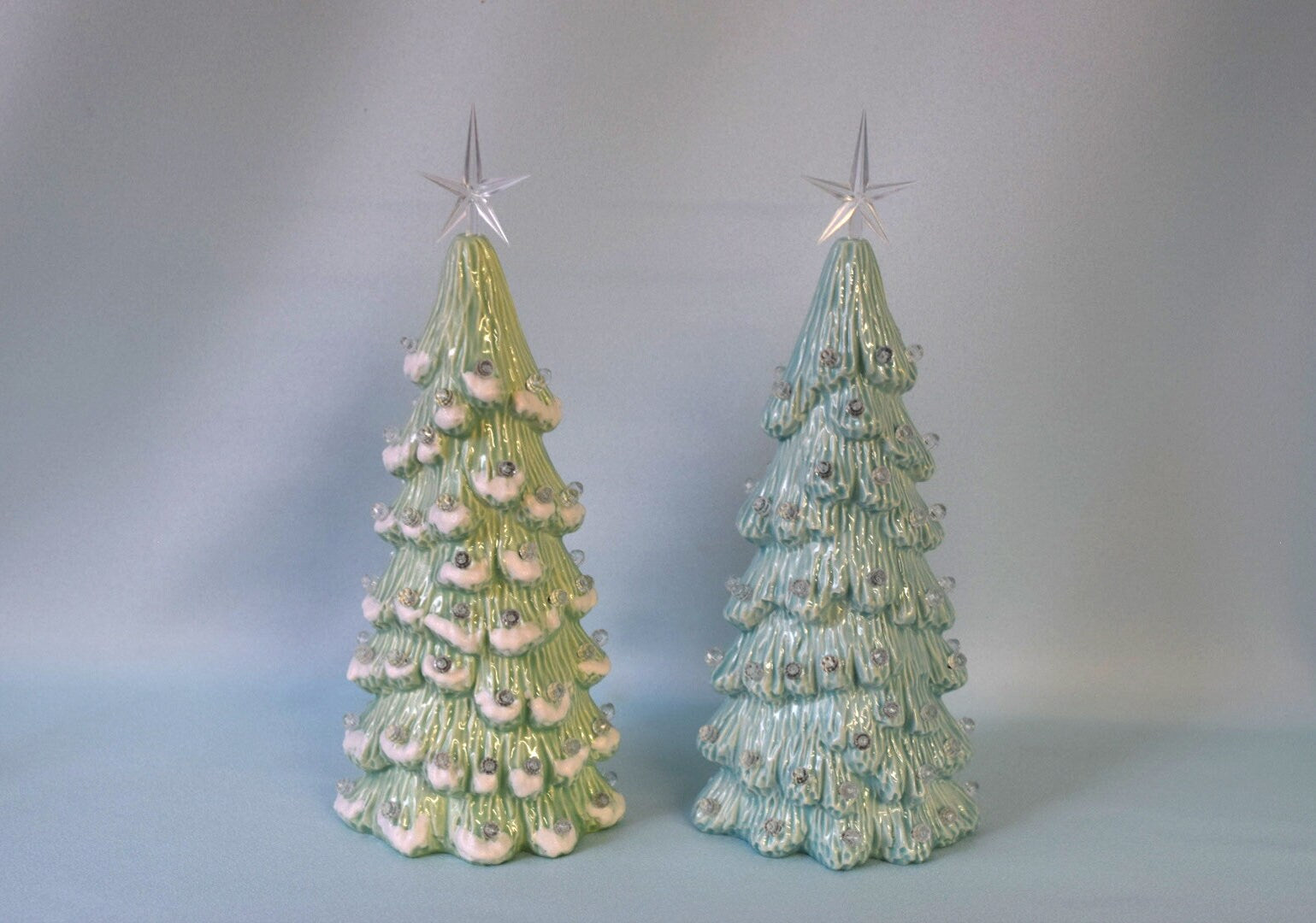 Once molded, the tree is fired in the kiln, glazed and fired once more.