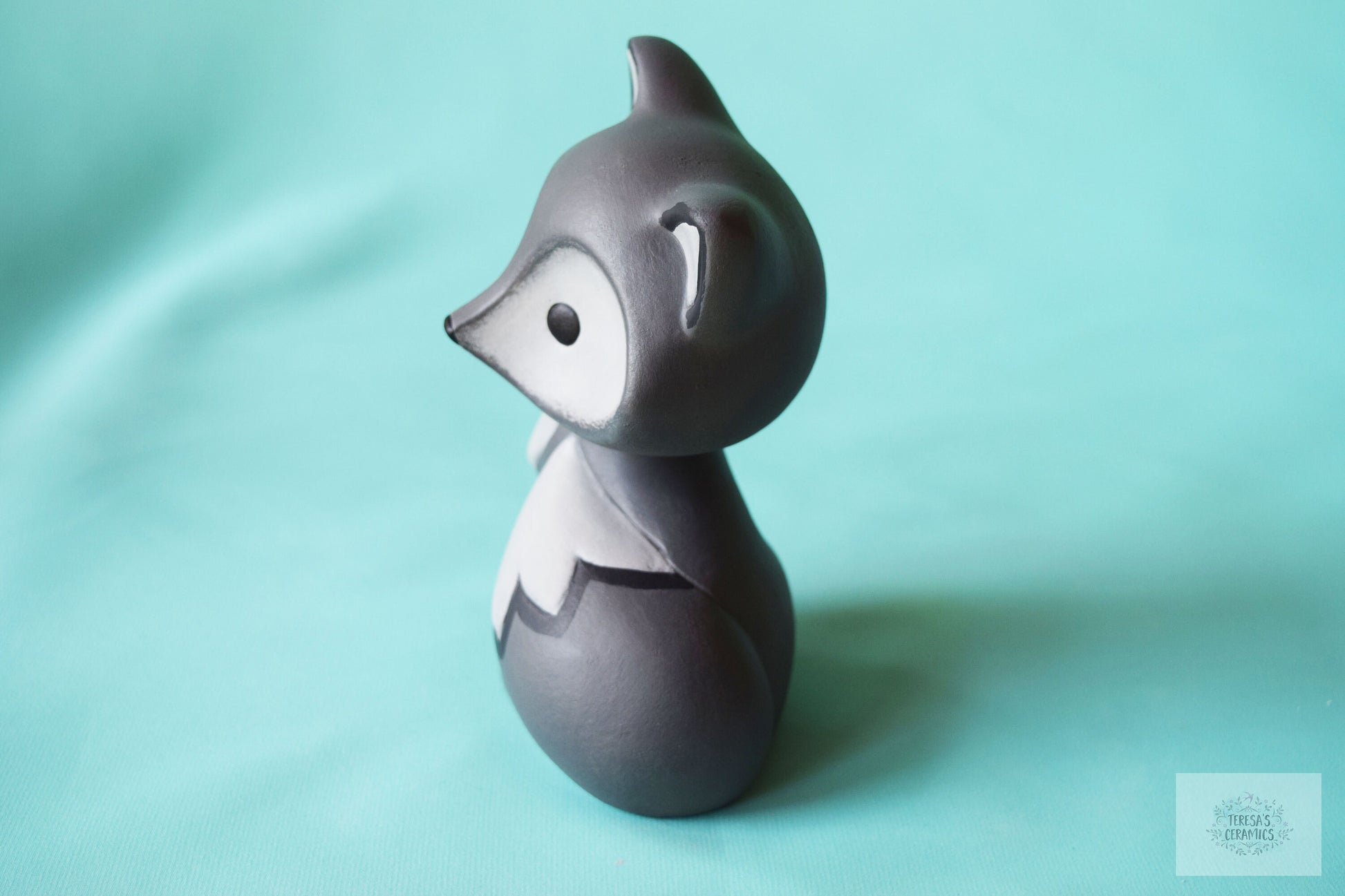 Whimsical Gray Ceramic Fox Figurine: Woodland Nursery Decor, Baby Shower Gift, Yard Art