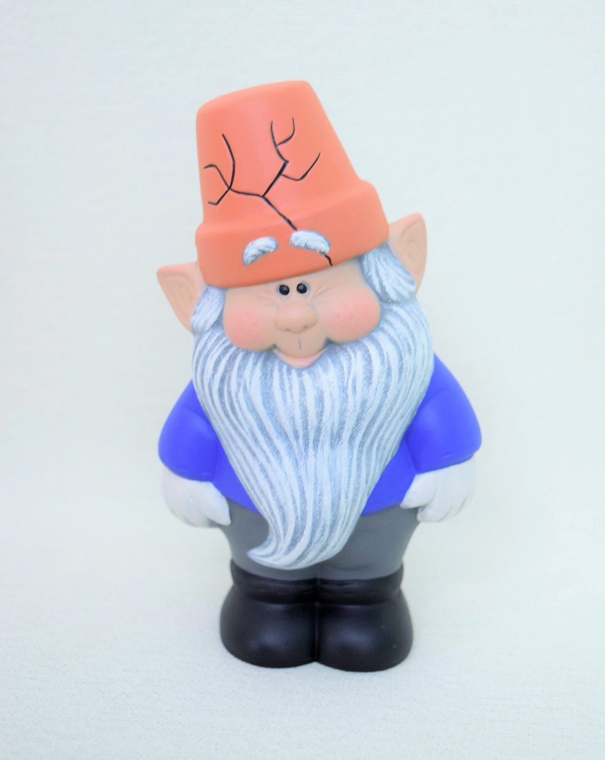 Ceramic Garden Gnome - Fairy Garden Gnome - Garden Gnome with pot for hat - Gnome Figurine - Gift for Gardener - Dwarf - Miniature Gnome