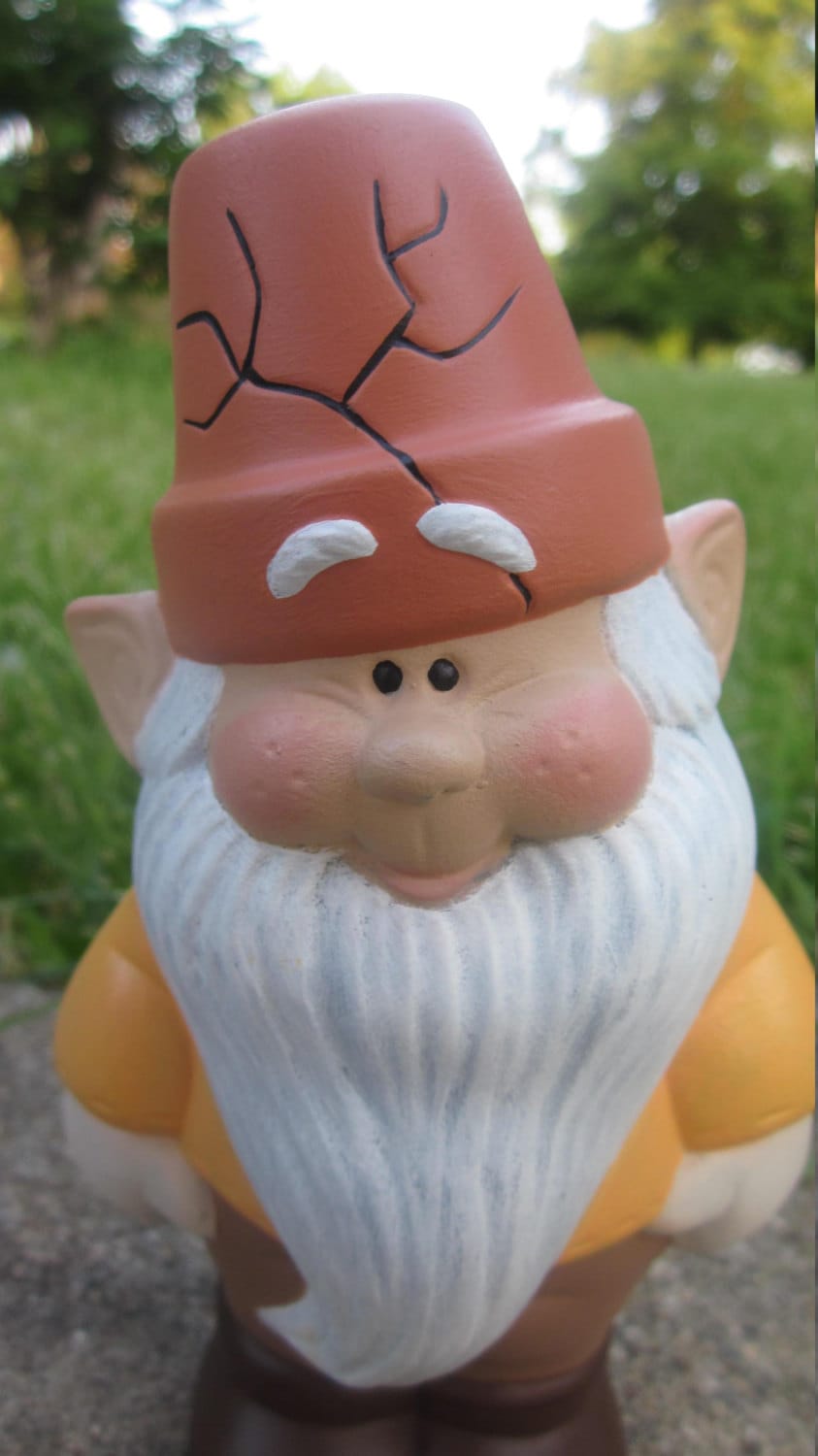 Ceramic Garden Gnome statue, cute gnome with a flower pot hat, yard art garden gnome
