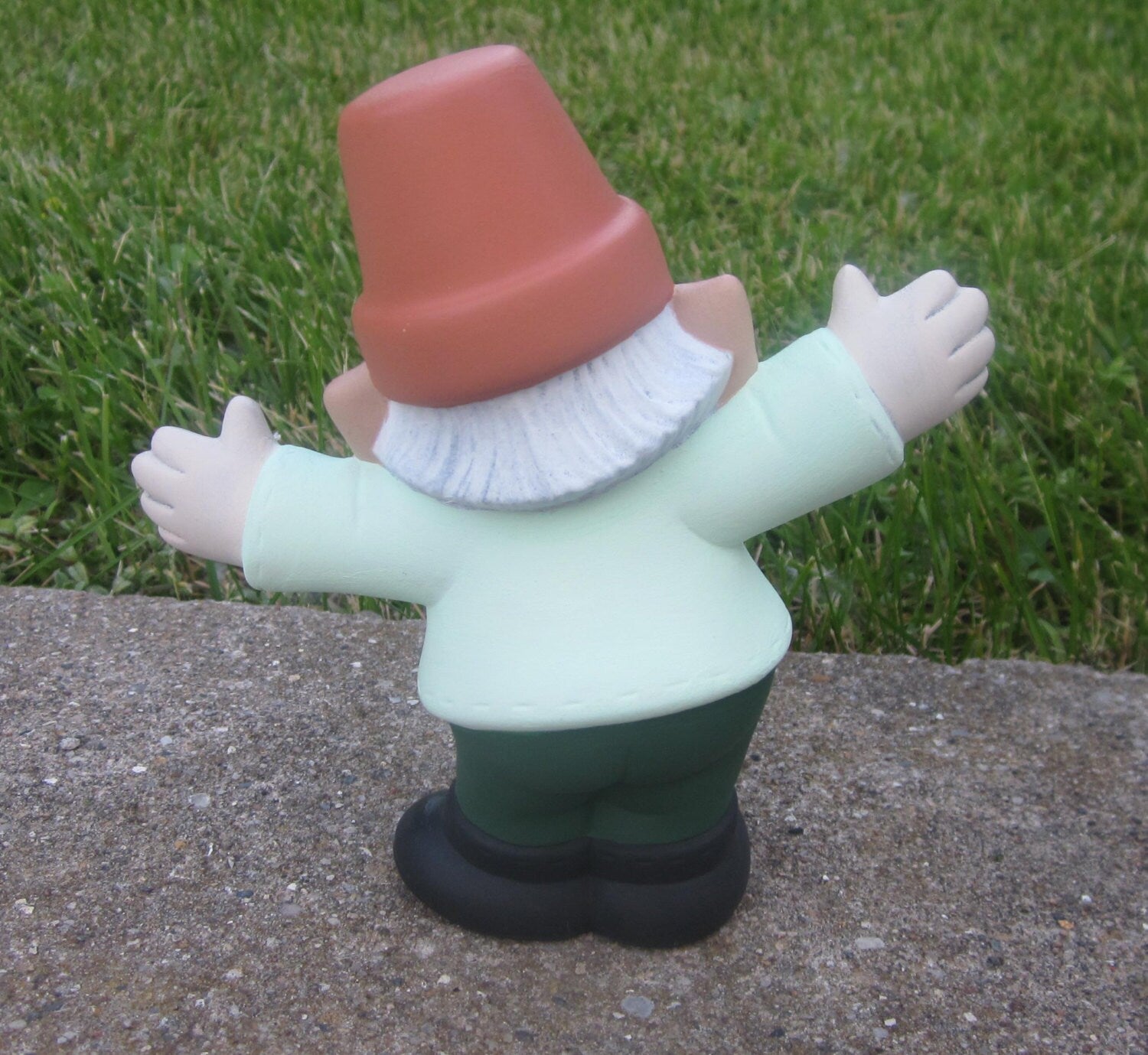 Ceramic Garden Gnome statue, welcoming arms, cute gnome statue, yard art gnome with a flower pot hat