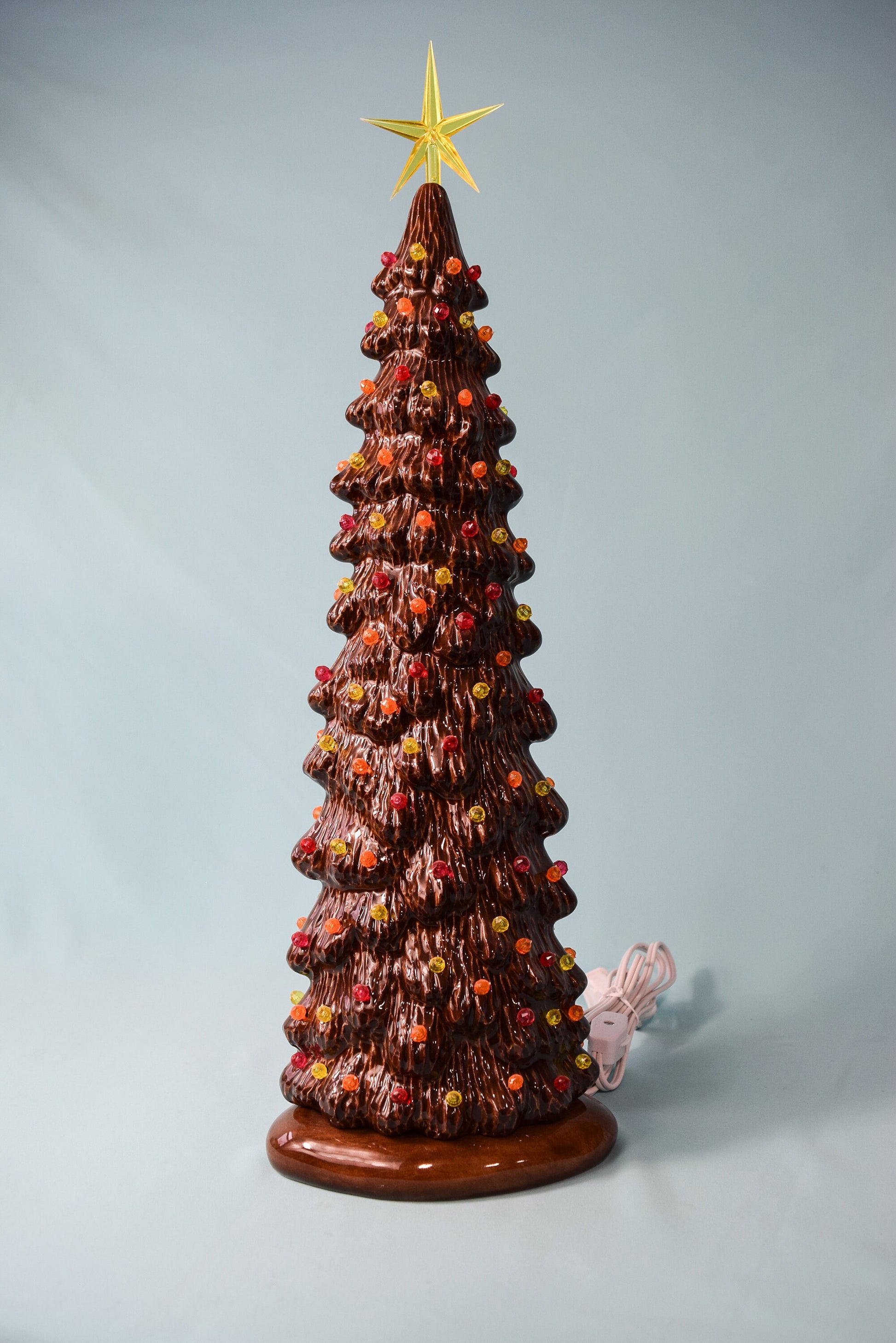 Multi-colored pin bulbs are glued in place. The star will be shipped loose to ensure no breakage.