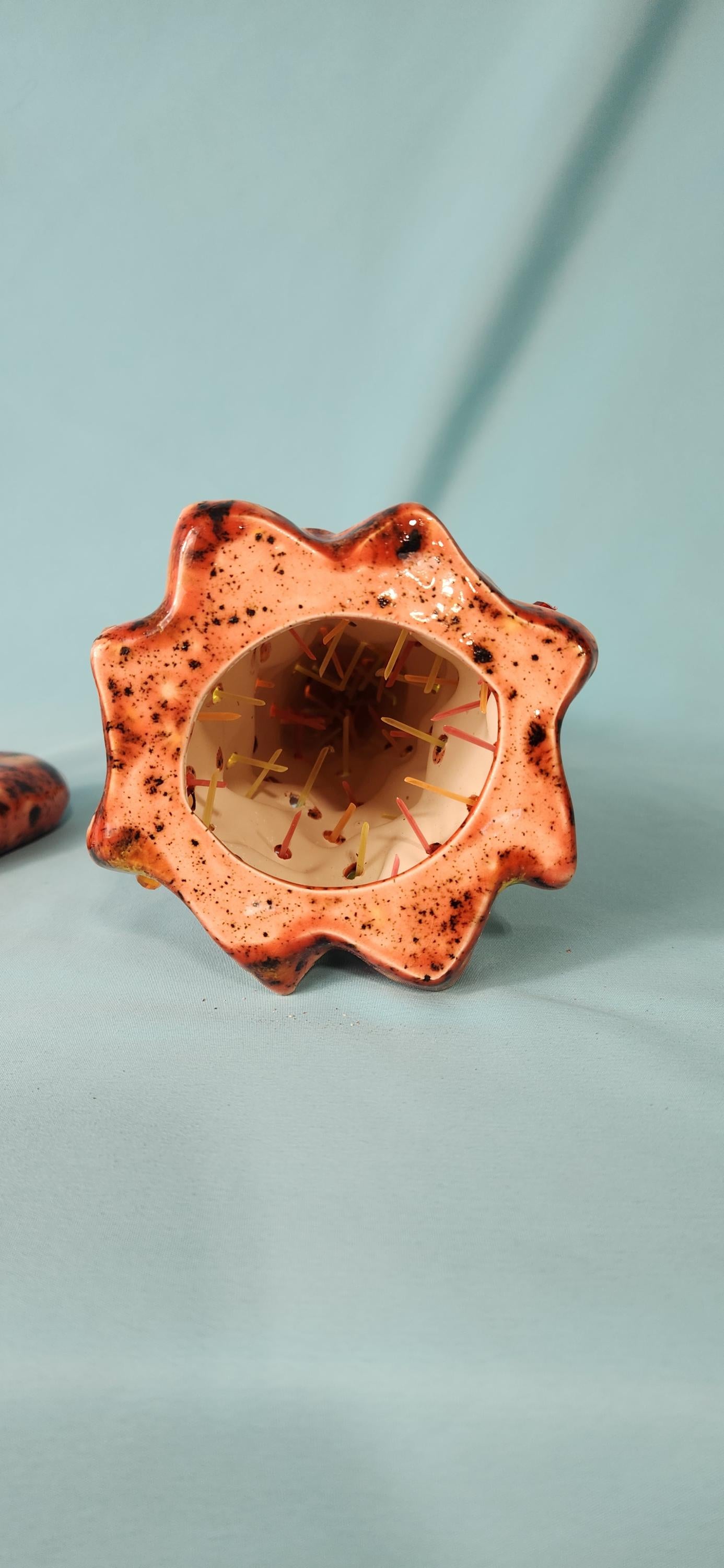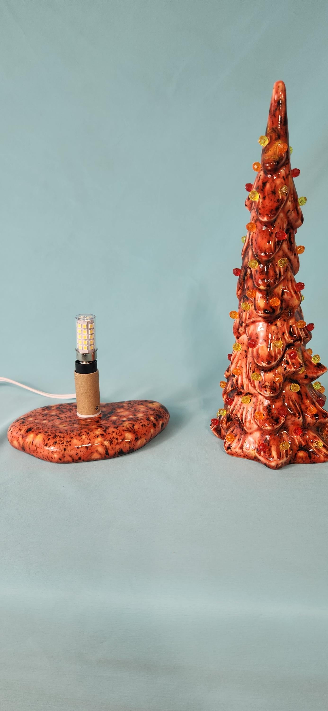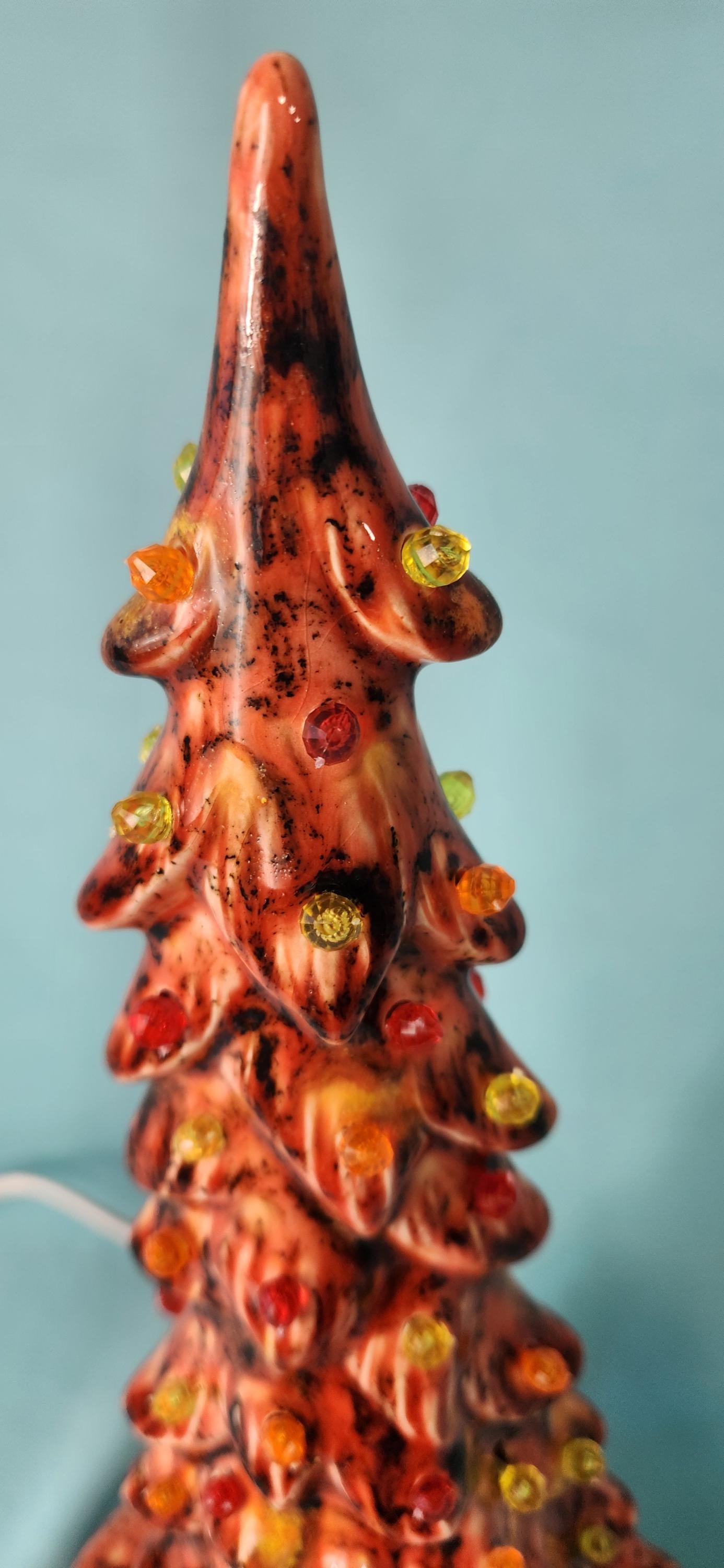 This is one my favorite trees that we get to decorate! It is one of our wispy pines, which is already quite whimsical and fanciful, but we've decided to kick it up a notch and add some of Mayco's crystal glaze which makes this Fall/Autumn/Halloween tree really look so beautiful. This particular glaze gives the tree an orange/yellow/red/black aesthetic that just fits the pumpkin spice season so well.