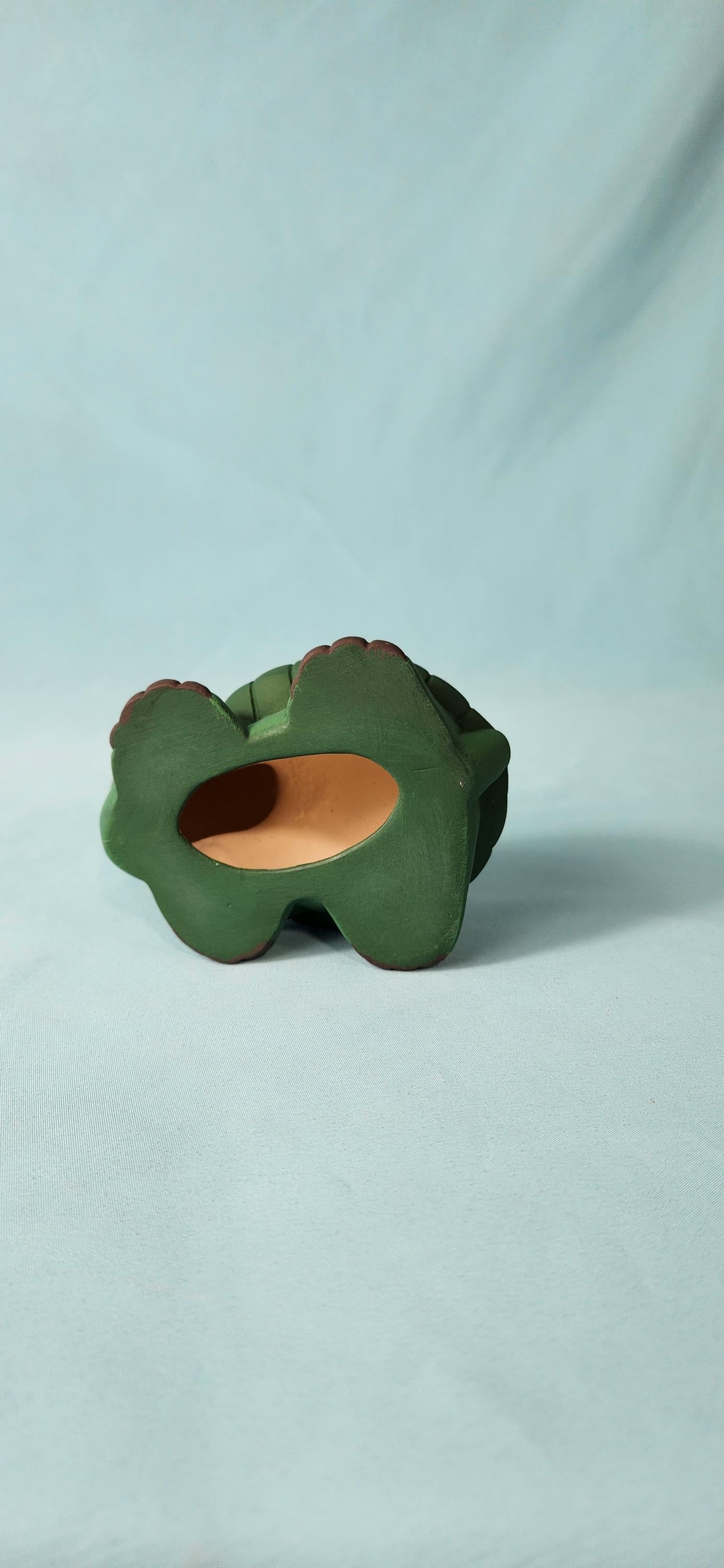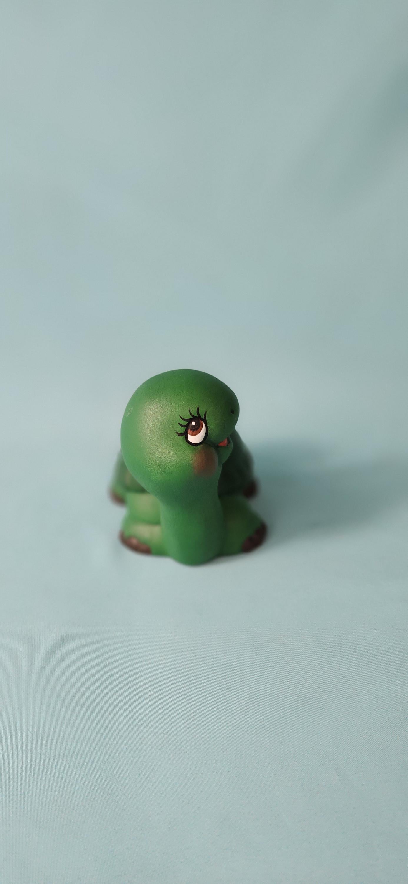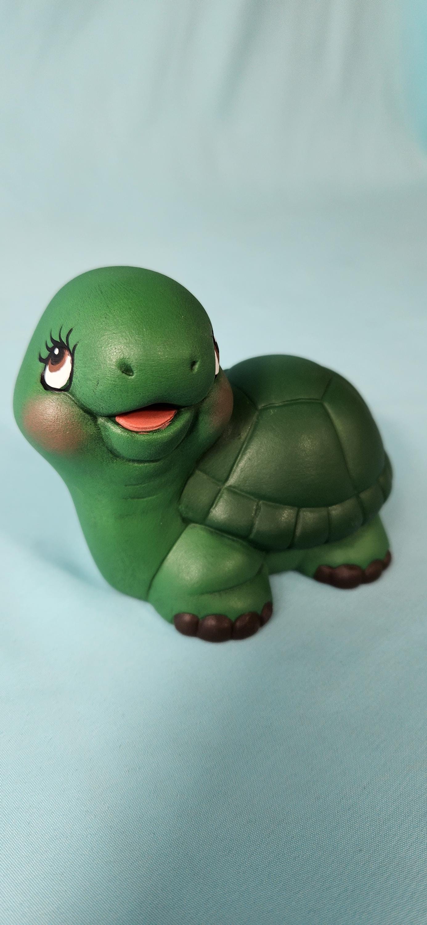 This ceramic turtle measures about 3 1/4 inches tall and 4 inches in length.