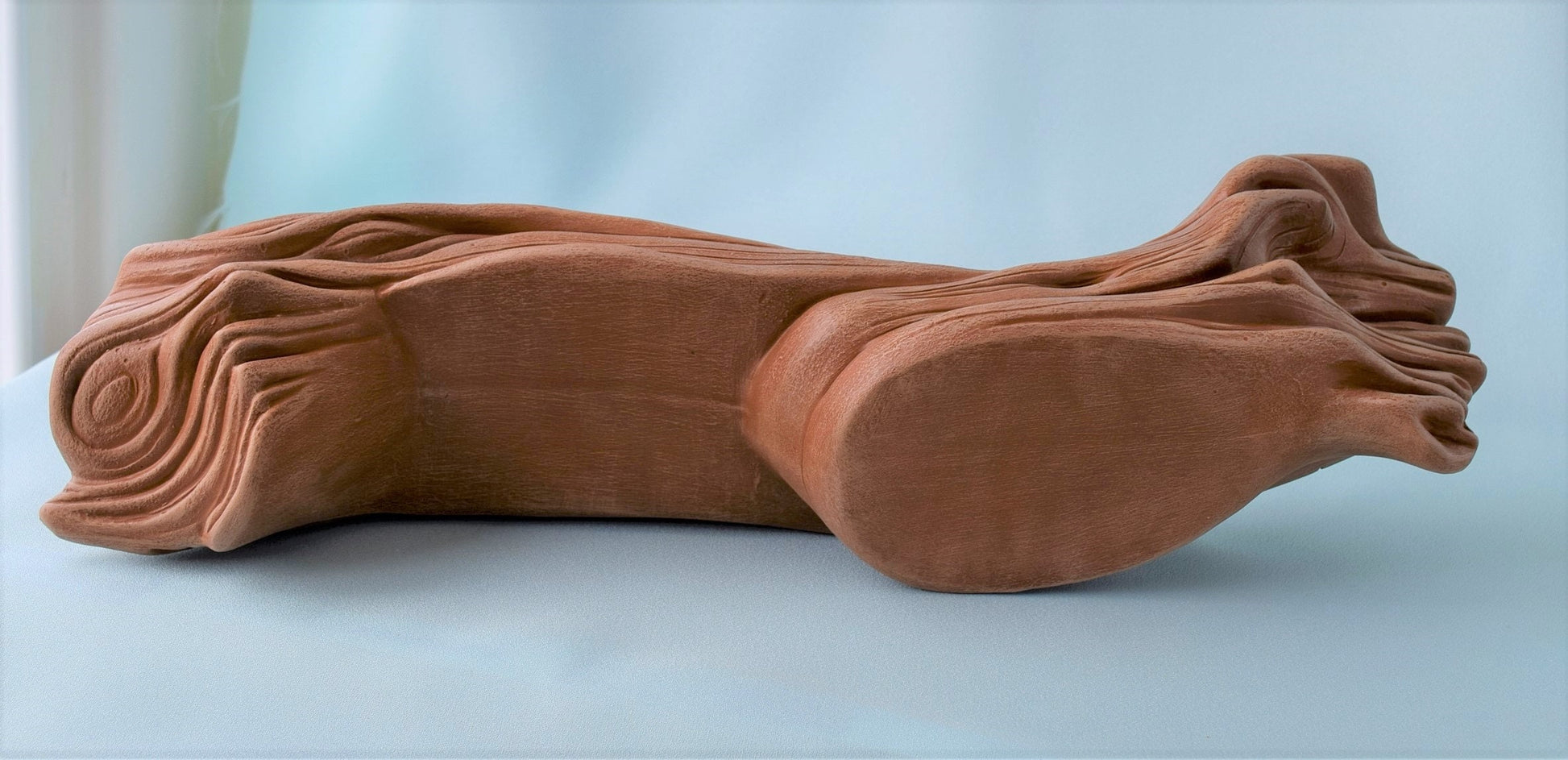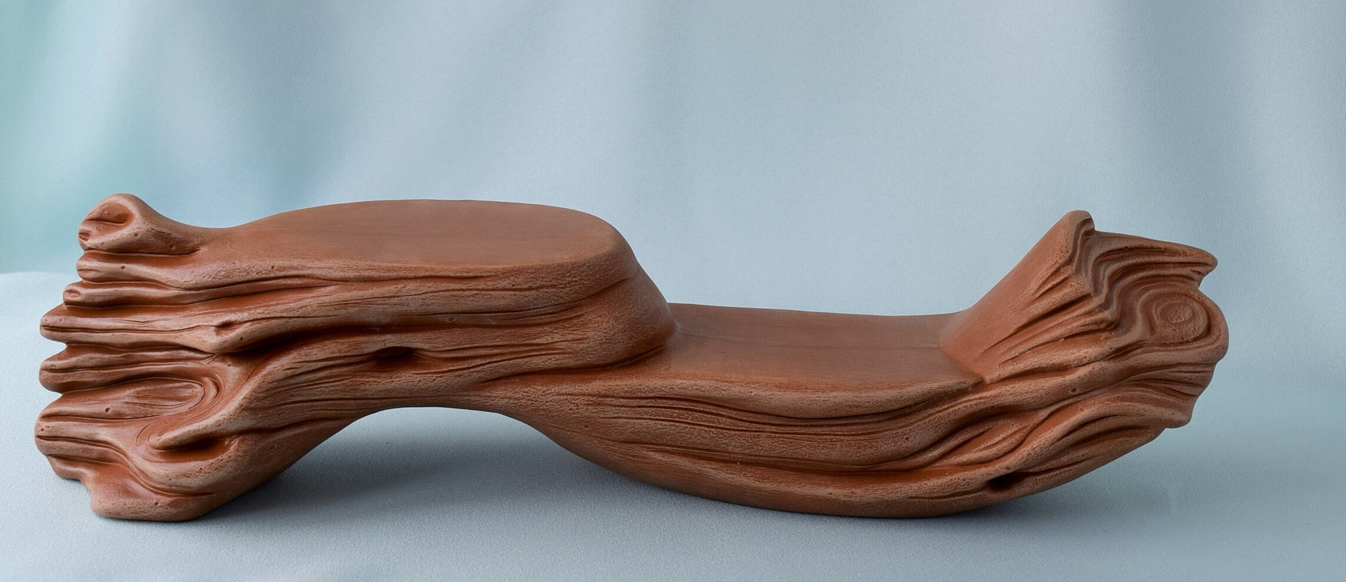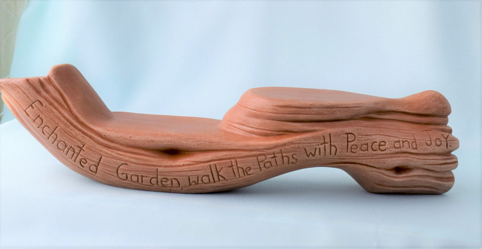 A driftwood log designed to display your garden goodies. You could set almost anything on this golden piece of ceramic that looks like wood.