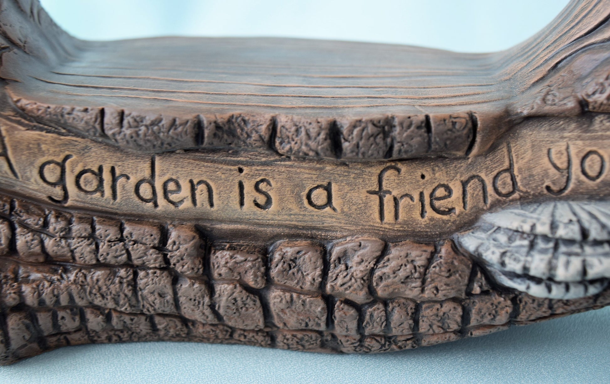 * Etched into the piece on one side is the saying "A garden is a friend you can visit anytime. The other side is plain.