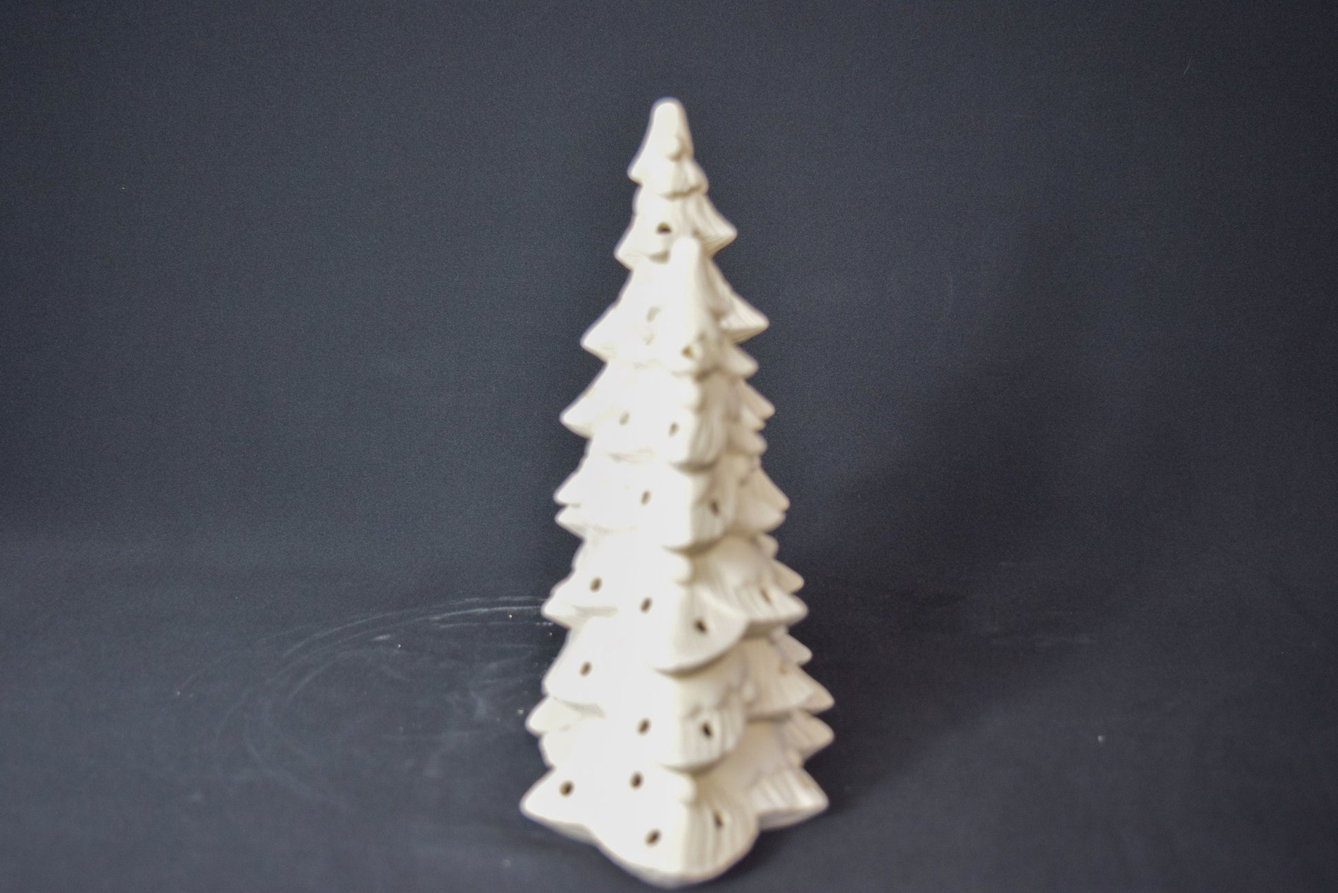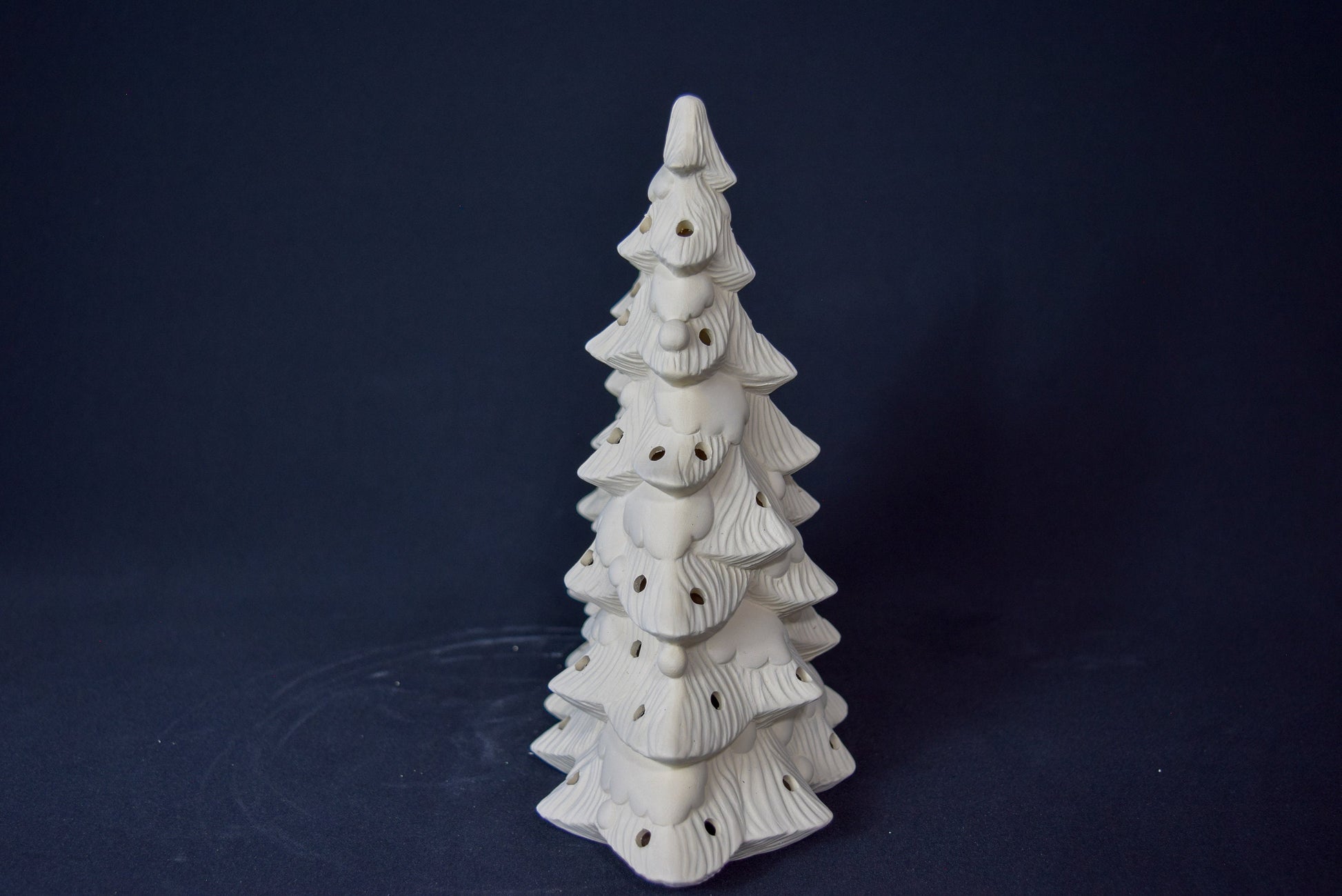 DIY Lighted Ceramic Christmas Tree Bisque - Unpainted Snowy Vintage Mold for Paint Party