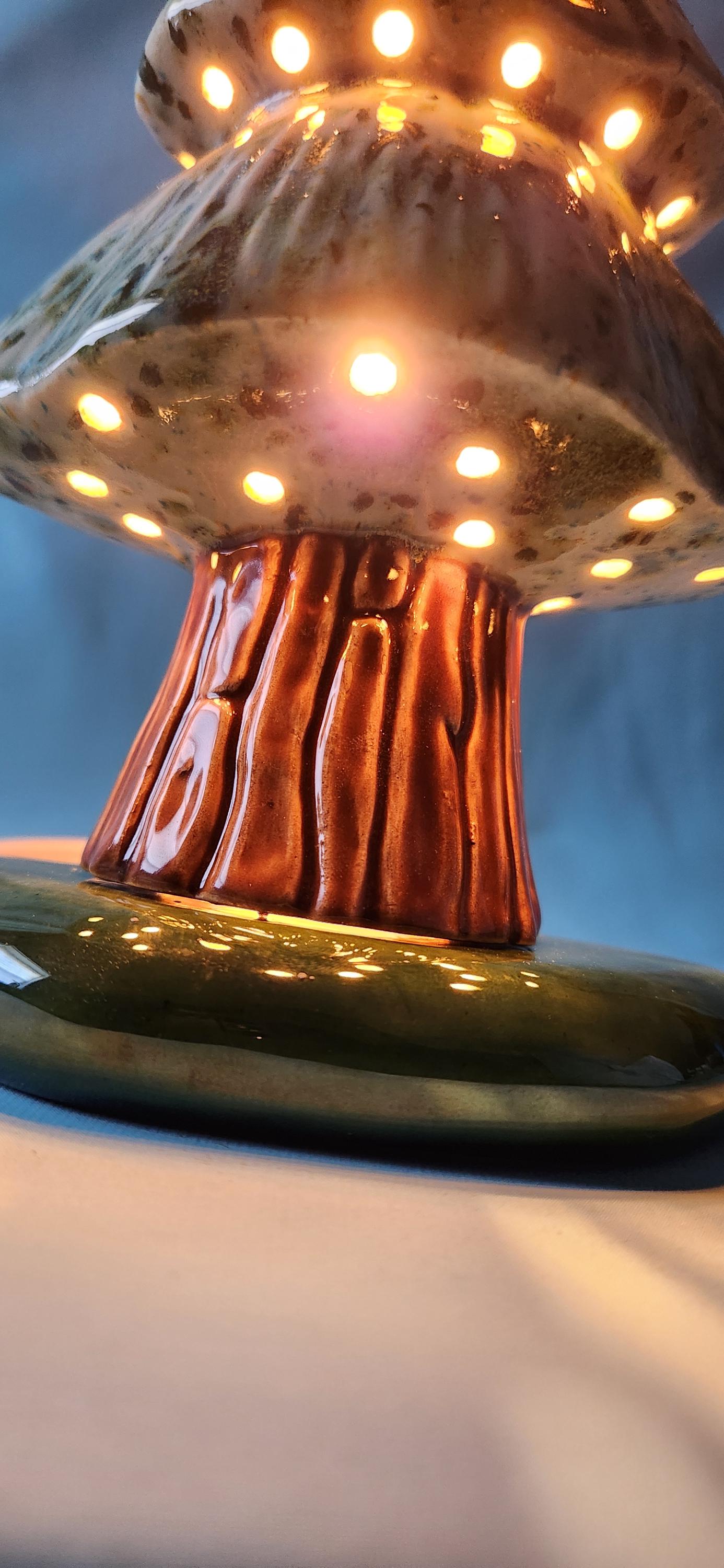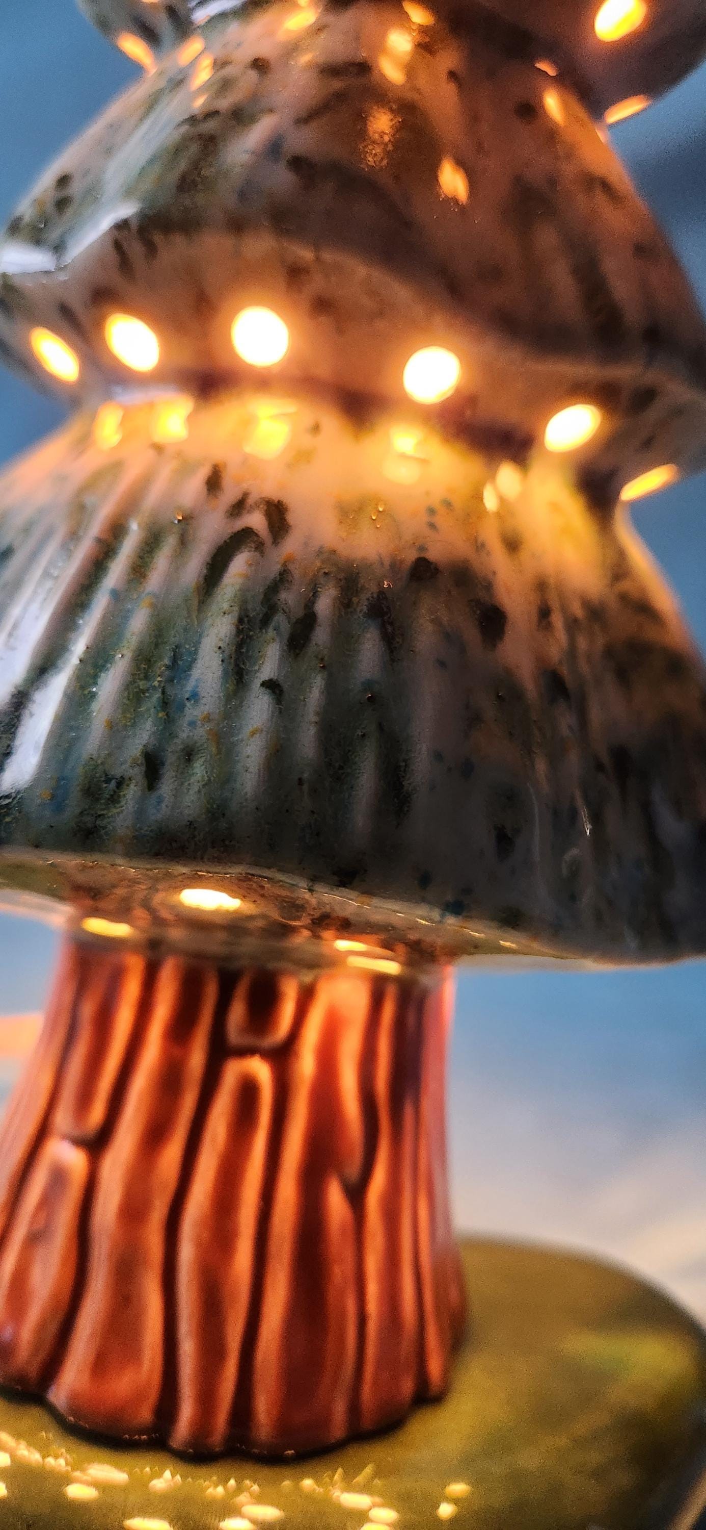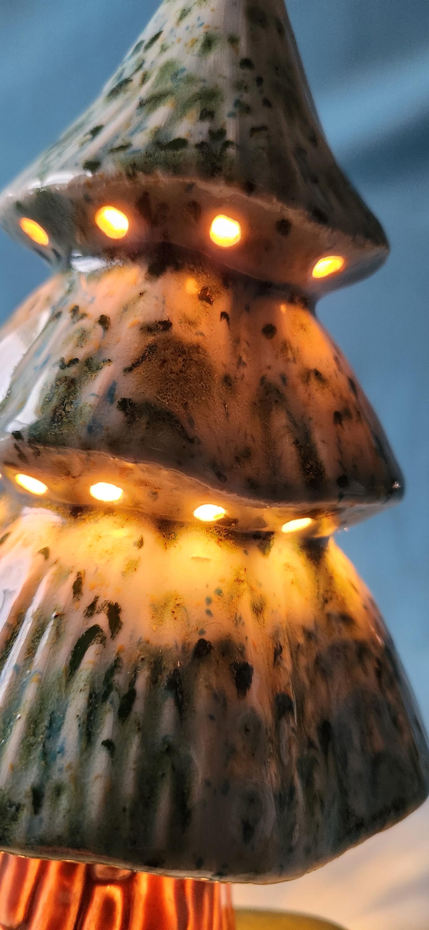Introducing our captivating miniature woodland tree, a brand-new design from Clay Magic! This piece boasts an exquisite texture that perfectly showcases our shimmering crystal glaze. Unlike a simple white, this glaze is infused with mesmerizing emerald and sapphire crystal bursts, complemented by subtle yet captivating gold accents. The depth and brilliance of these colors are truly remarkable, far more striking in person than any photograph can convey.