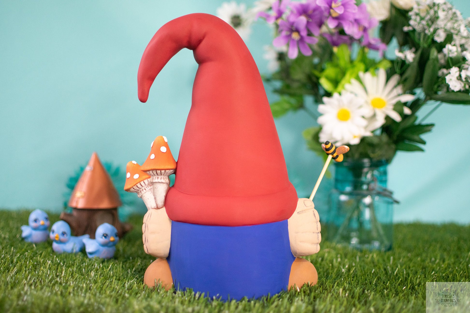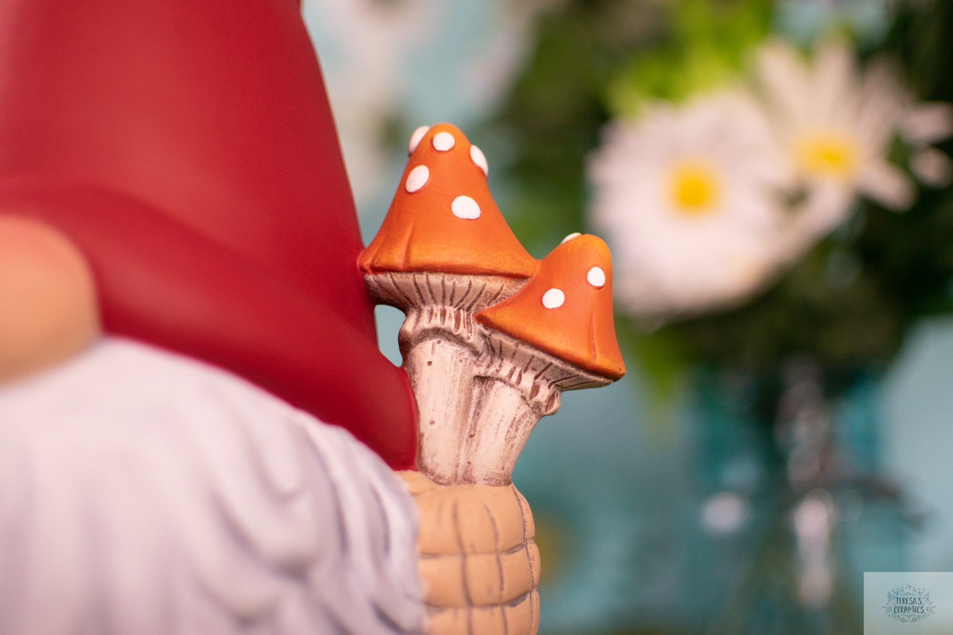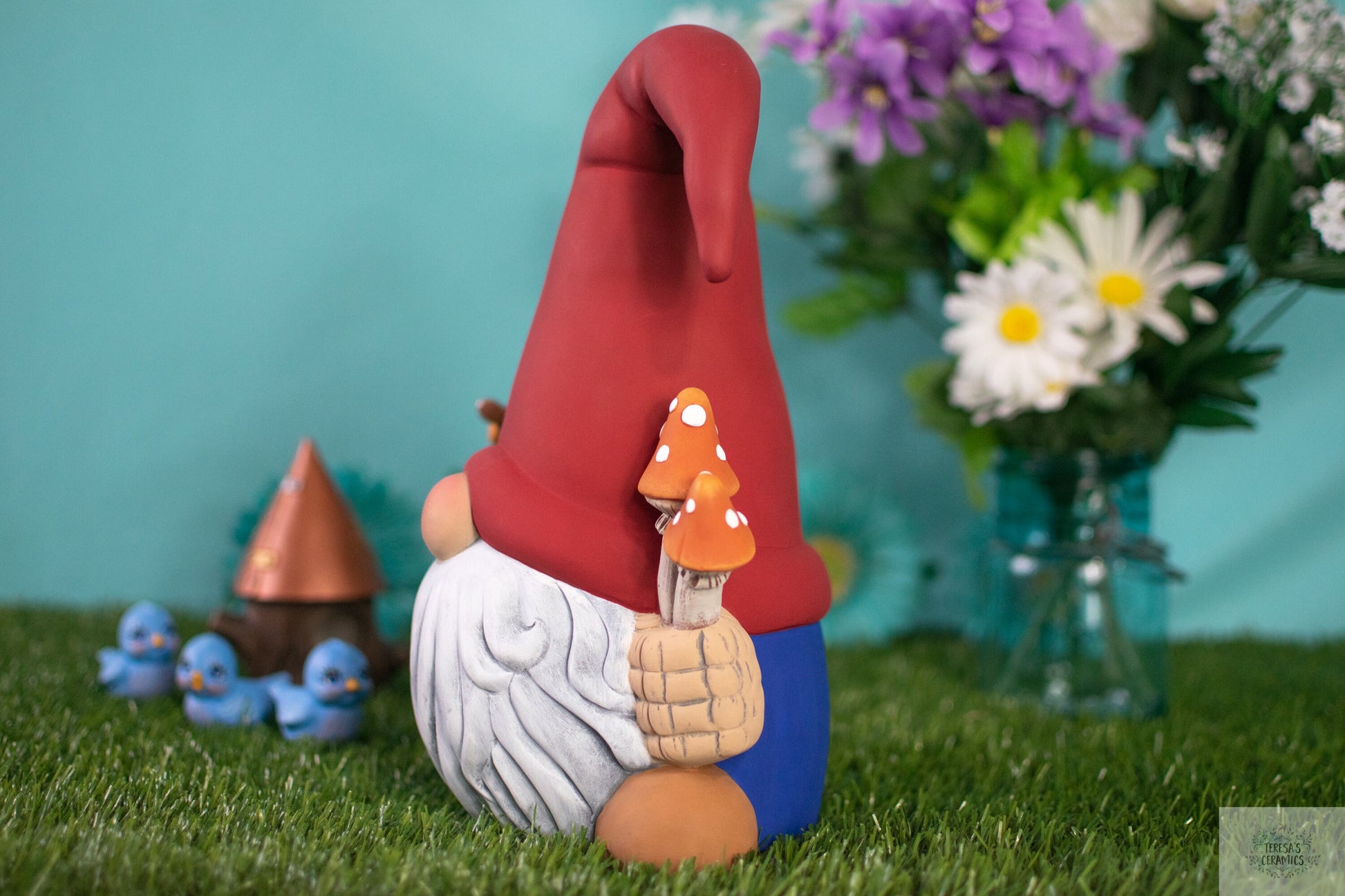 Finn The Mushroom Gnome | Fun Garden Decor | Gift for Mom | Clay Magic | Ceramic Garden Art | Funky Mushroom Gonk