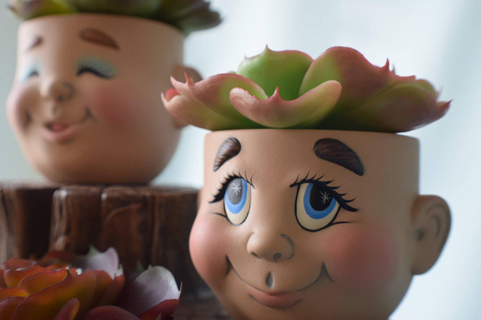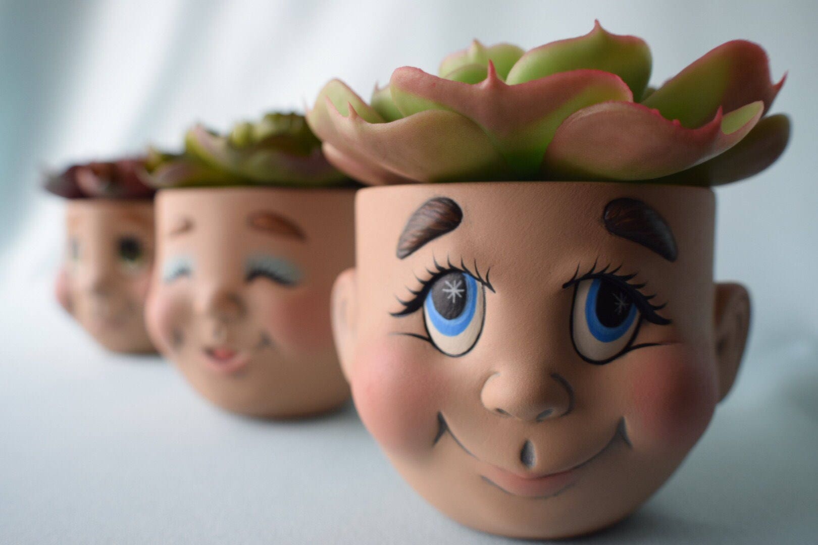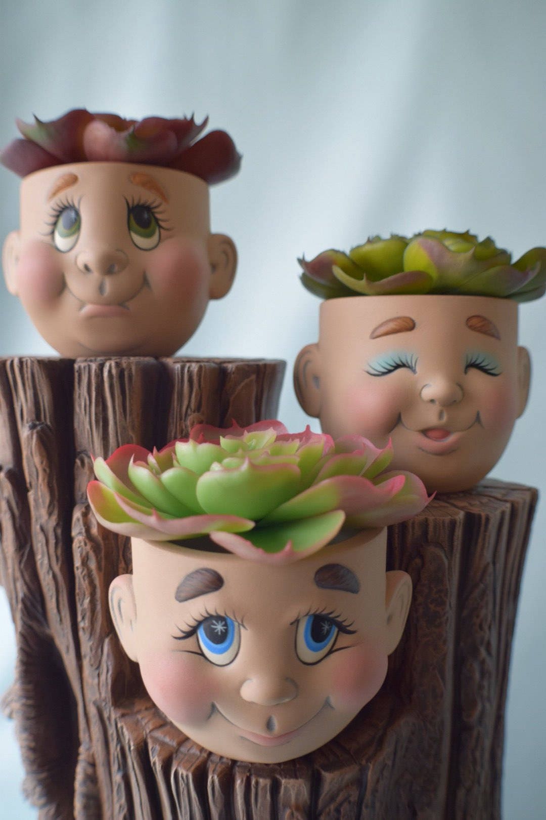 These unique ceramic pots really do bring a smile to your face. I bet you already have a few people in mind who these remind you of! Charming and very practical, you get the best of both worlds. Makes for great office decor or any green thumb would enjoy seeing their darling faces.