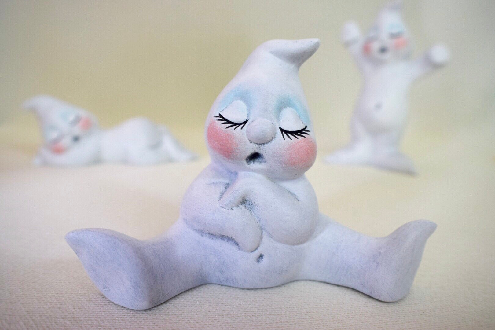These cute little ghosts were slip cast in my studio and then fired in the kiln. Finally they were finished using acrylic paints.