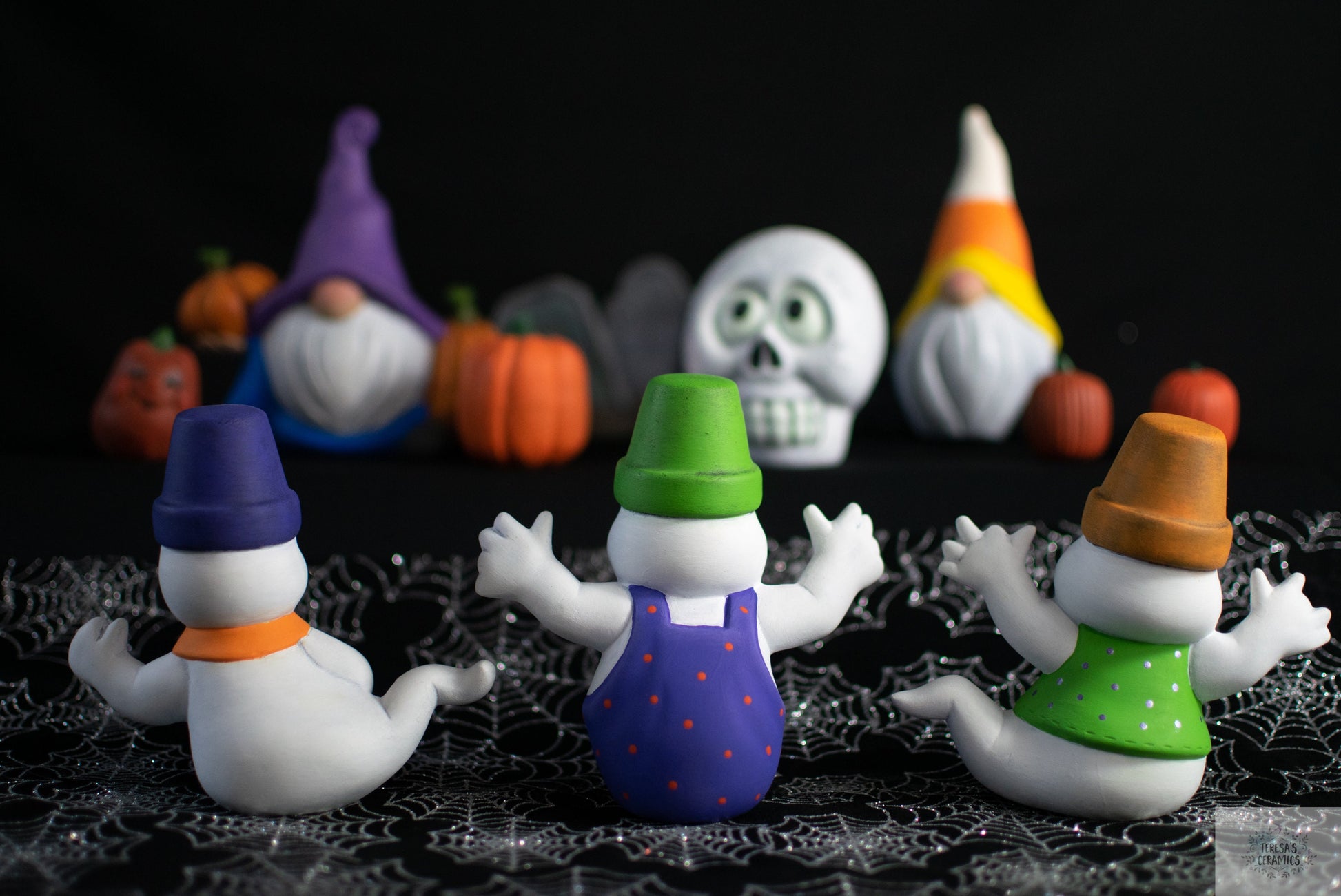 Boo-tifully Unique! Hand-Painted Ceramic Ghosts with Terra Cotta Pots - A Delightful Trio for Your Fall Garden! 🎃👻