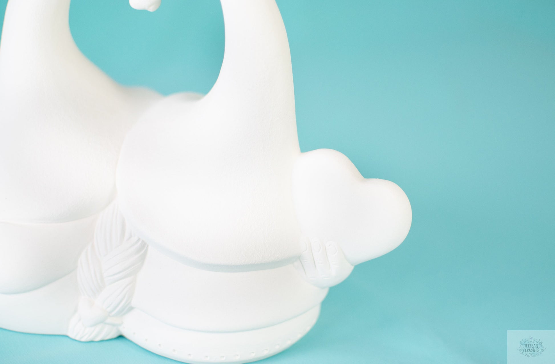 Each bisque gnome couple is hand poured in my ceramic studio. I use premium ceramic slip, pour it into a ceramic mold which shapes the ceramic gnome. Once it is dried as greenware, the ceramic gnomes are cleaned and fired in the kiln. Once fired the piece is cleaned once more and wrapped to safely ship to you!