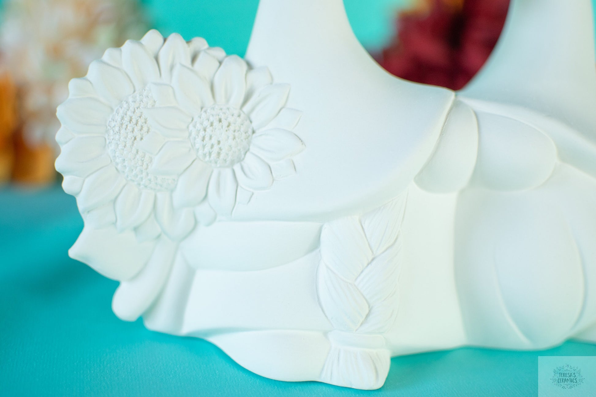 Sunflower Gnome Couple Bisque Ceramics: DIY Paint Party Project for Fall Centerpiece Decor