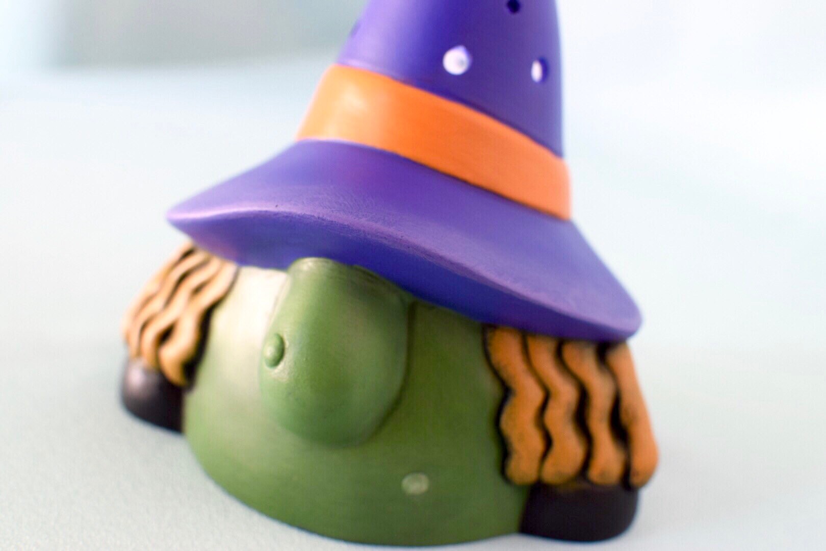 *Handmade in my ceramic studio, this heirloom piece will keep for many years to come. Simply store the witch after the chilly fall days back inside of storage or on a three season porch to protect the paint from freezing temperatures.