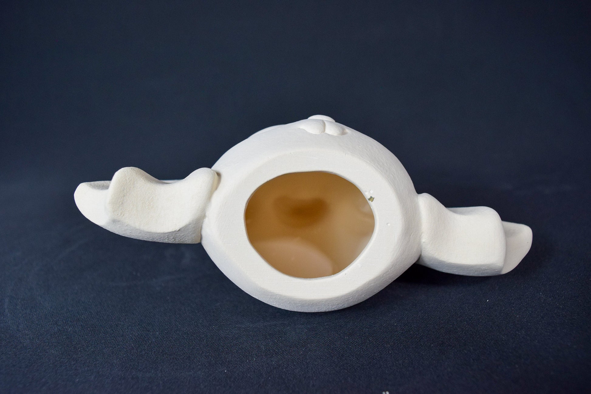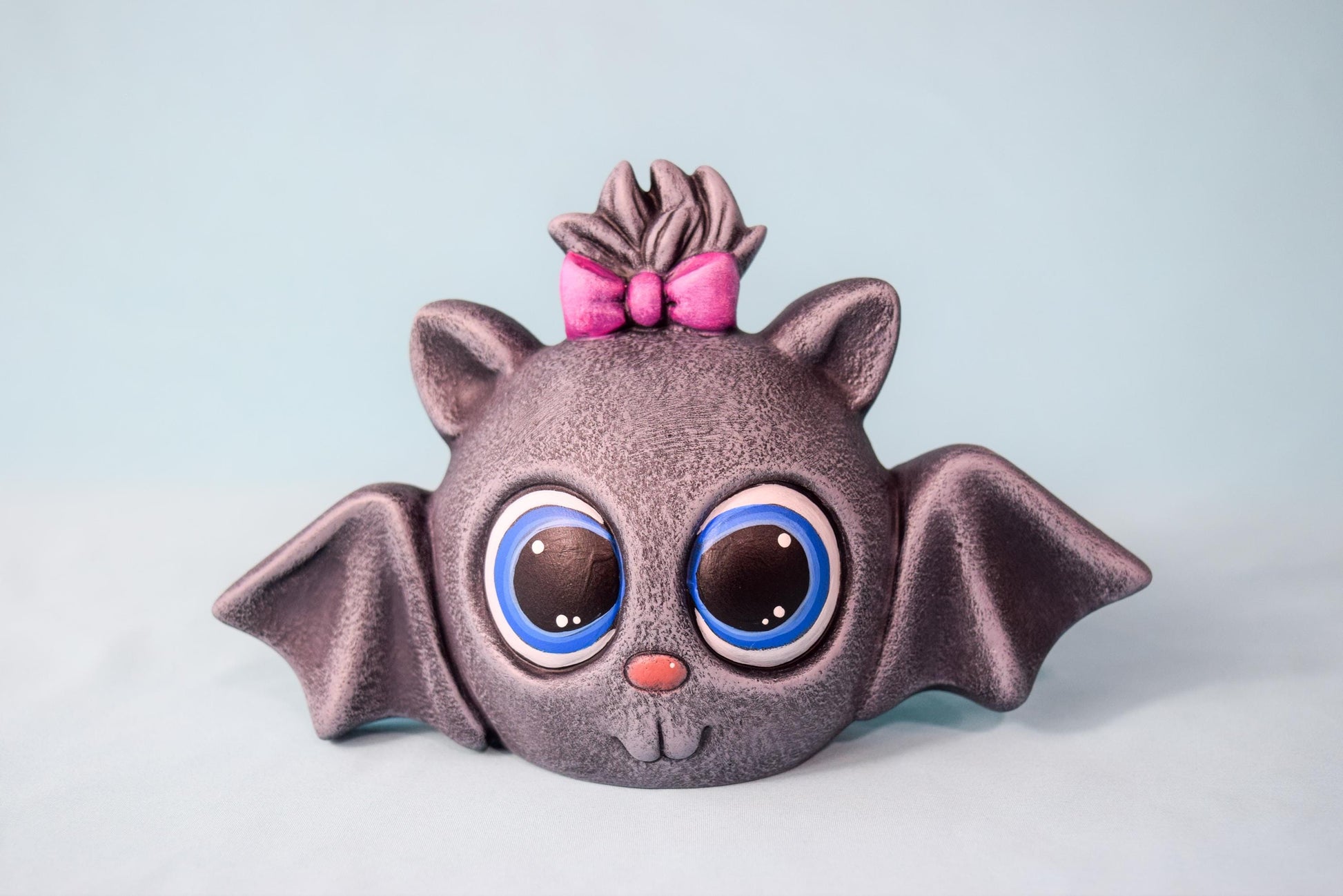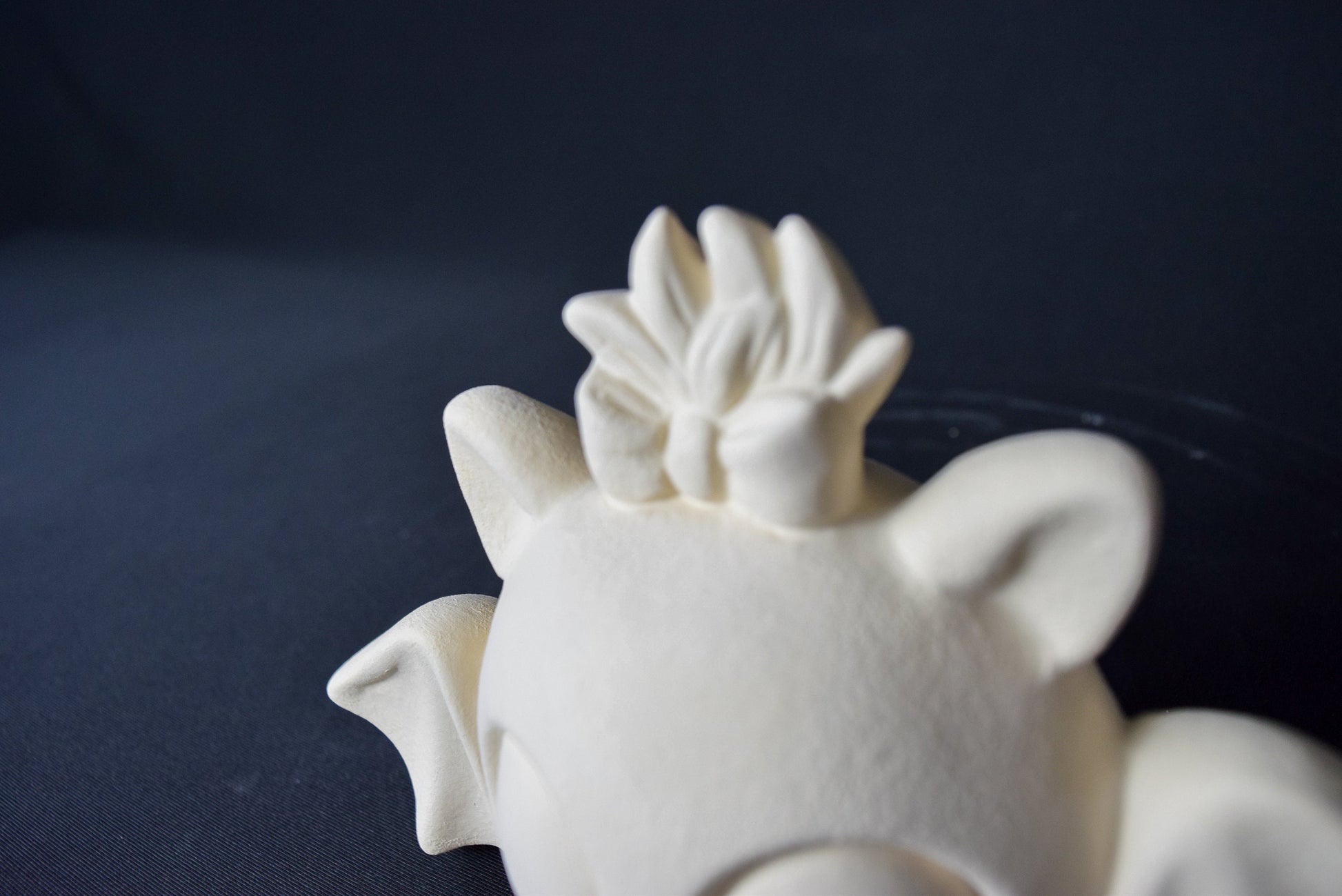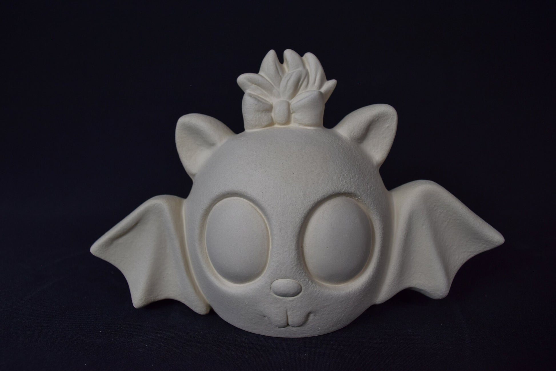 This sassy little bat has her hair tied up in a bow! She is so darling! Very cool for a not-so-spooky Halloween decor option! This is a new Clay Magic mold that we're excited to paint ourselves, but we want you to have the option to paint this baby up yourself!