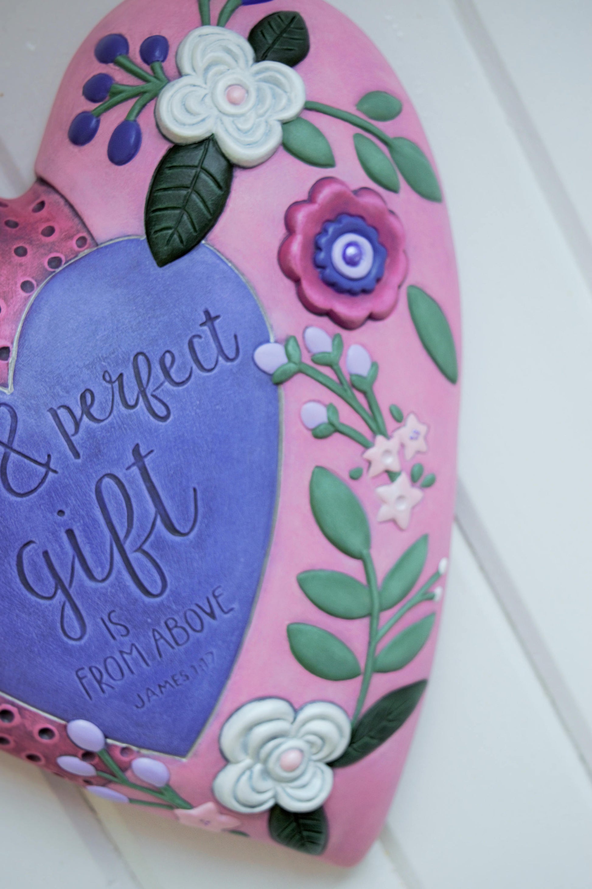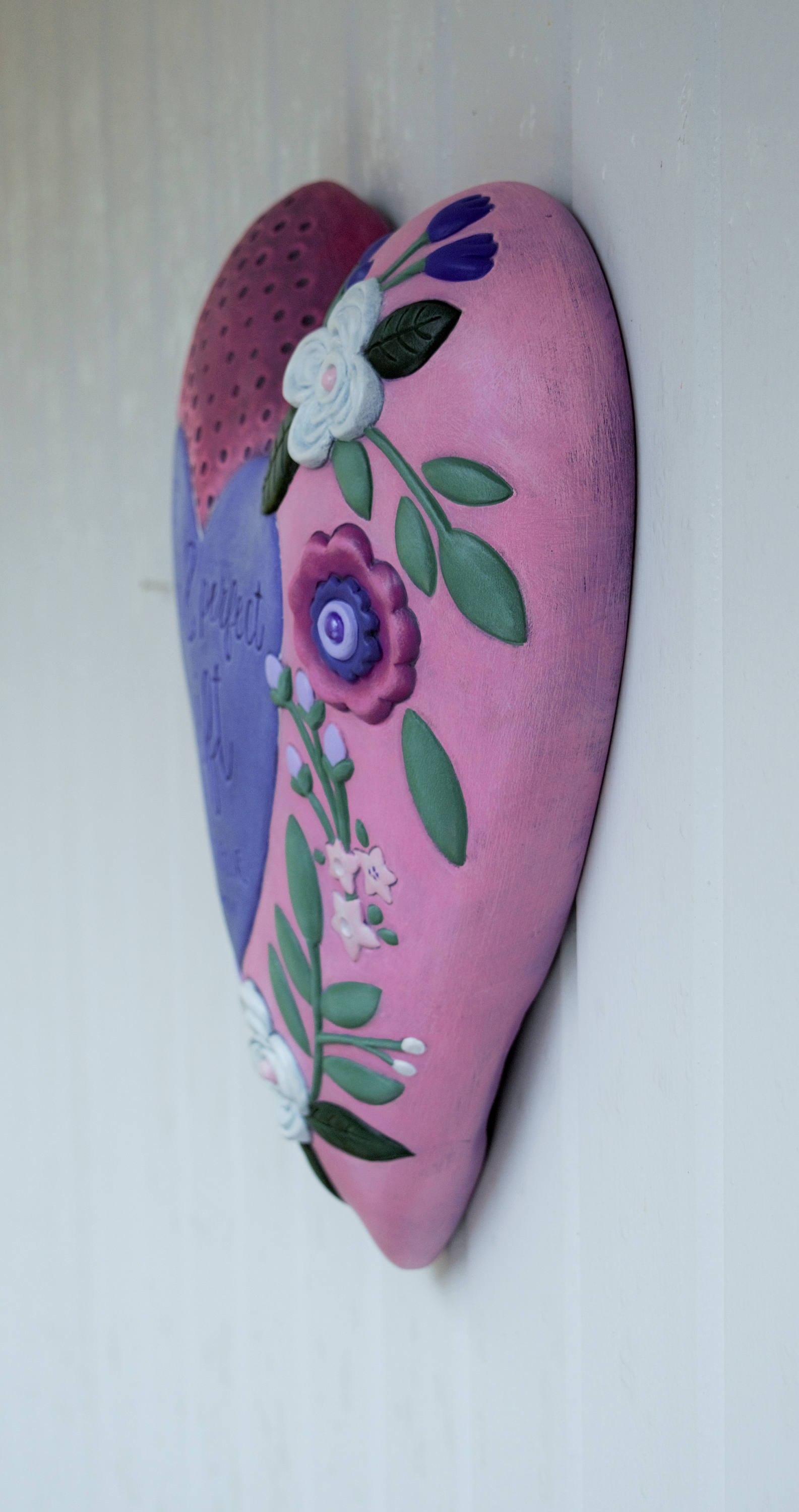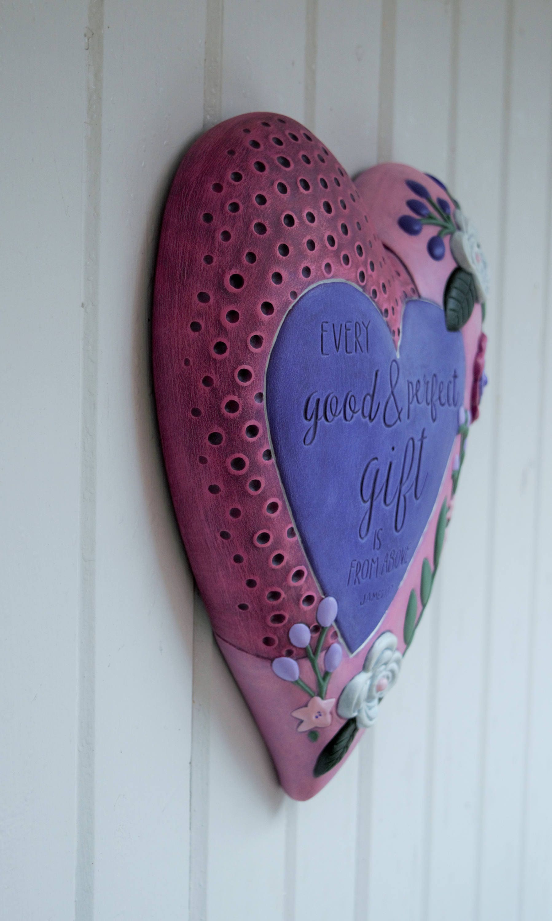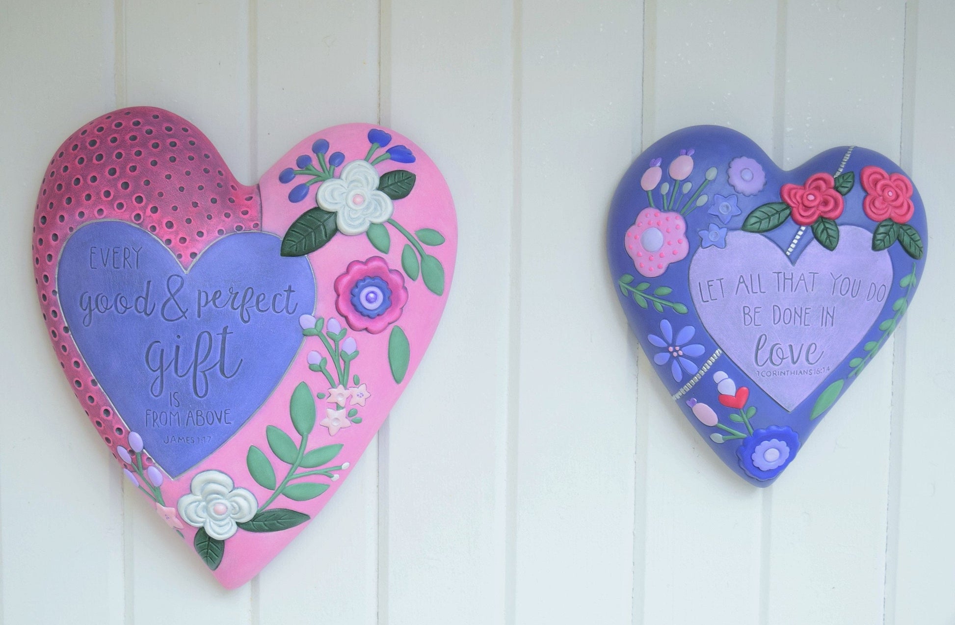 Heart Wall Hanging - Valentines Gift - Spiritual Gift - Garden Art - Biblical Wall Art - Floral Heart Wall Decor - Ceramic Heart Plaque