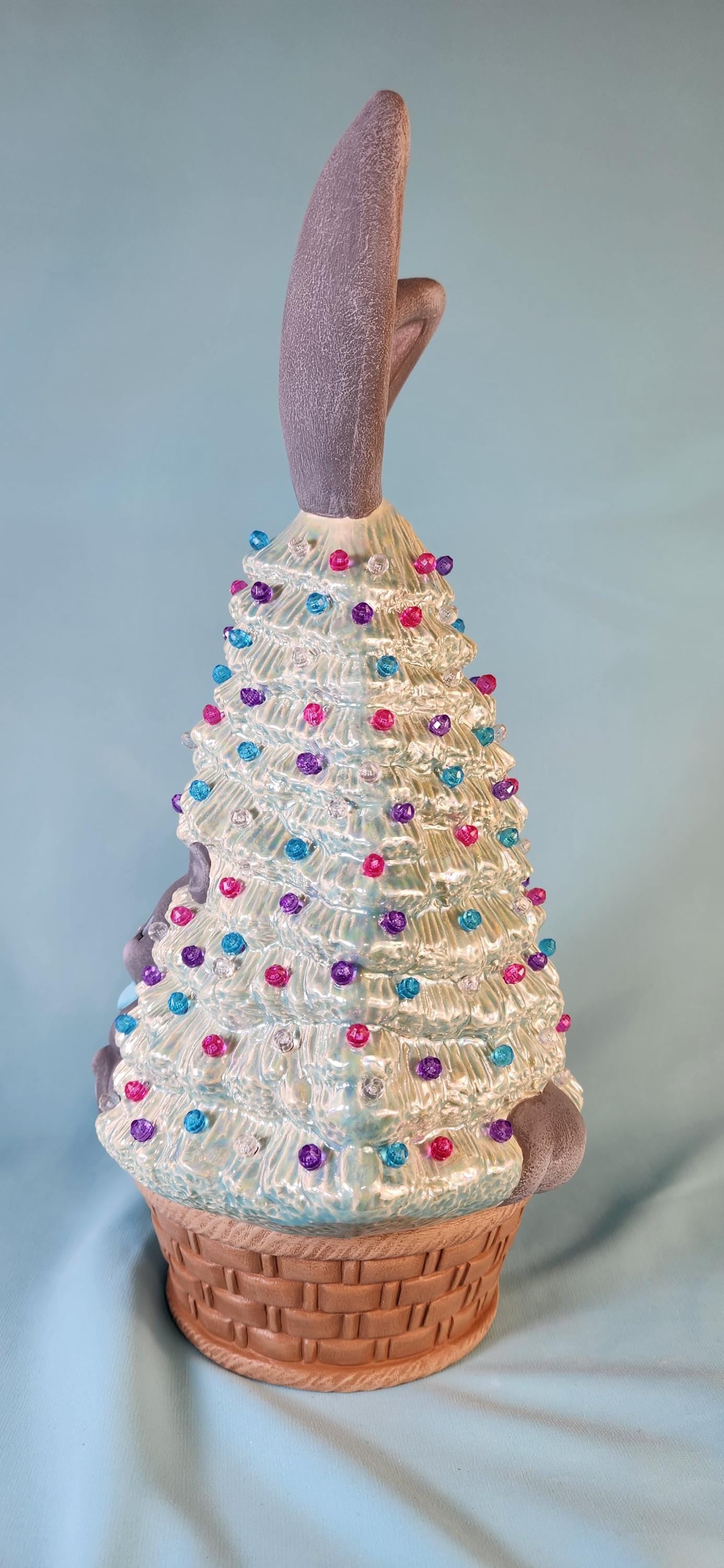 Illuminated Easter Bunny Ceramic Tree: Mother of Pearl Pastel Accent Piece with Basket Base & LED Lights