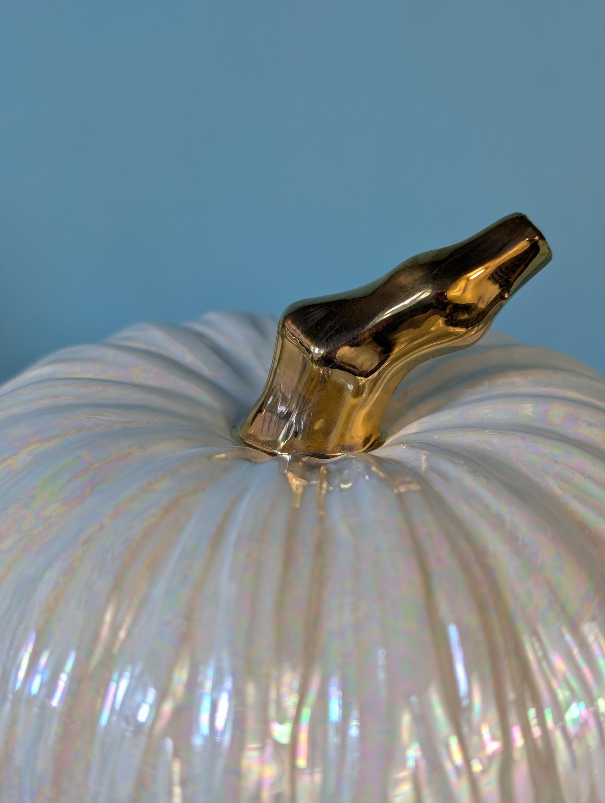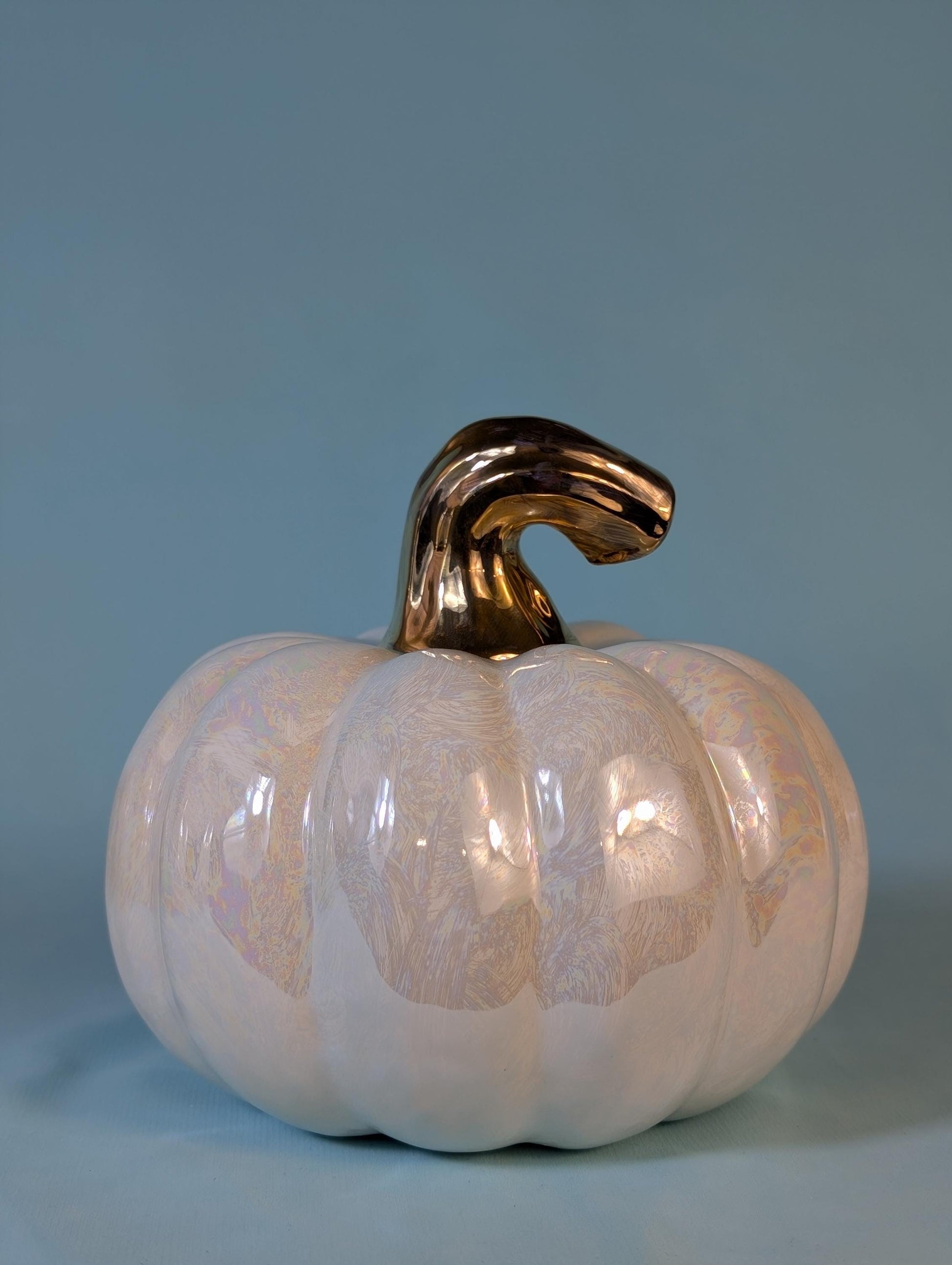 Iridescent Ceramic Pumpkins: Gilded Mother-of-Pearl Glazed Autumn Decor