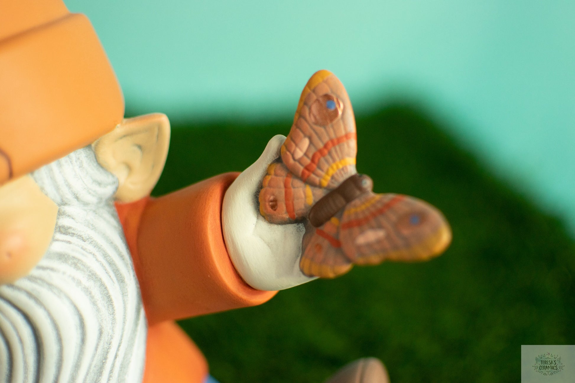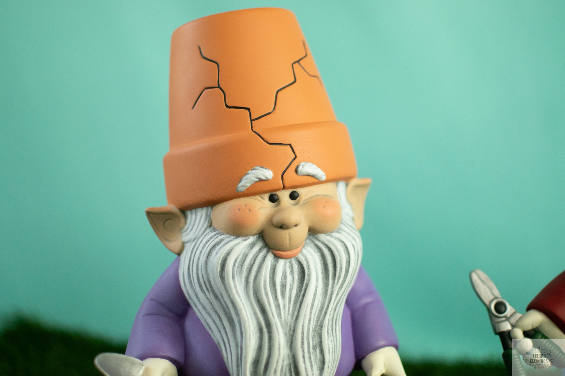 Every ceramic is made in a small batch of greenware here at the studio using the slip-casting method. Ceramic slip is poured into a vintage mould, cast and cleaned before placing in the kiln. Once it is fired in the kiln, it cools and is removed to be painted. Every shade is mixed by hand with acrylic paints. The gnomes are sealed with a clear varnish to preserve their colors.
