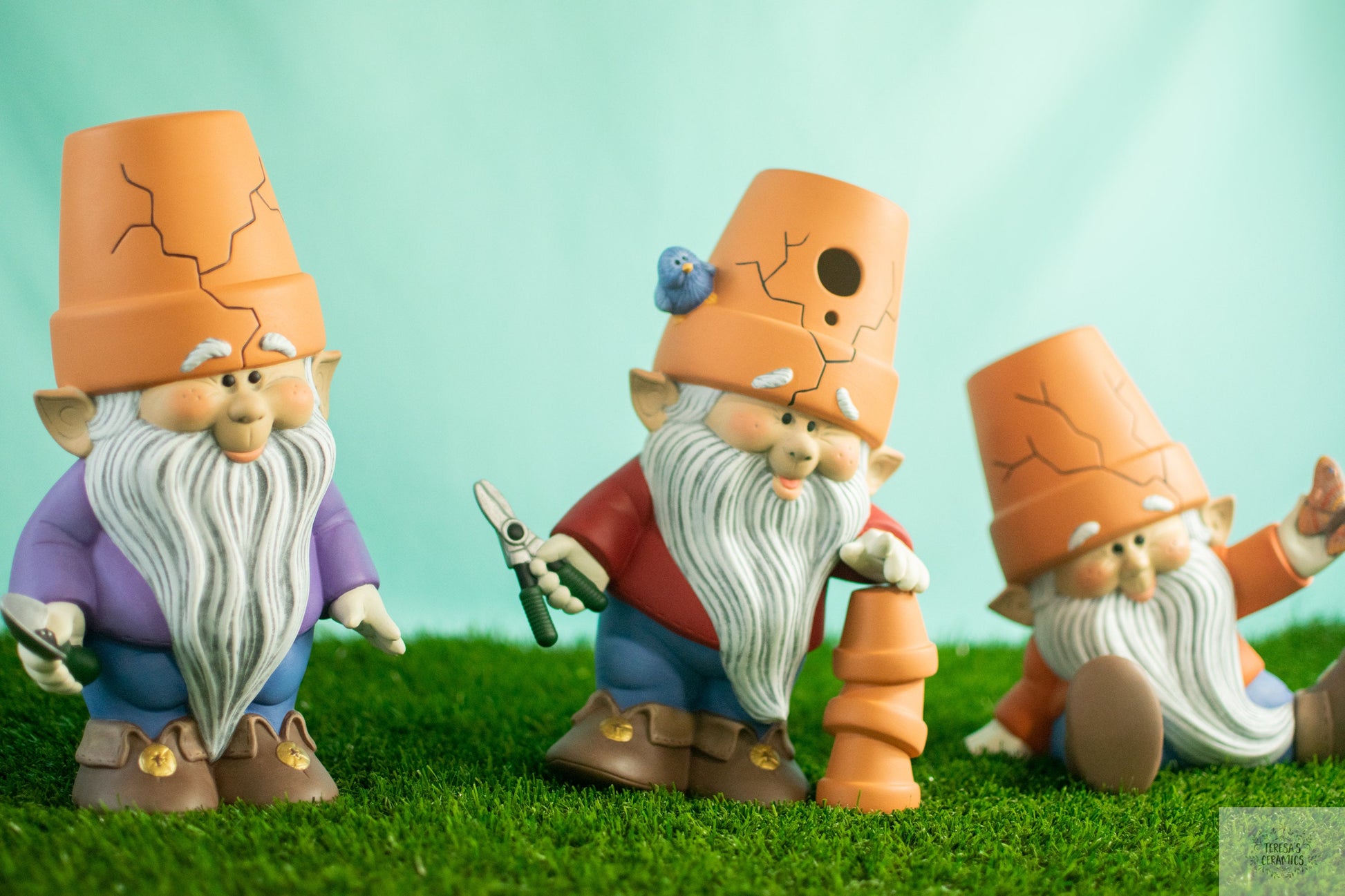 Large Crockpot Gnomes | Set of Three | Garden Gnome Brothers