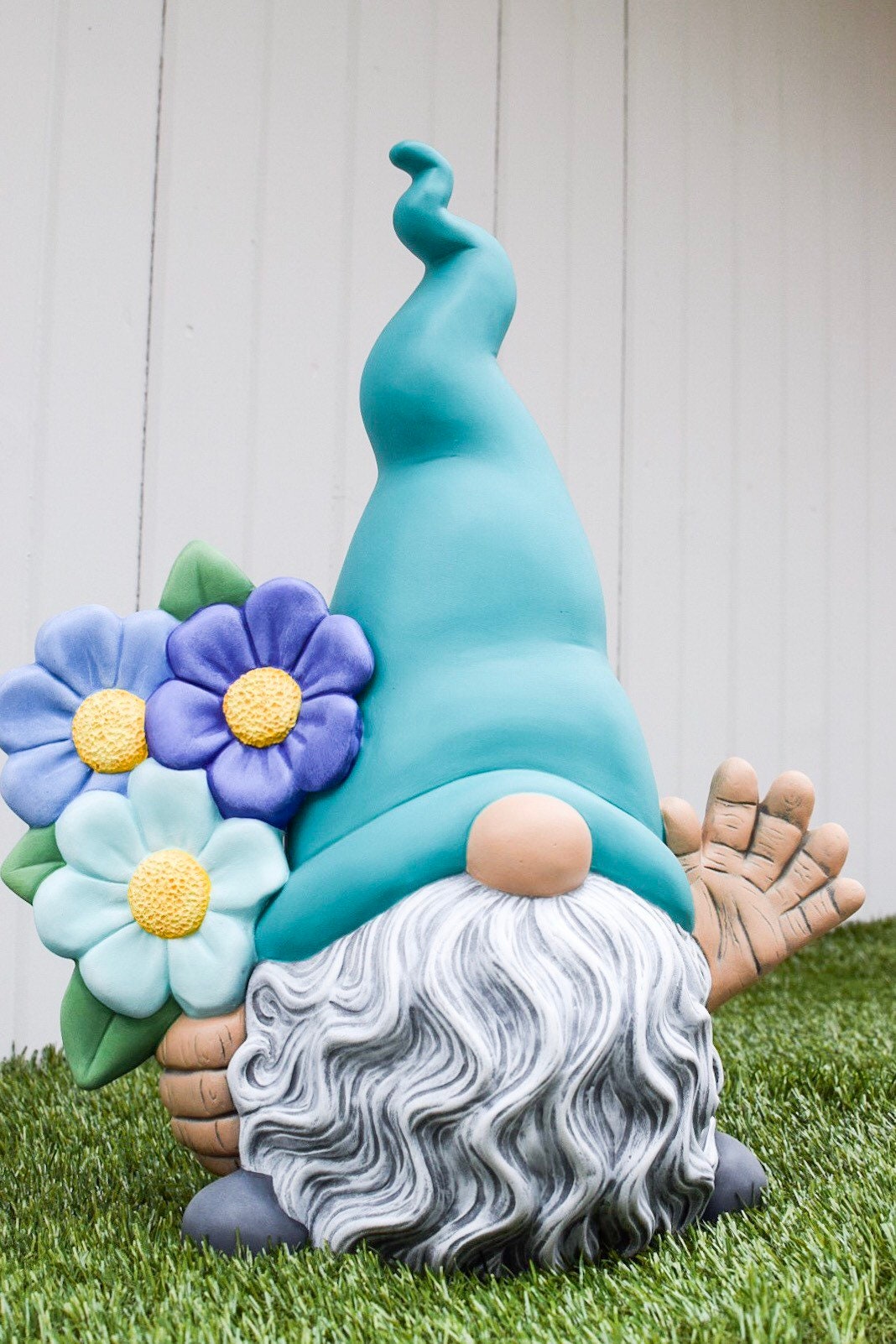 *This Garden Gnome holds flowers in his hand and is waving hello 👋🏻 with the other!