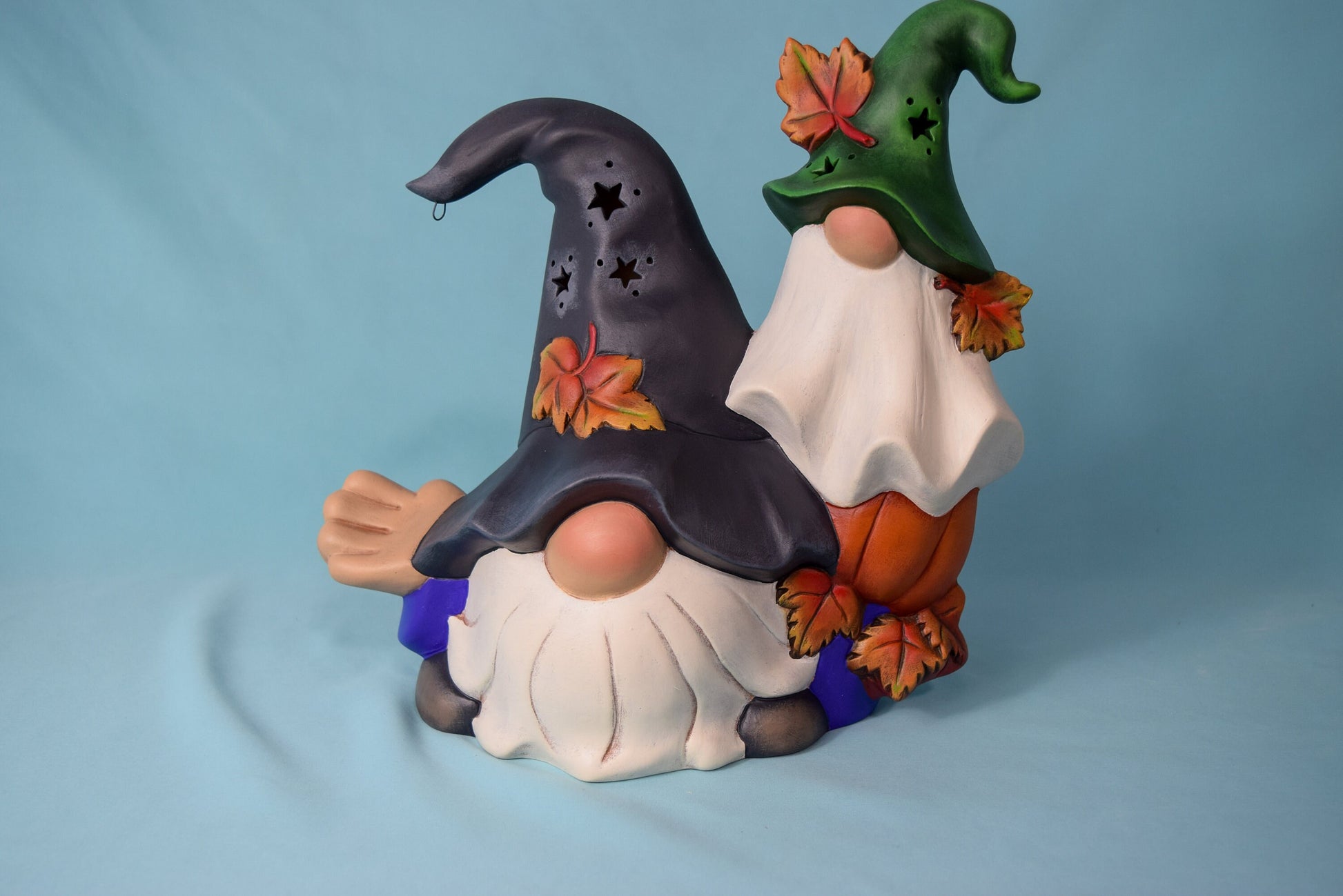 Absolutely perfect and quintessentially fall décor! You've got a cute fall Gnome, pumpkins, fall maple leaves, cute start cut outs that light up, and the cutest little Ghost Gonk! This is so adorable, and I'm very much looking to painting this piece so you can get him in your mantle in time for the fall and Halloween!