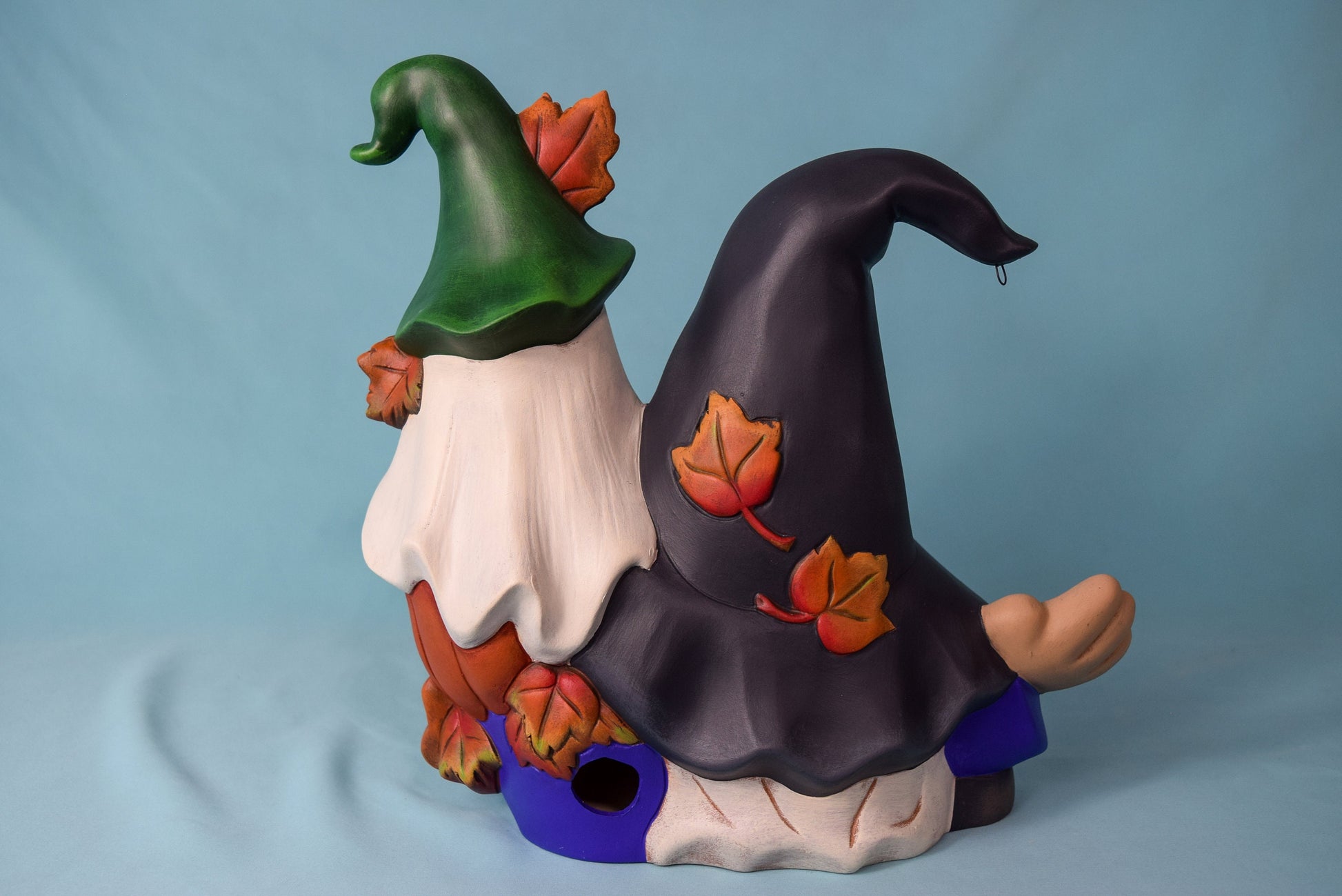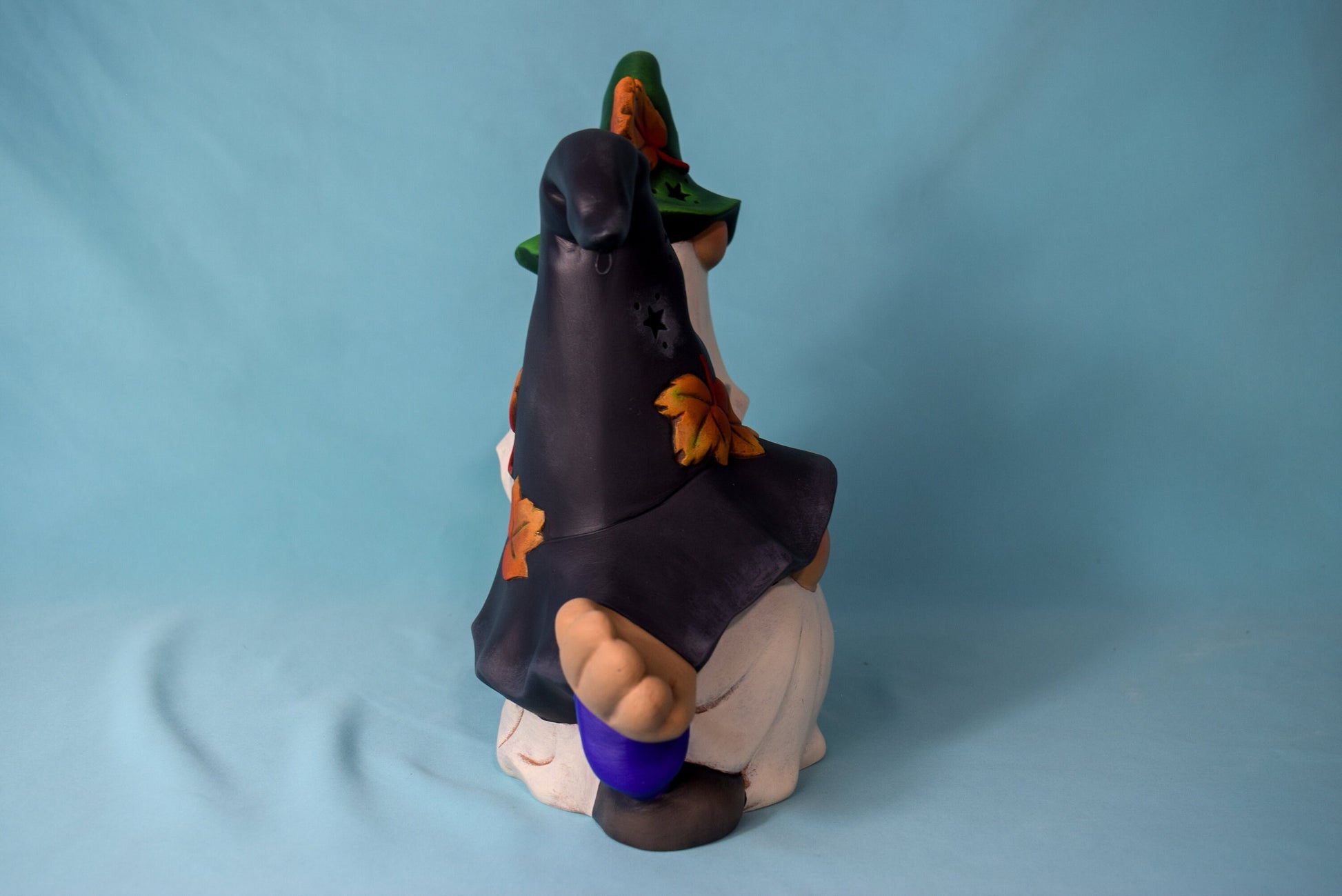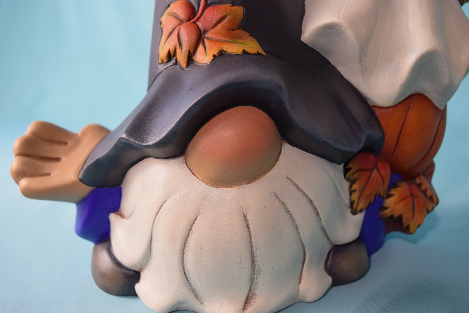 Absolutely perfect and quintessentially fall décor! You've got a cute fall Gnome, one of Clay Magic's newest gnomes, pumpkins, fall maple leaves, cute star cut outs that light up with a battery operated tea light and the cutest little Ghost Gonk! This is so adorable and I'm very much looking forward to painting this piece so you can get him on your mantle in time for fall and Halloween!
