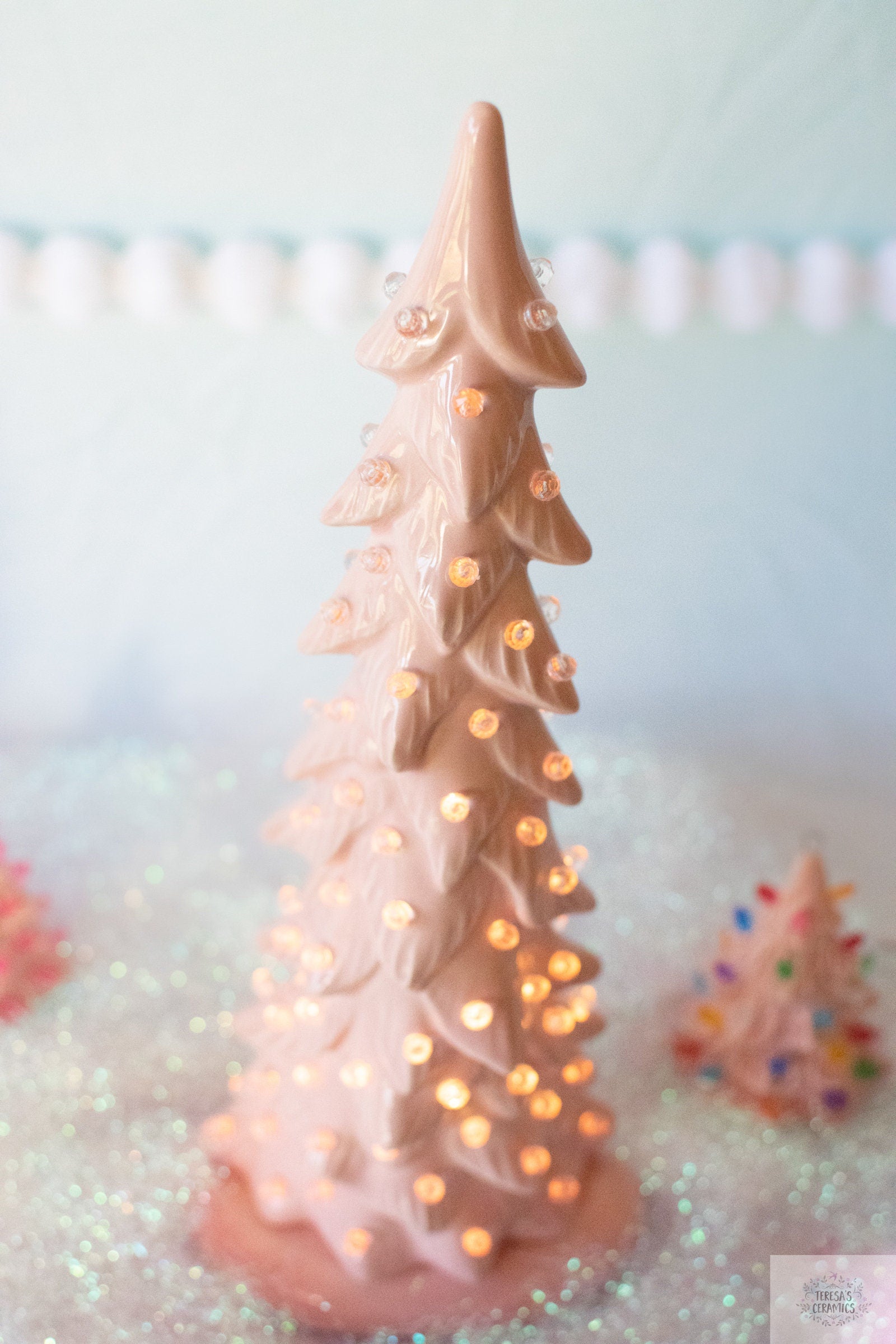 Simply Elegant! Amethyst & Pink Wispy Pine Ceramic Christmas Tree - Modern Heirloom with White Lights! πππ