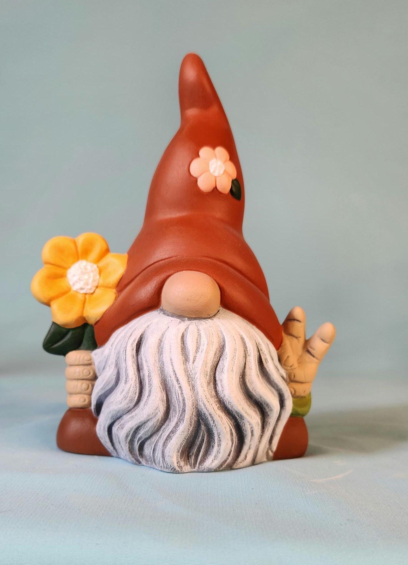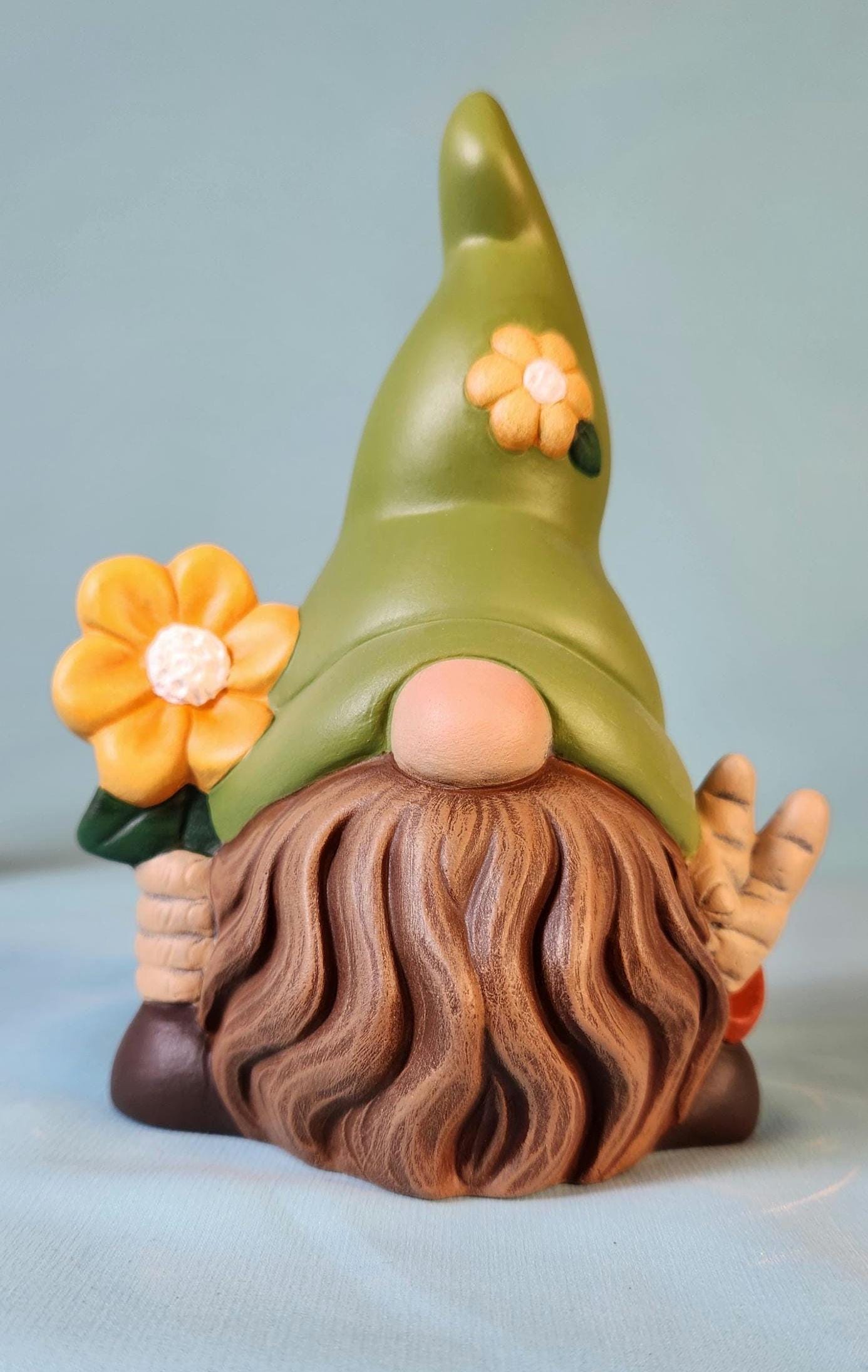 Welcome to your wonderful peaceful Gnome Home! These guys are the best. This is our popular peace gnome with some more wonderful palette swaps. We're doing Young Gnome beards on a couple of them, and a more soothing and relaxing Spring color palette. If you like the piece and want different colors, message me and let me know! I would be happy to swap some colors for you.